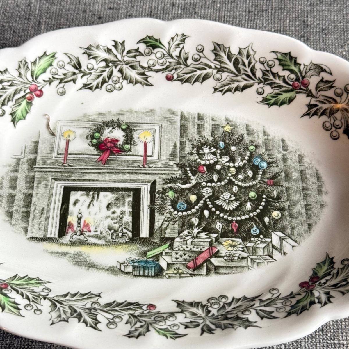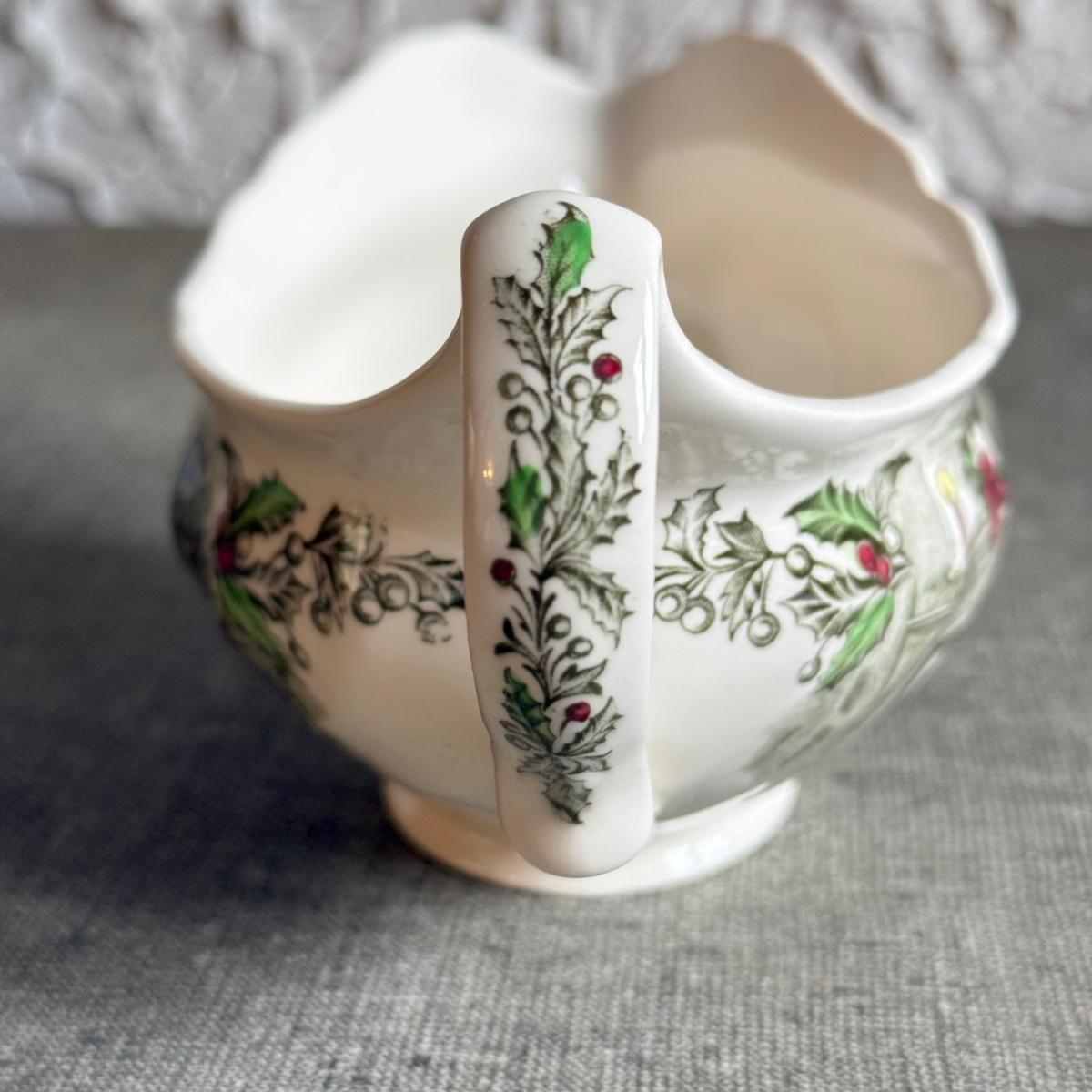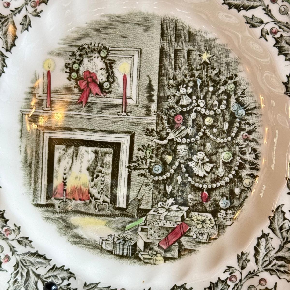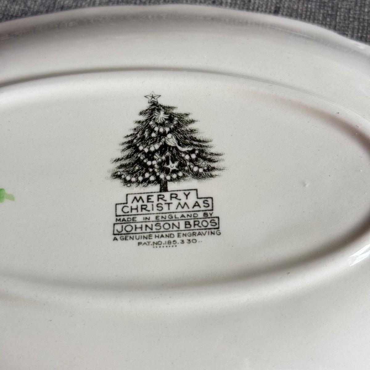 LOT 238F: Vintage Johnson Bros Transferware "Merry Christmas" Service for 8 w/ Gravy Boat
