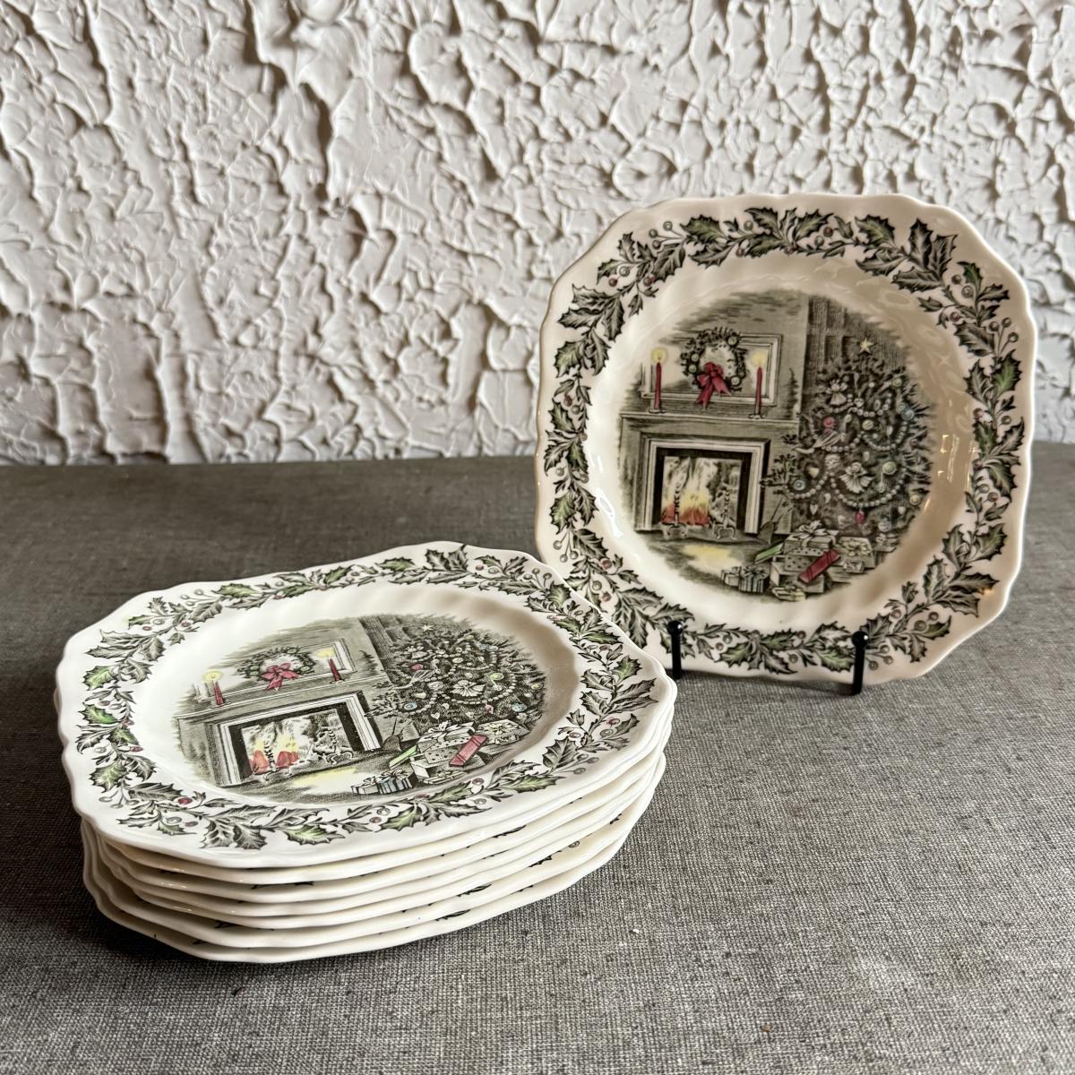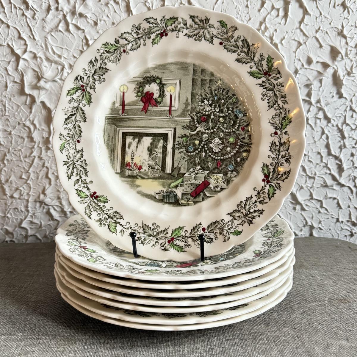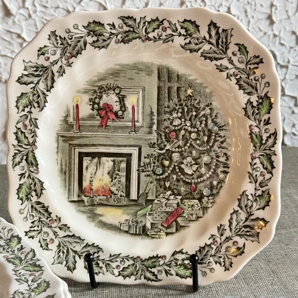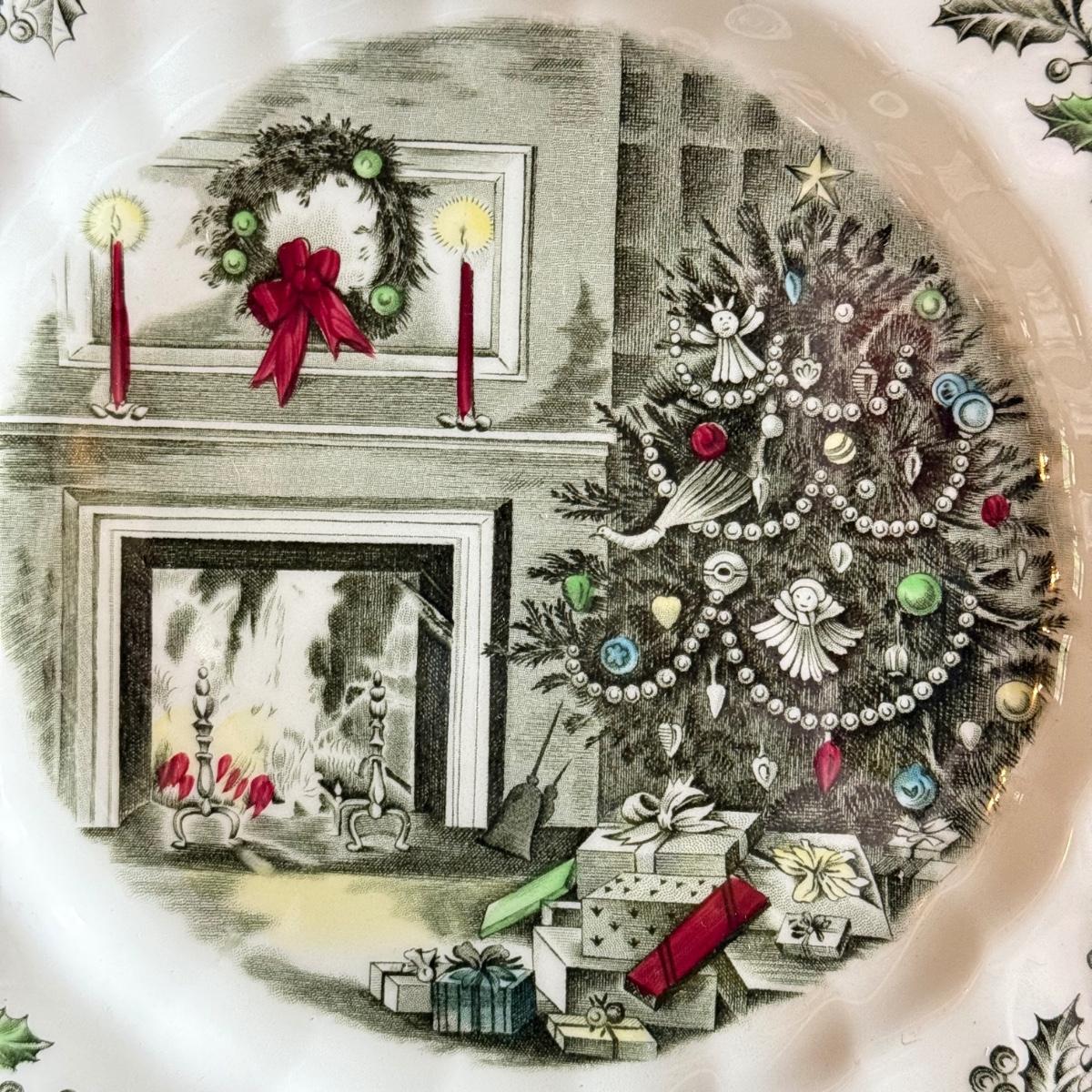LOT 238F: Vintage Johnson Bros Transferware "Merry Christmas" Service for 8 w/ Gravy Boat