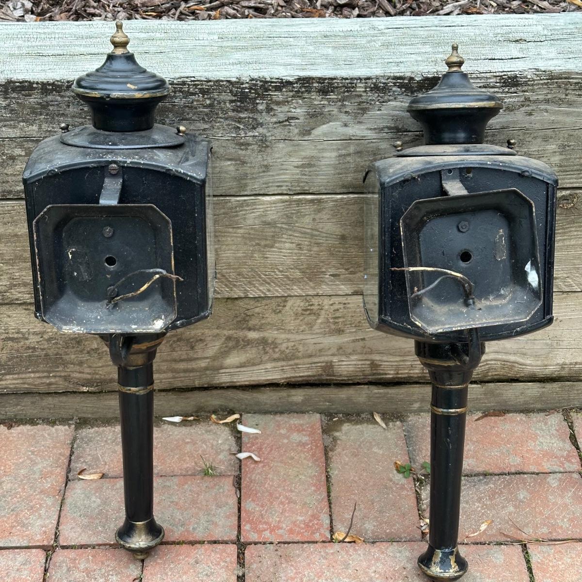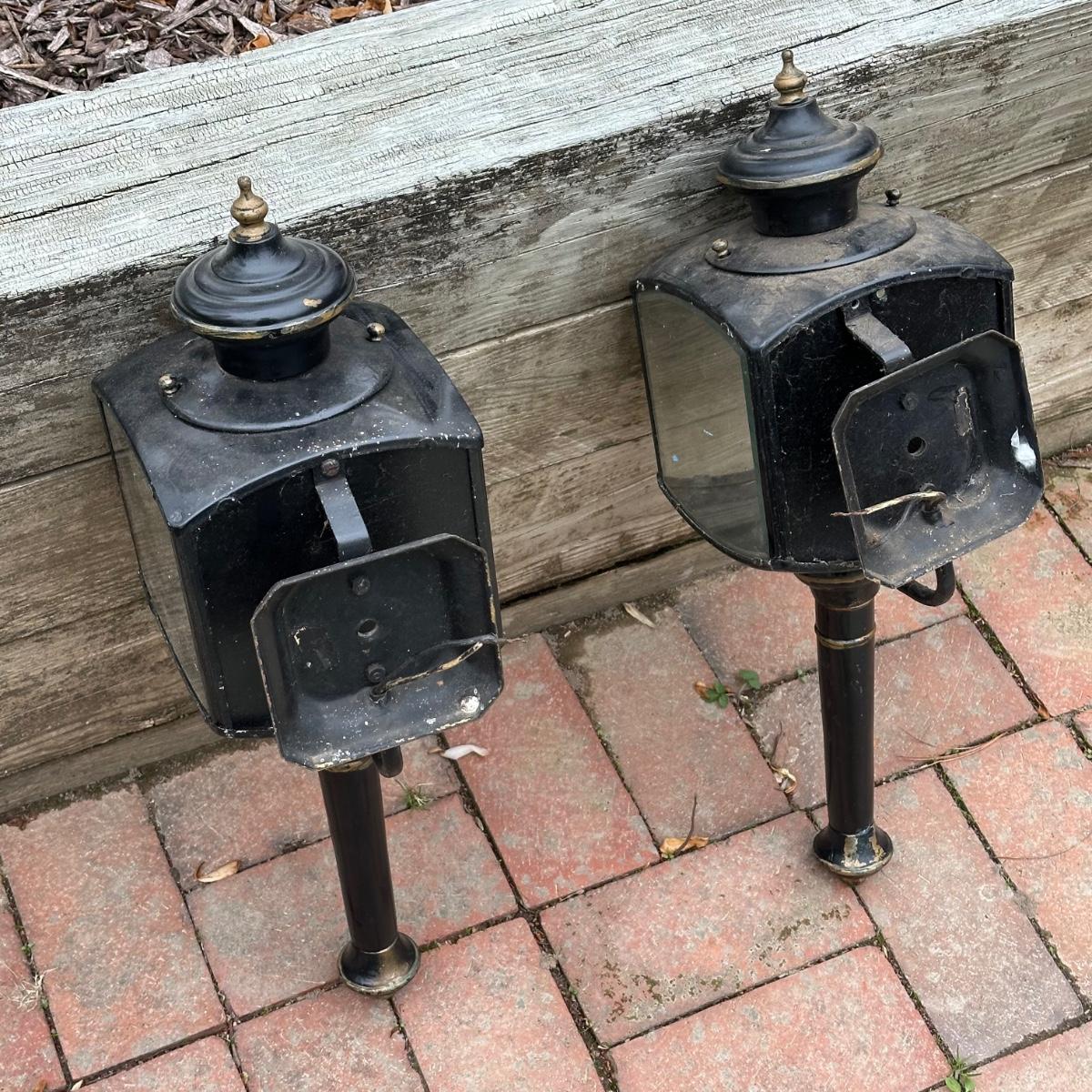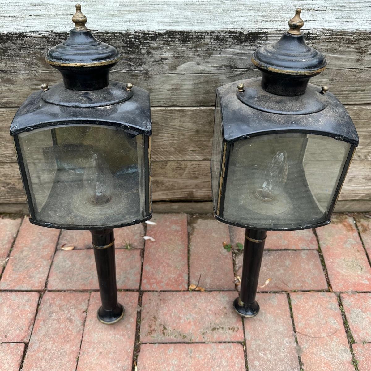 LOT 243G: Pair Of Antique Beveled Glass Carriage Lamps