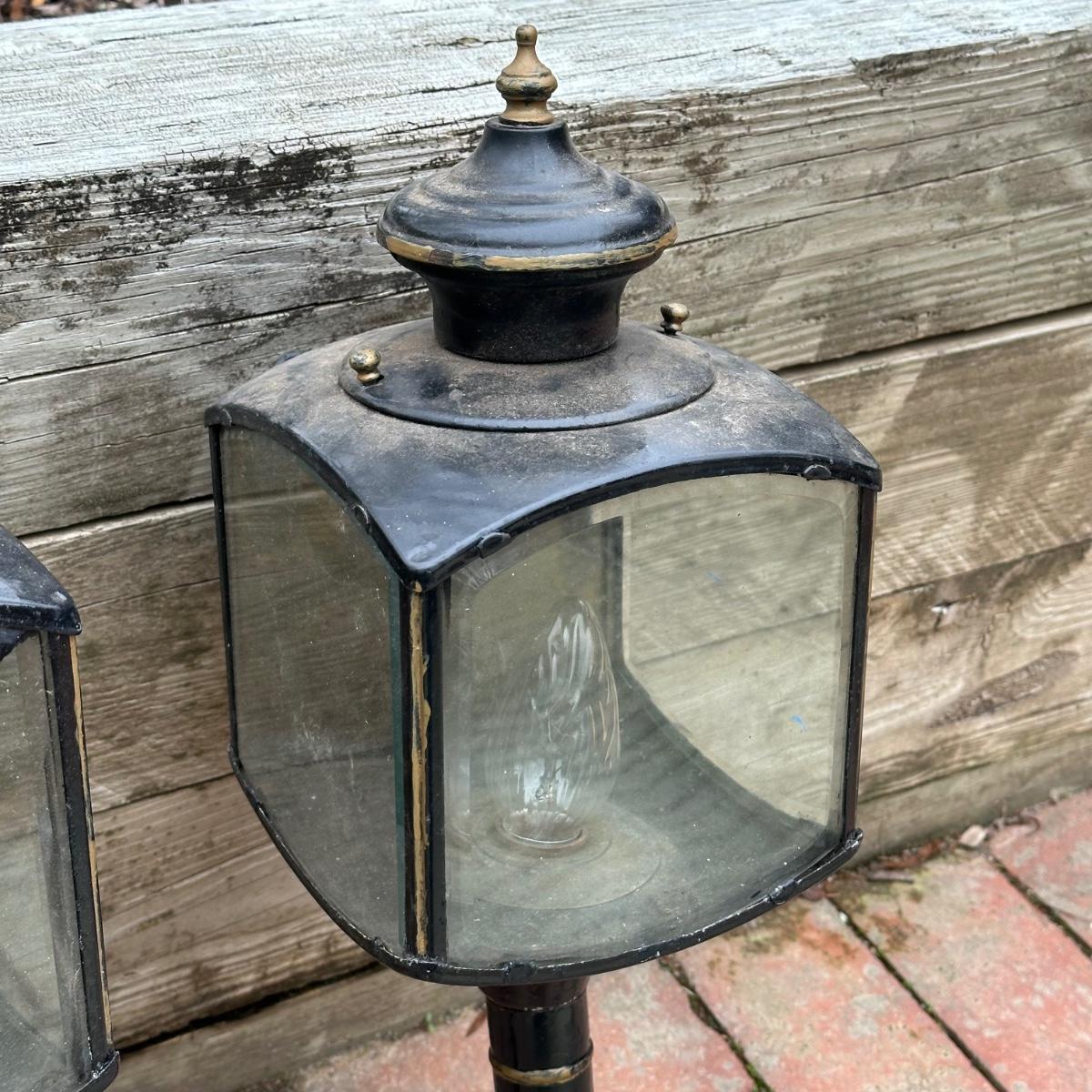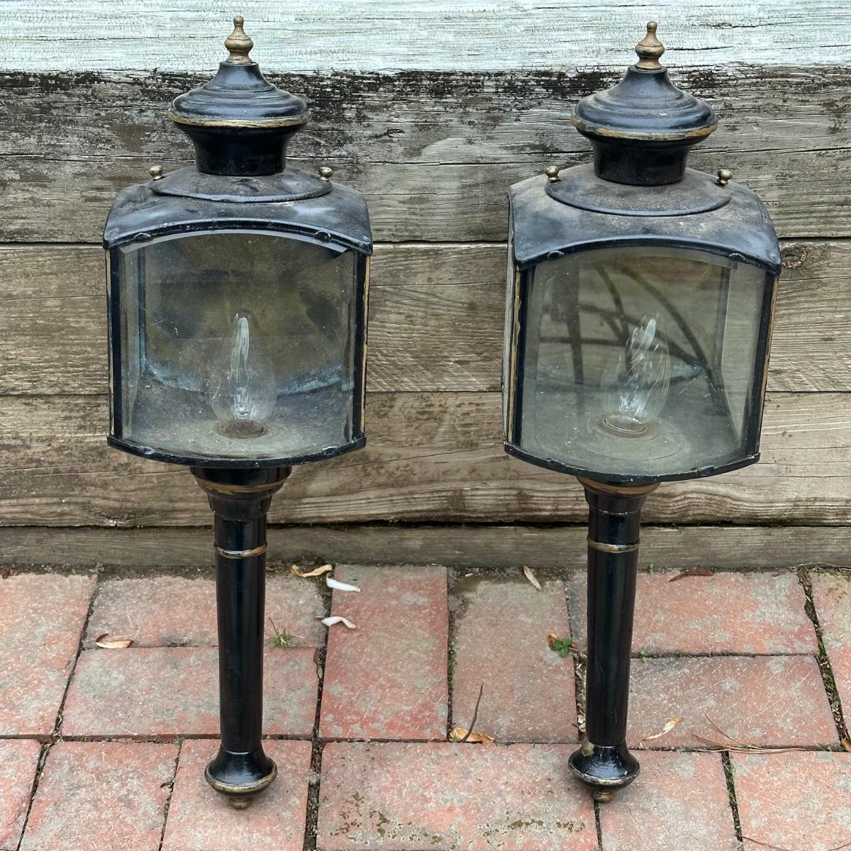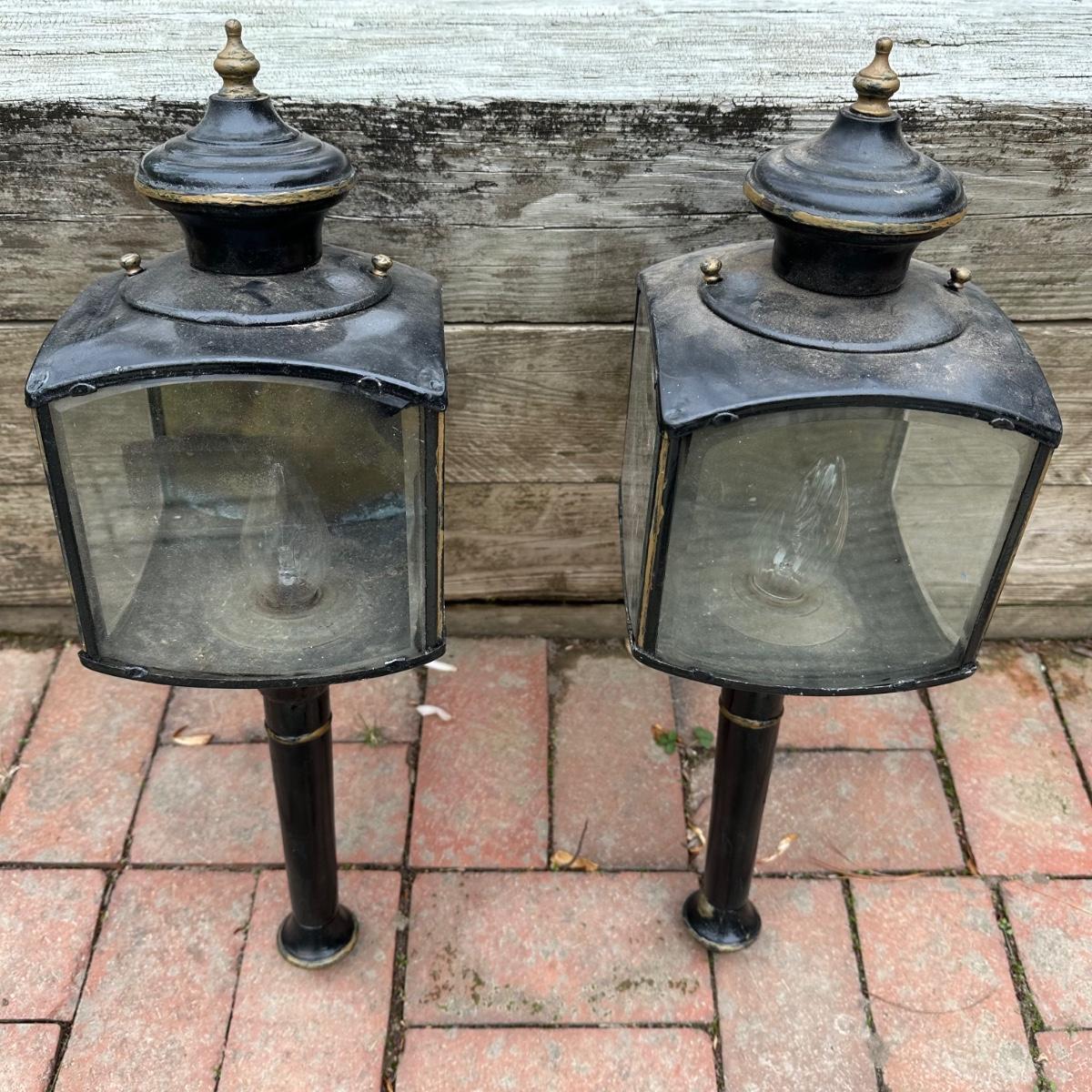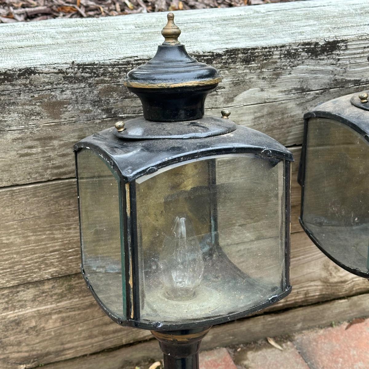 LOT 243G: Pair Of Antique Beveled Glass Carriage Lamps