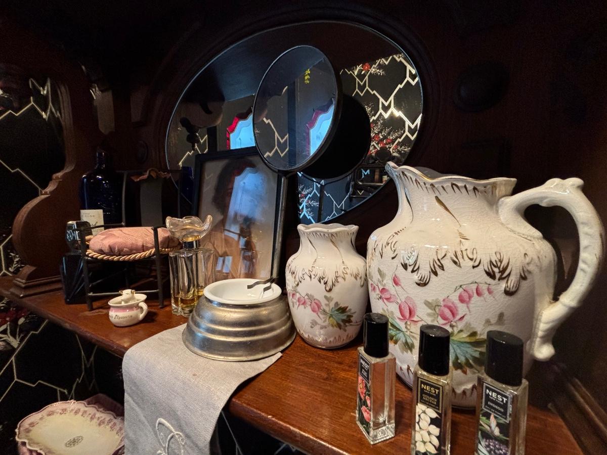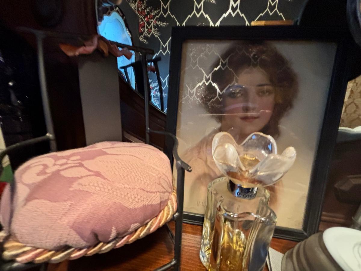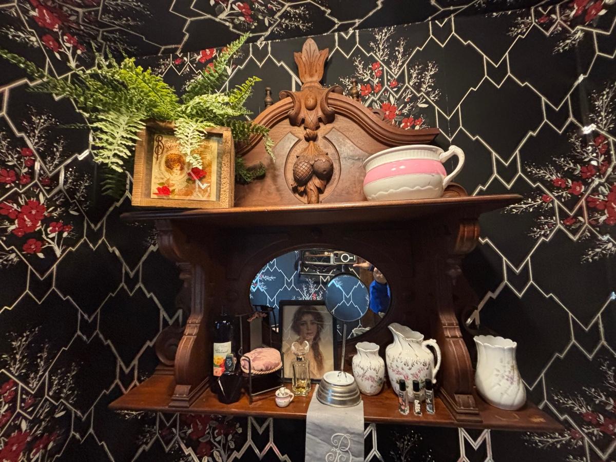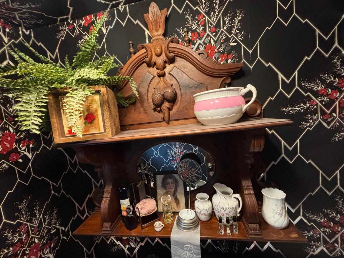 LOT Powder1: Large Ornate French sideboard back used as vanity +all pictured items