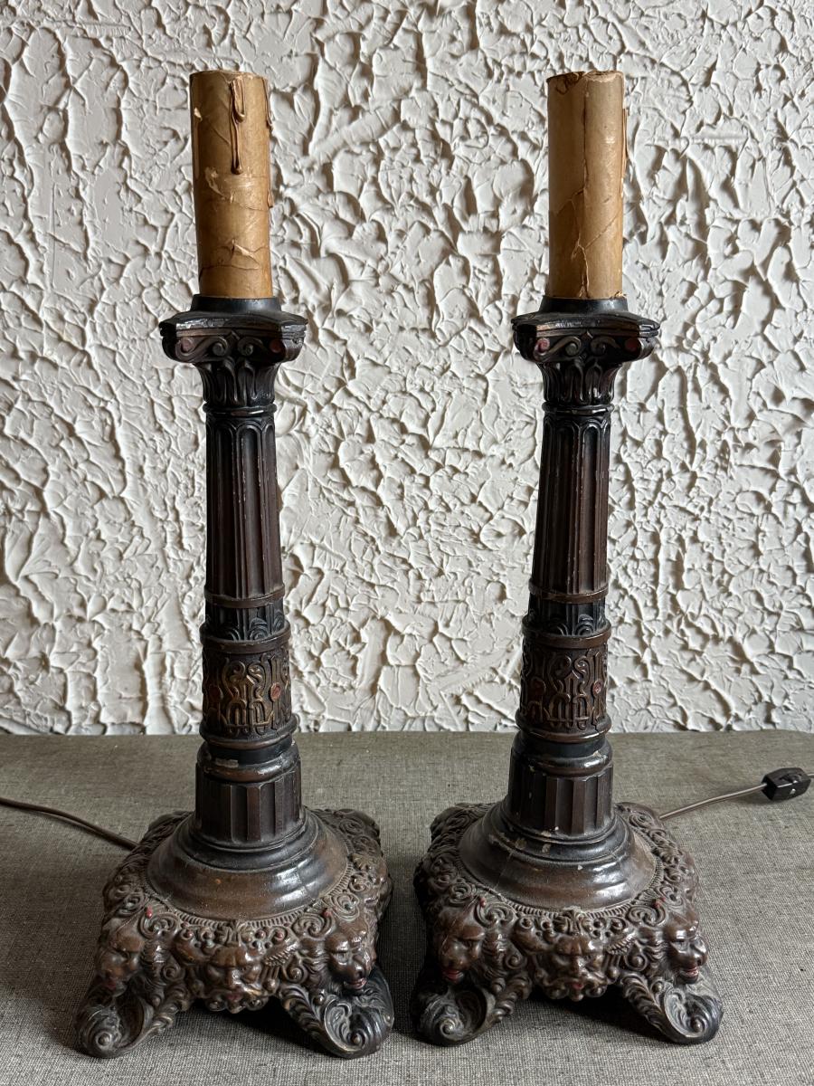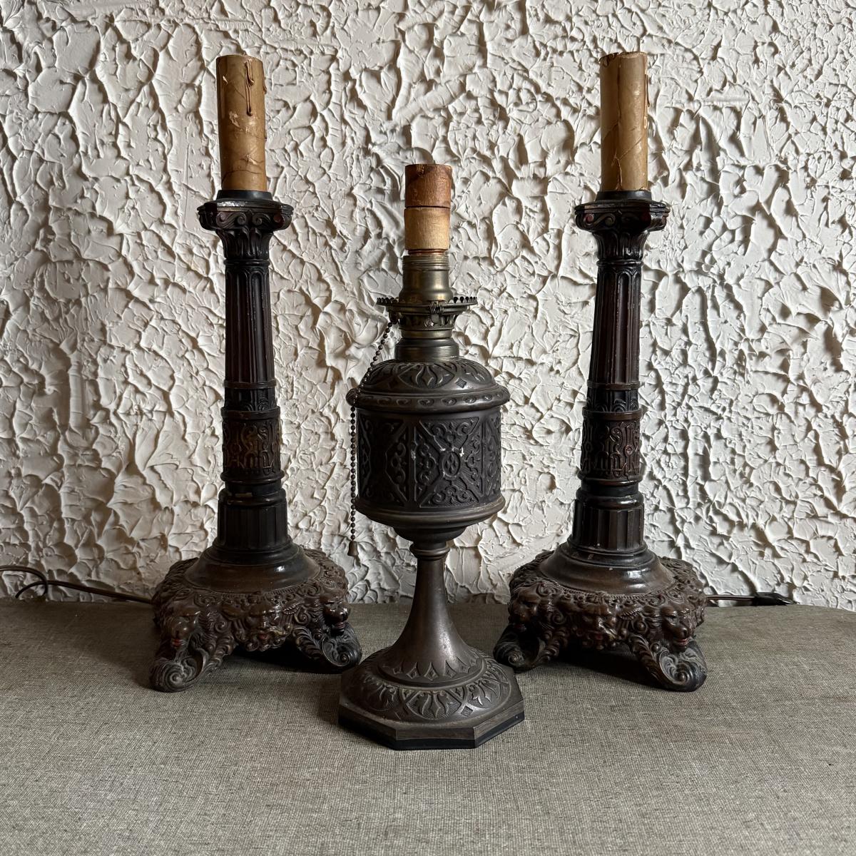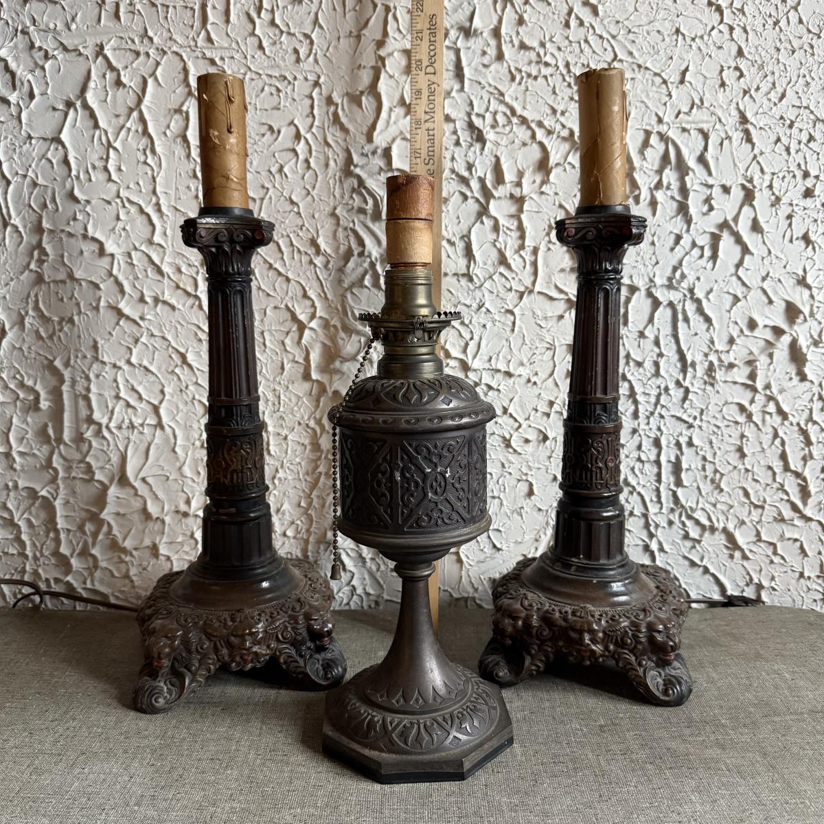 LOT 237F: Vintage Heavy Electric Candlestick & Oil Holder Lamps