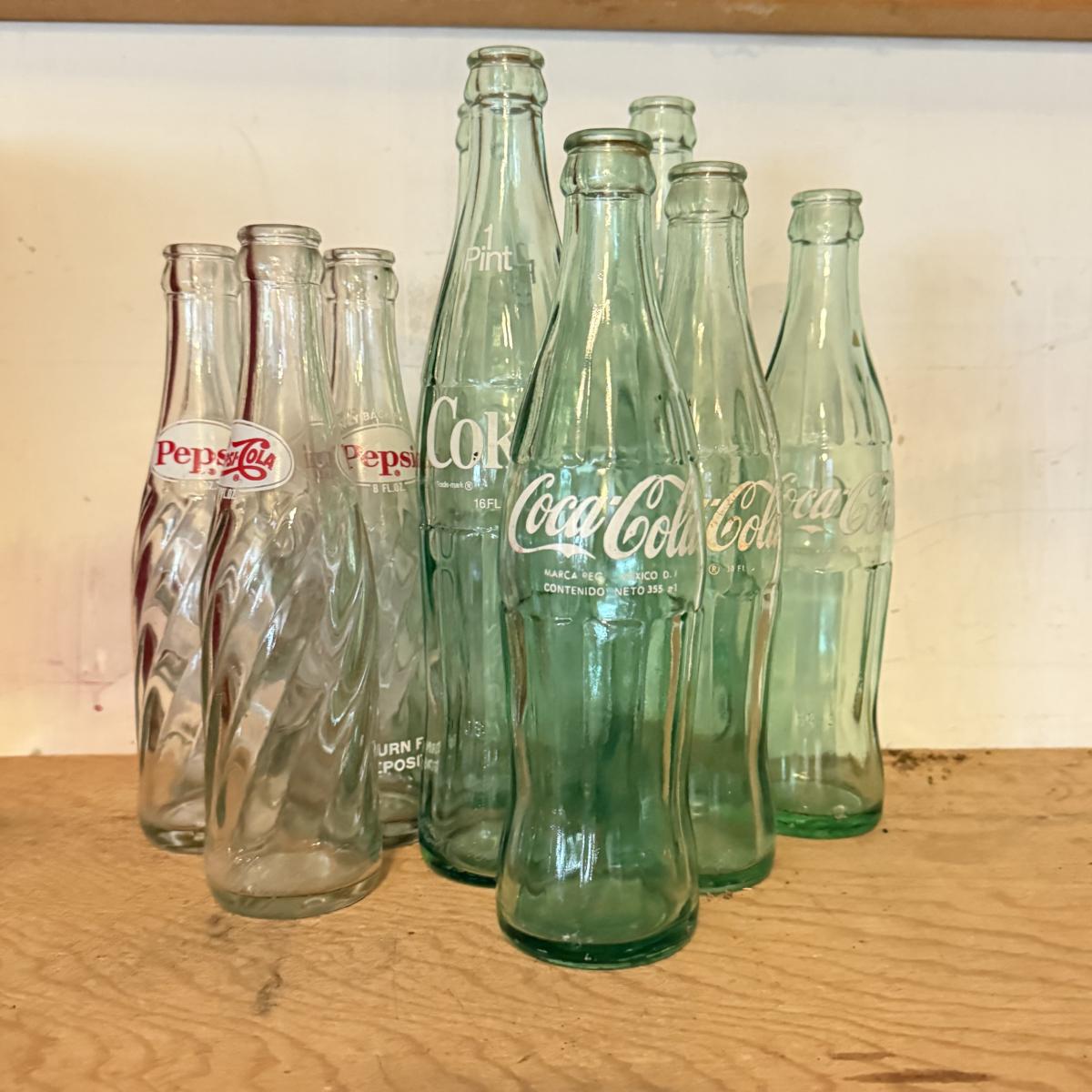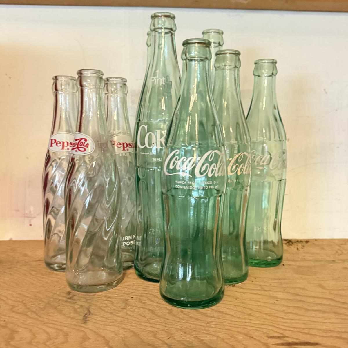LOT 265G: Vintage Glass Coke & Pepsi Bottles