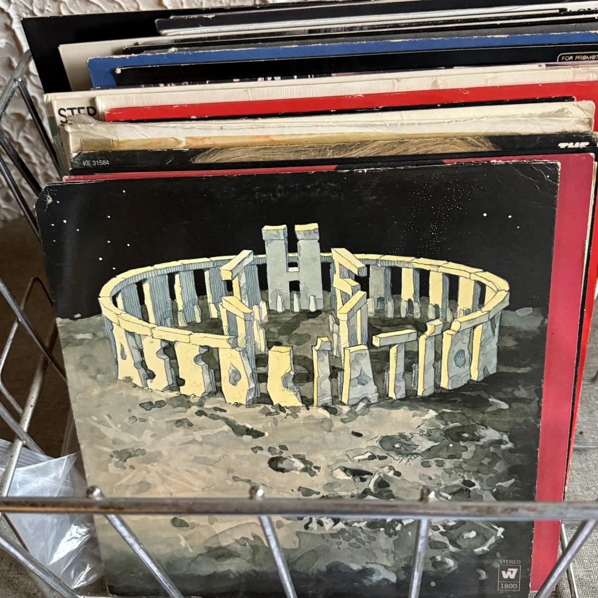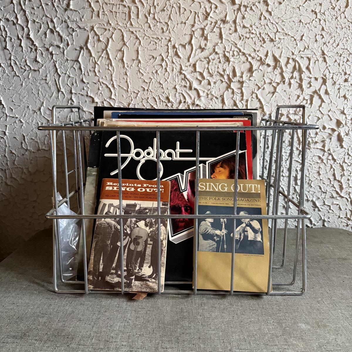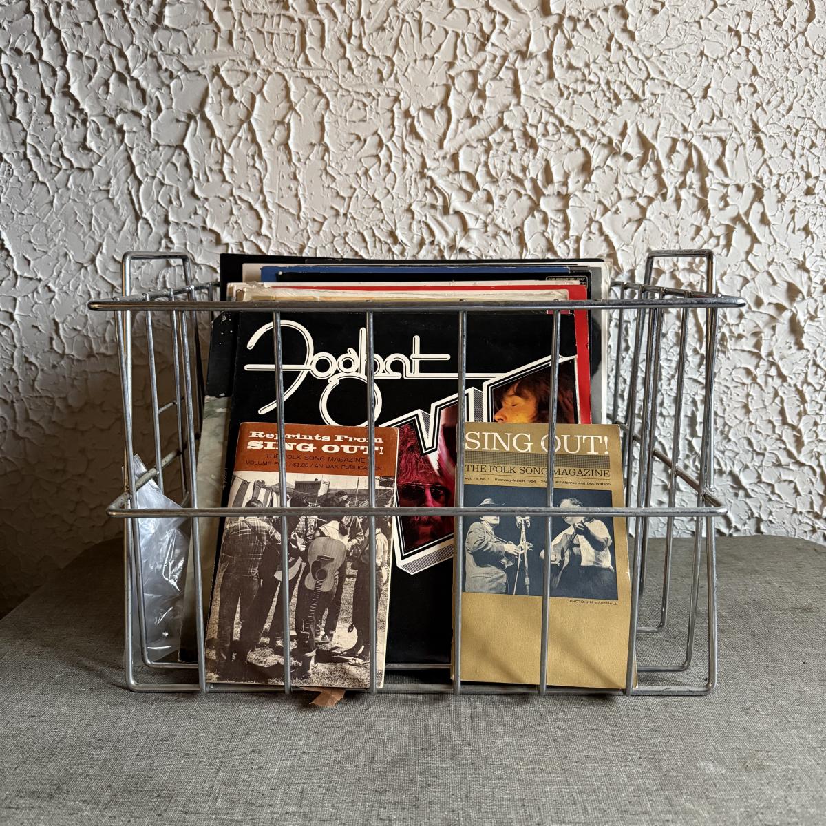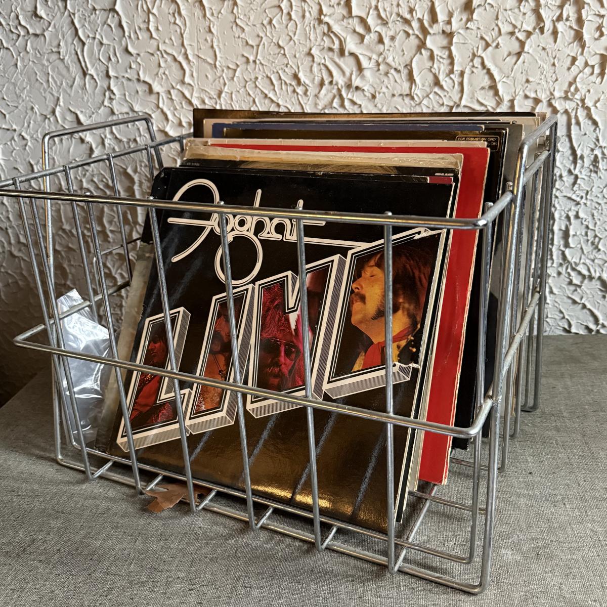 LOT 267F: Collection of Vintage Vinyl Records w/ Wire Record Holder