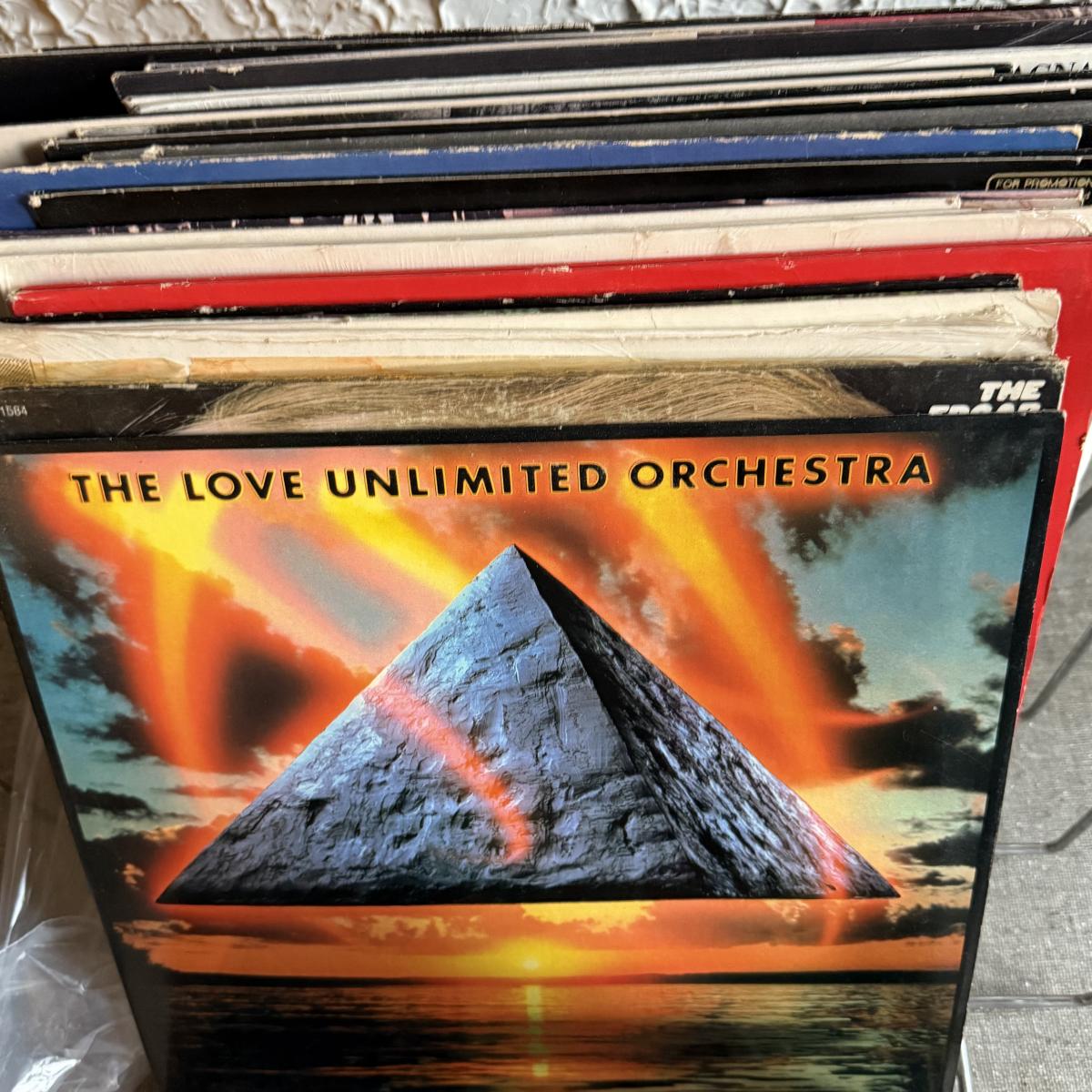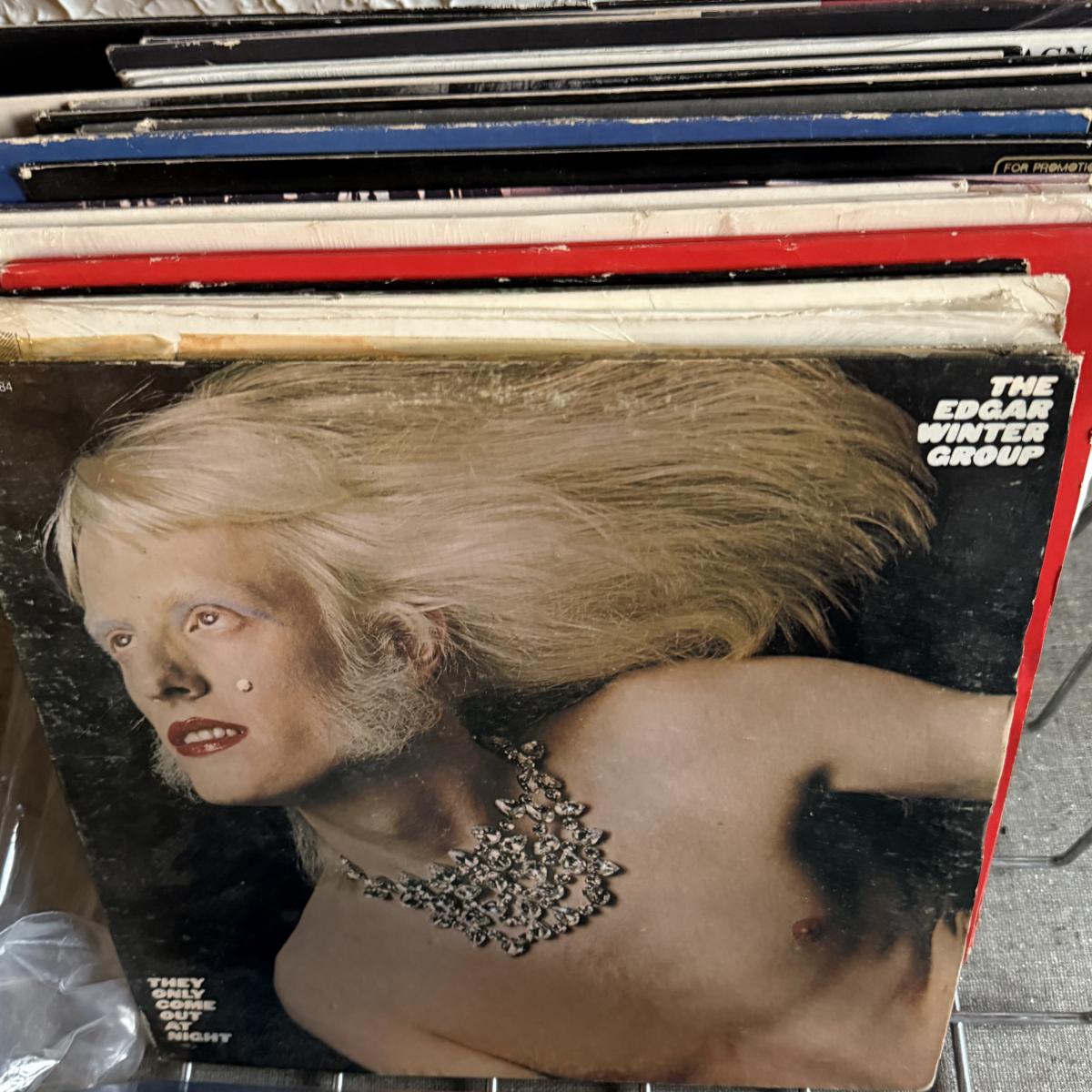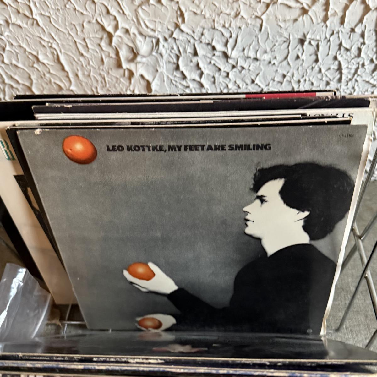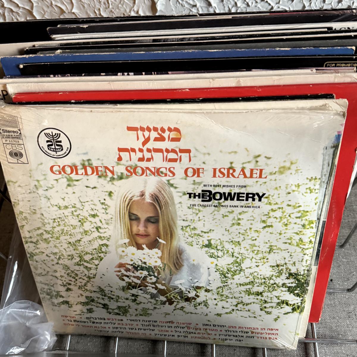LOT 267F: Collection of Vintage Vinyl Records w/ Wire Record Holder