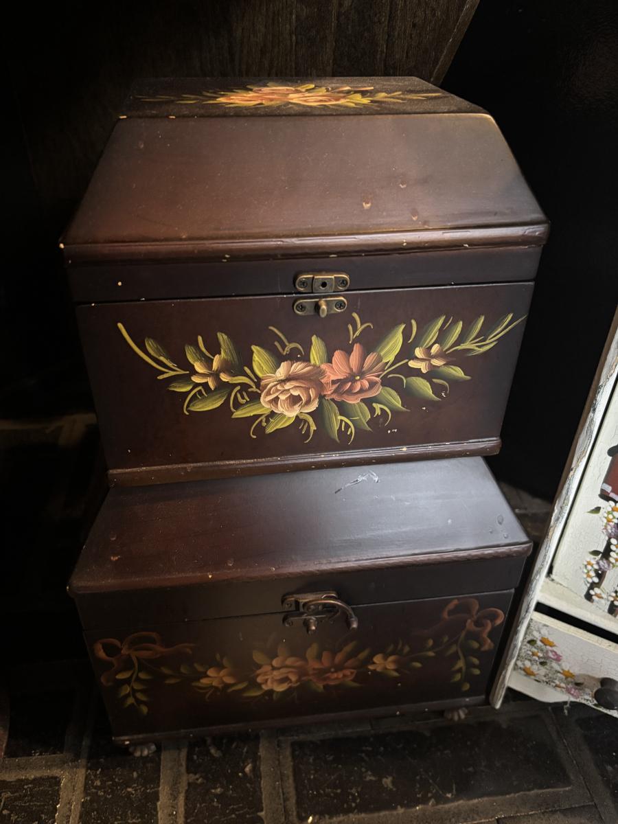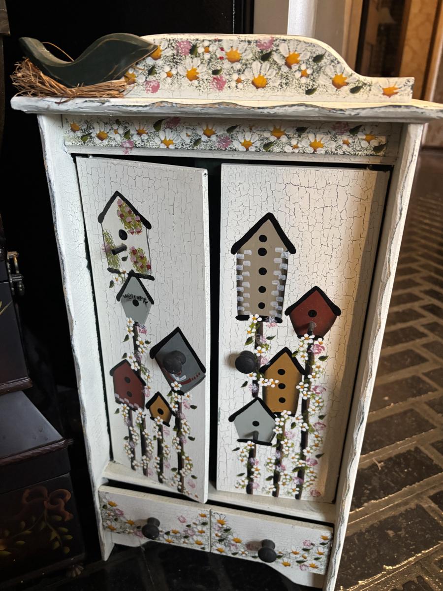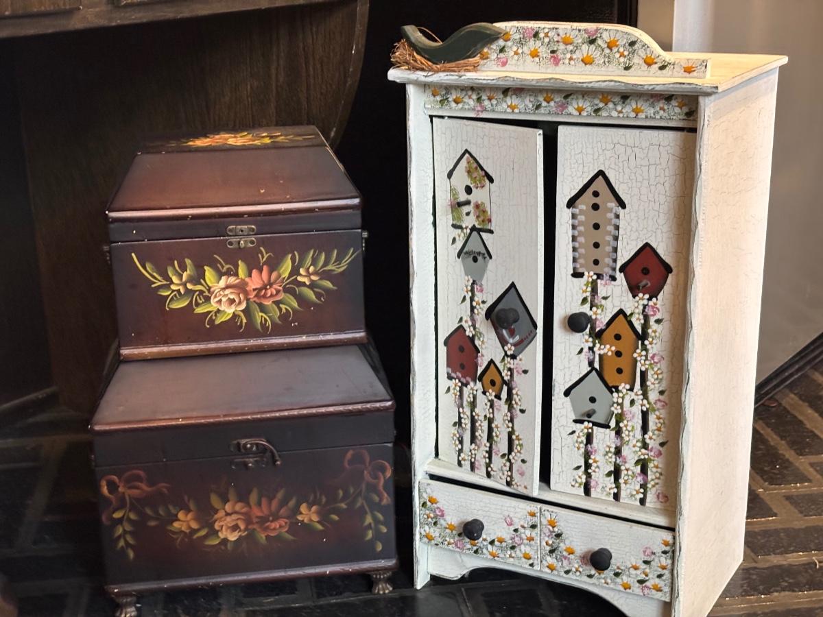 LOT 96K: Vintage Hand Painted Country Lidded Box & Pretty Petite Birdhouse Cabinet
