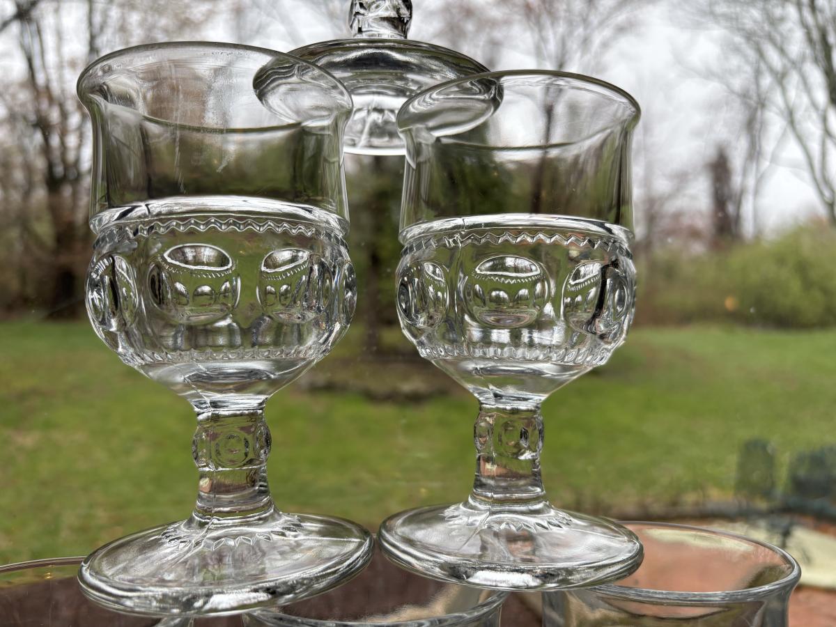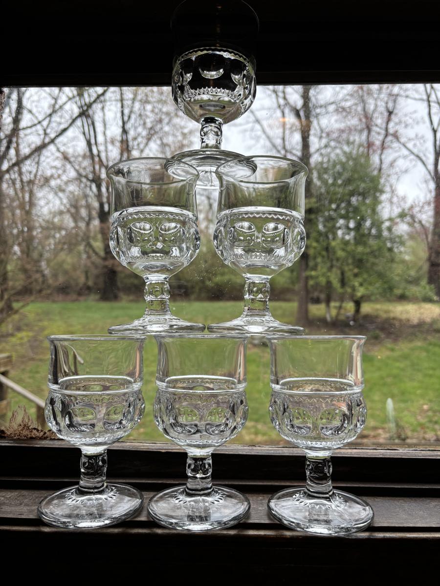LOT 112K: Vintage Set of Indiana Glass Clear Kings Crown Thumbprint Stemware
