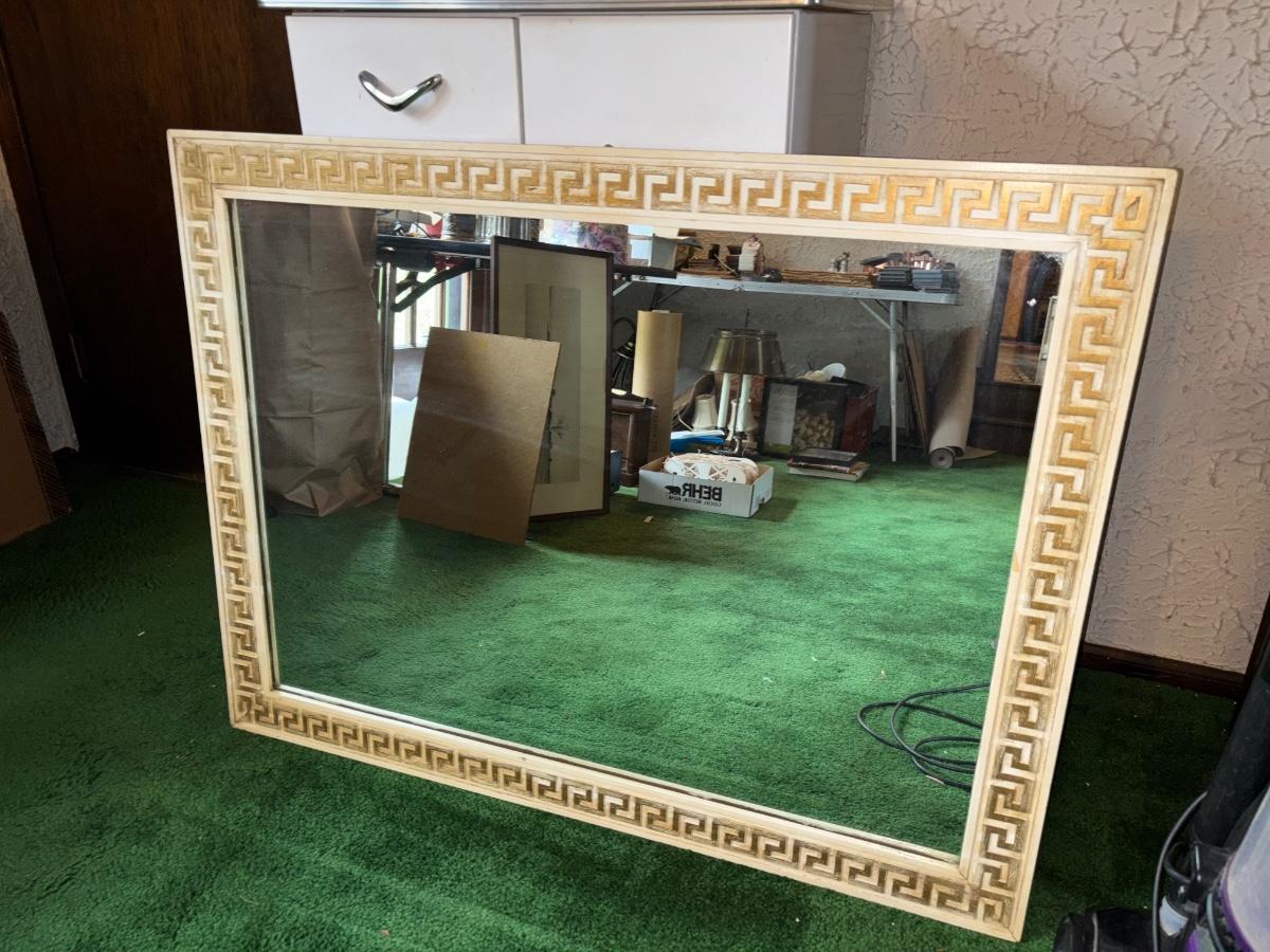 LOT 926Den: Vintage heavy large Greek Key motif mirror