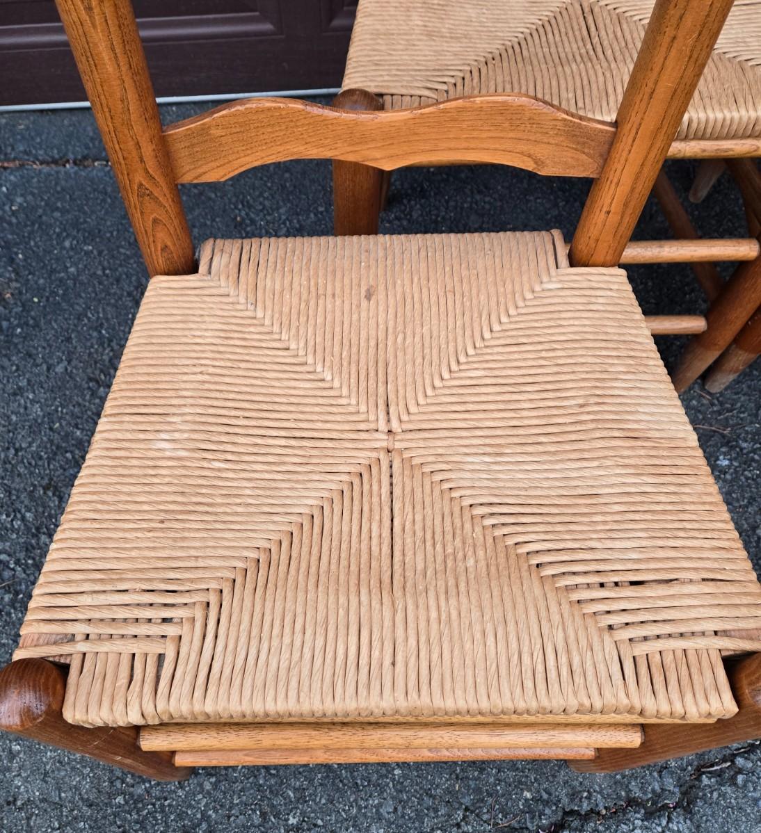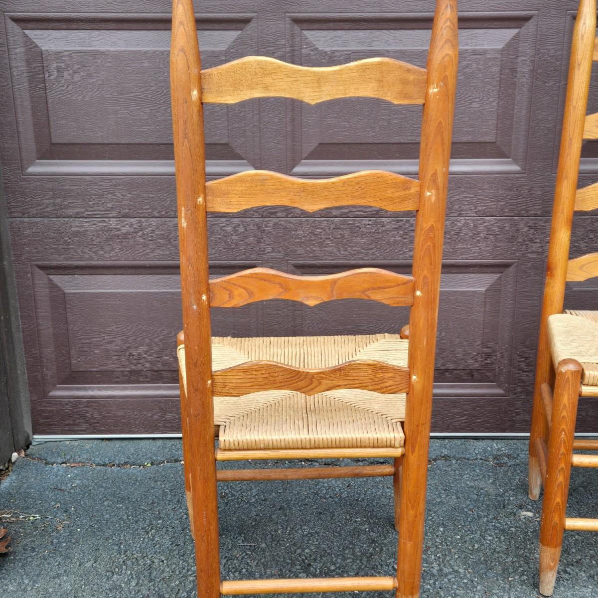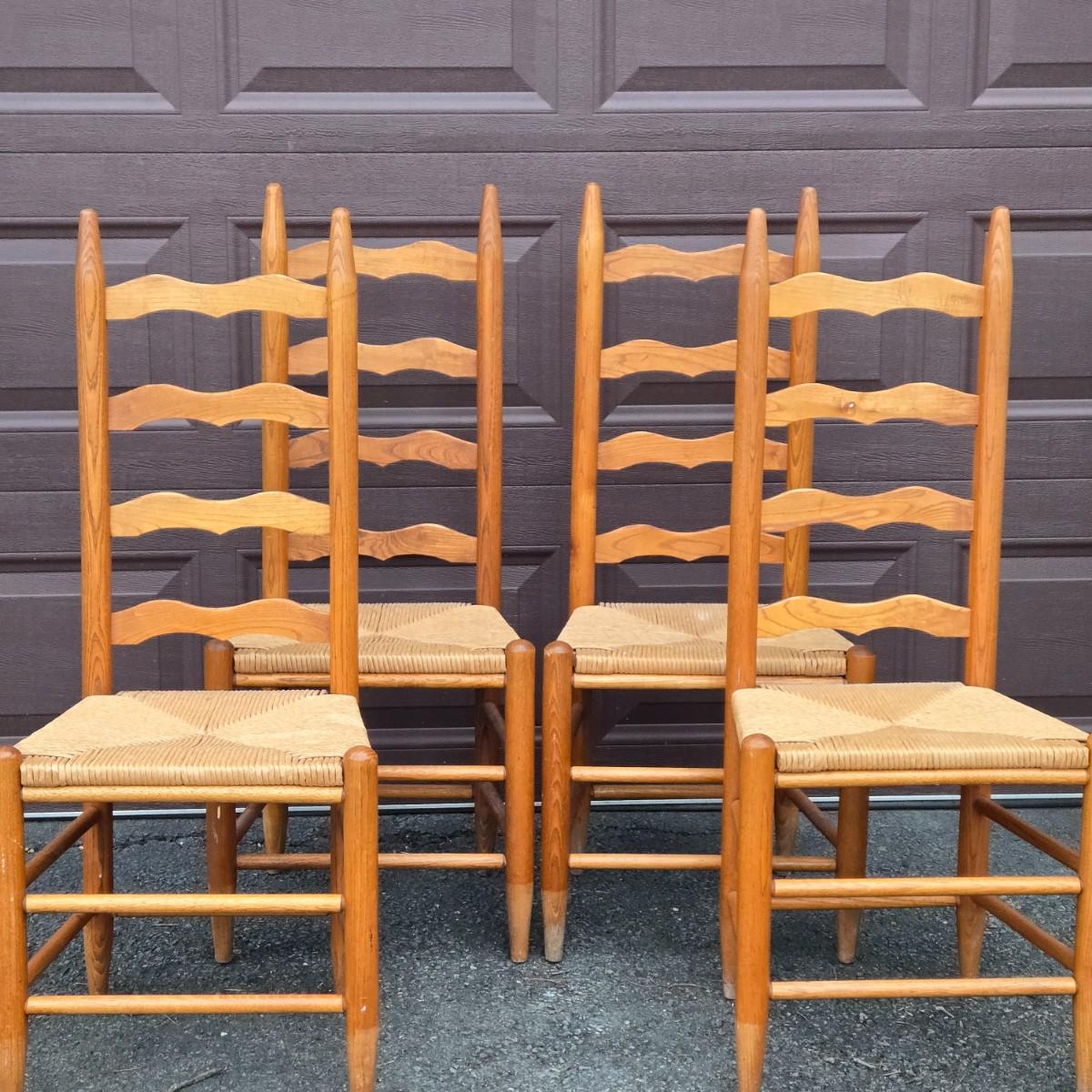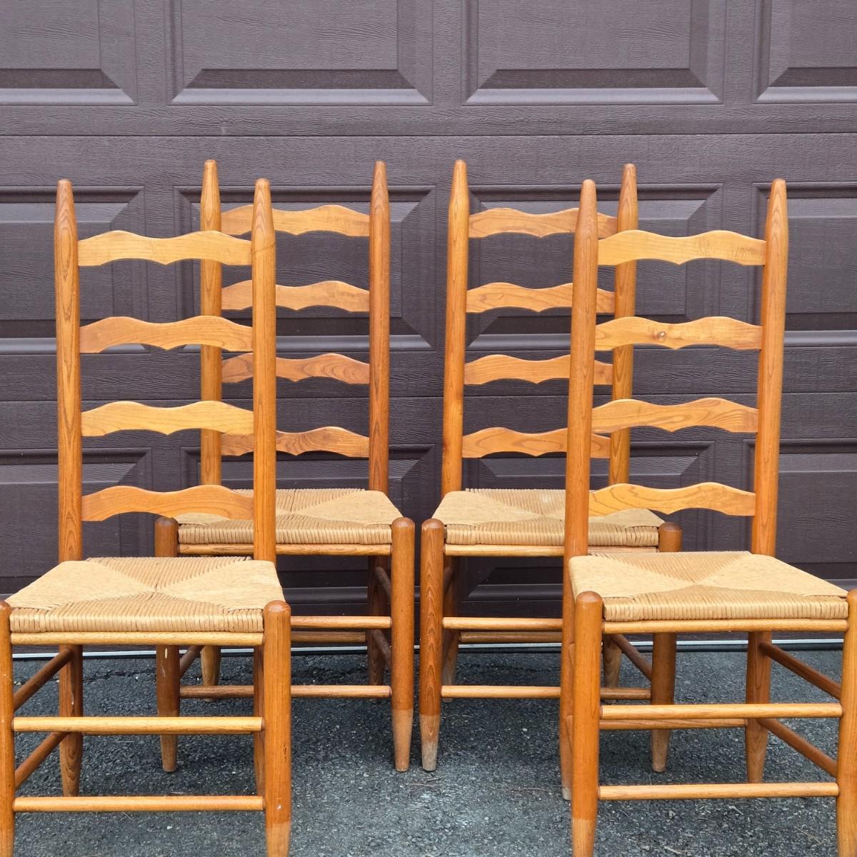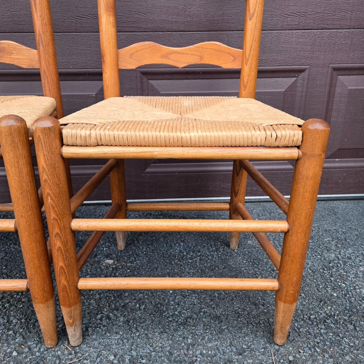 LOT 282G:Set of 4 Vintage Wood Ladder Back Colonial Shaker Woven Rush Side Chairs