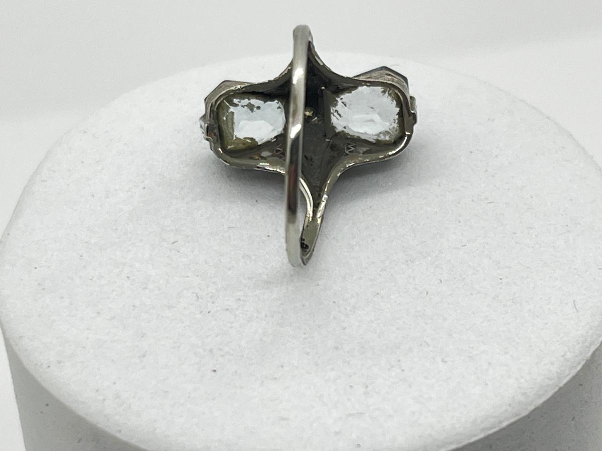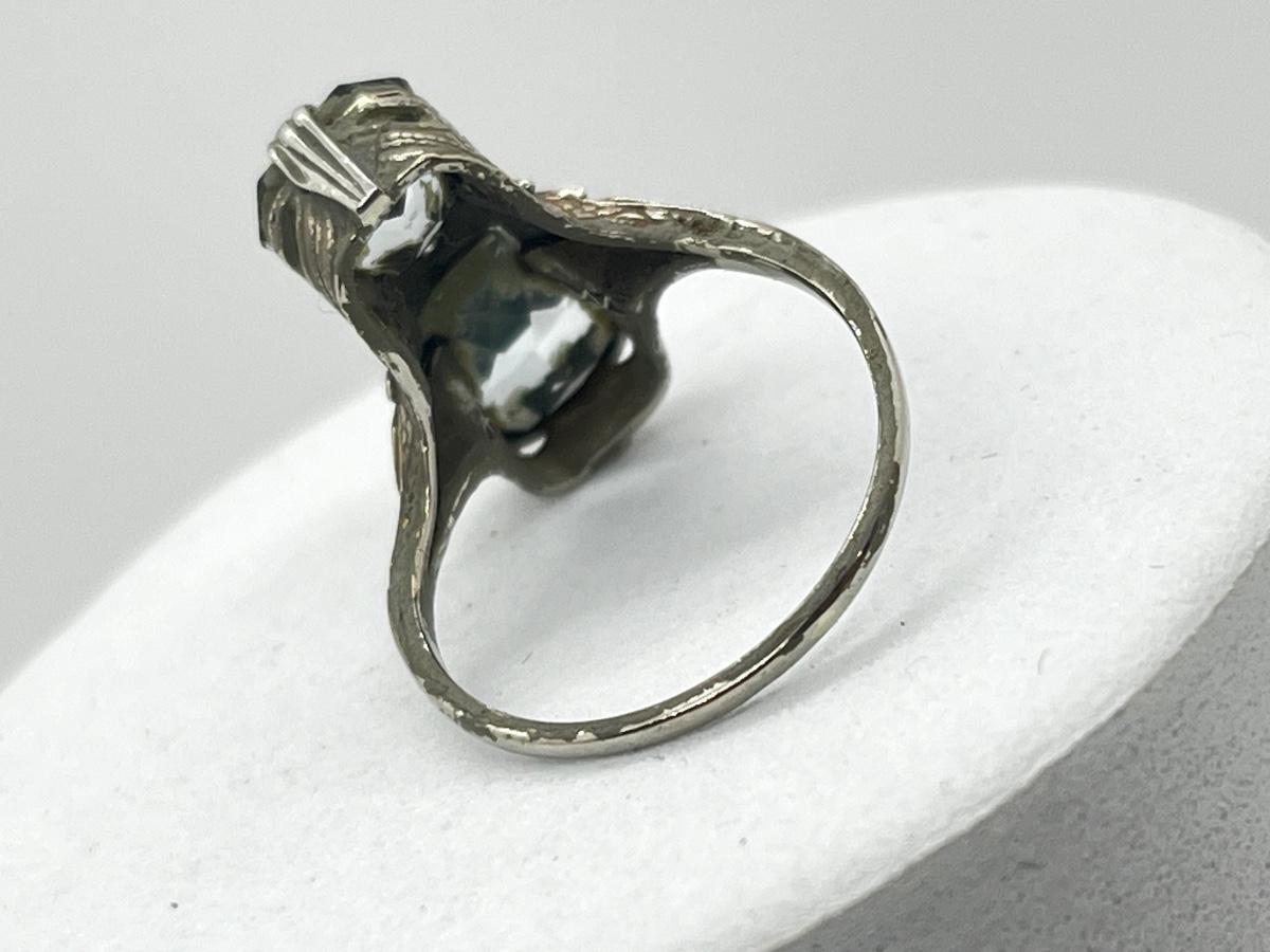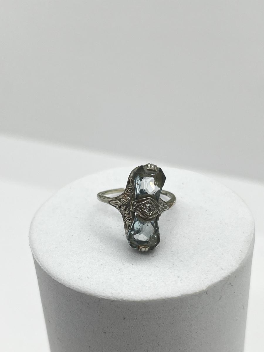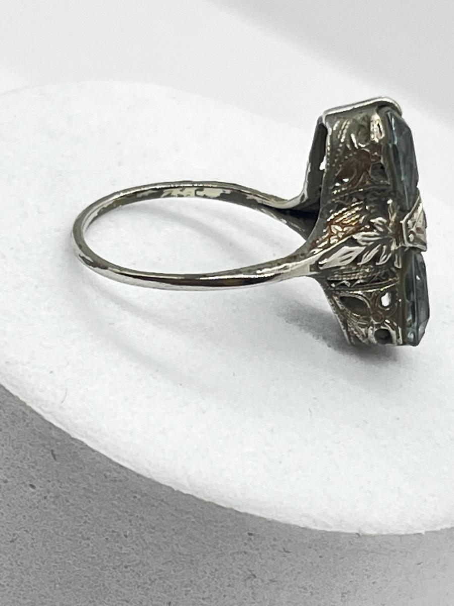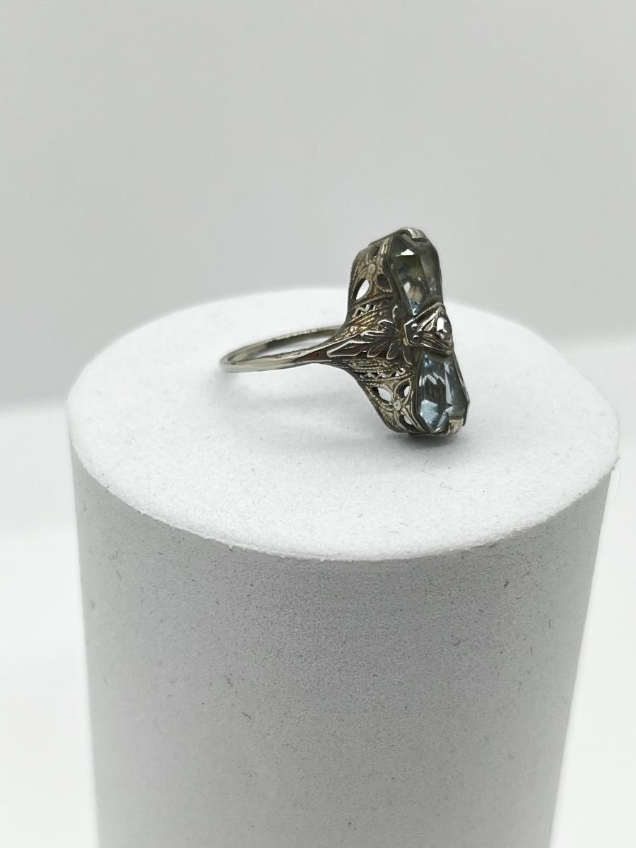LOT 3: 14K White Gold, Aquamarine and Diamond Art Deco Filigree Ring - Size 5