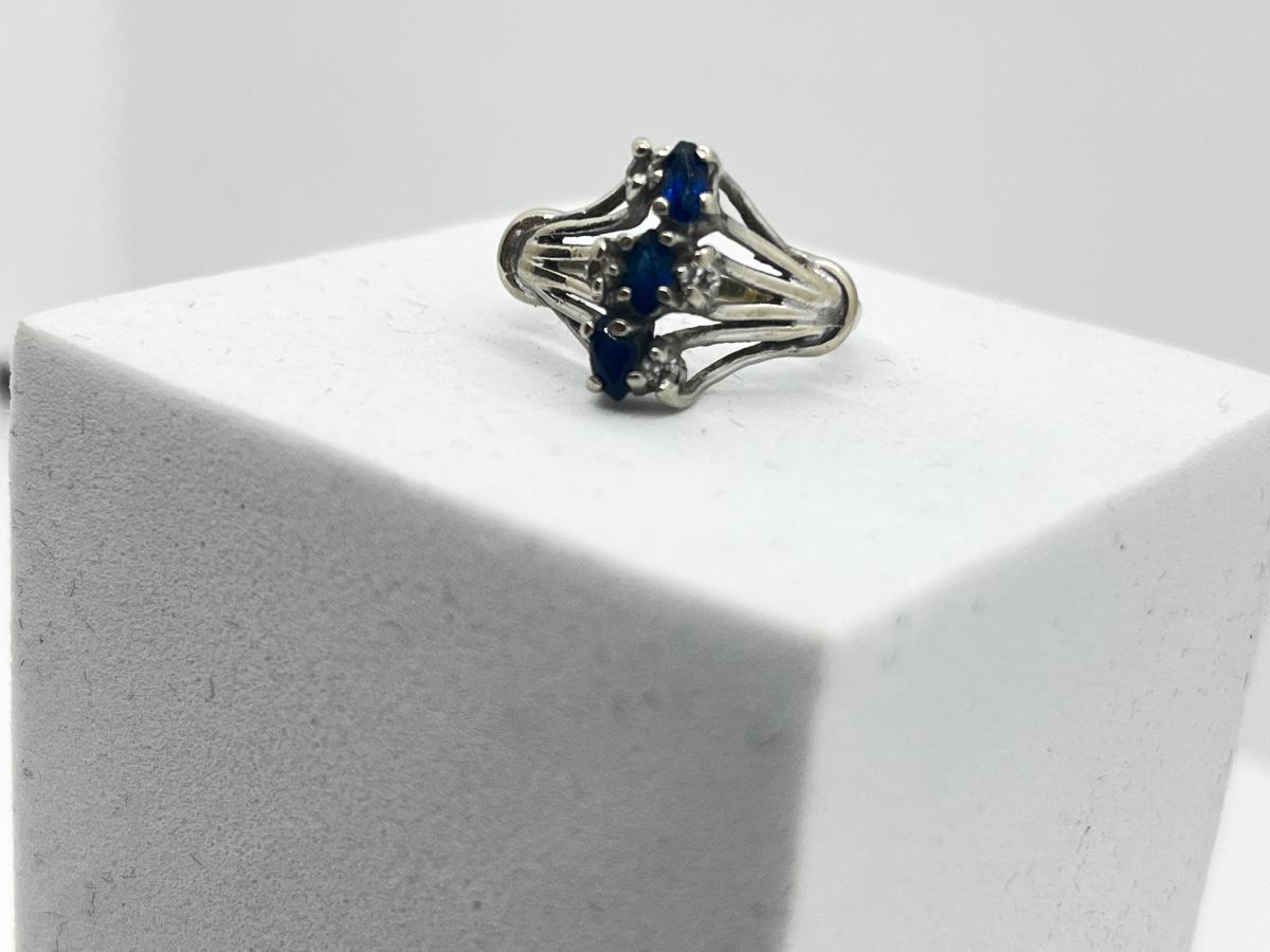 LOT 6: 14K White Gold, Sapphire and Diamond Ring - Size 4.5 - 3.4 GTW