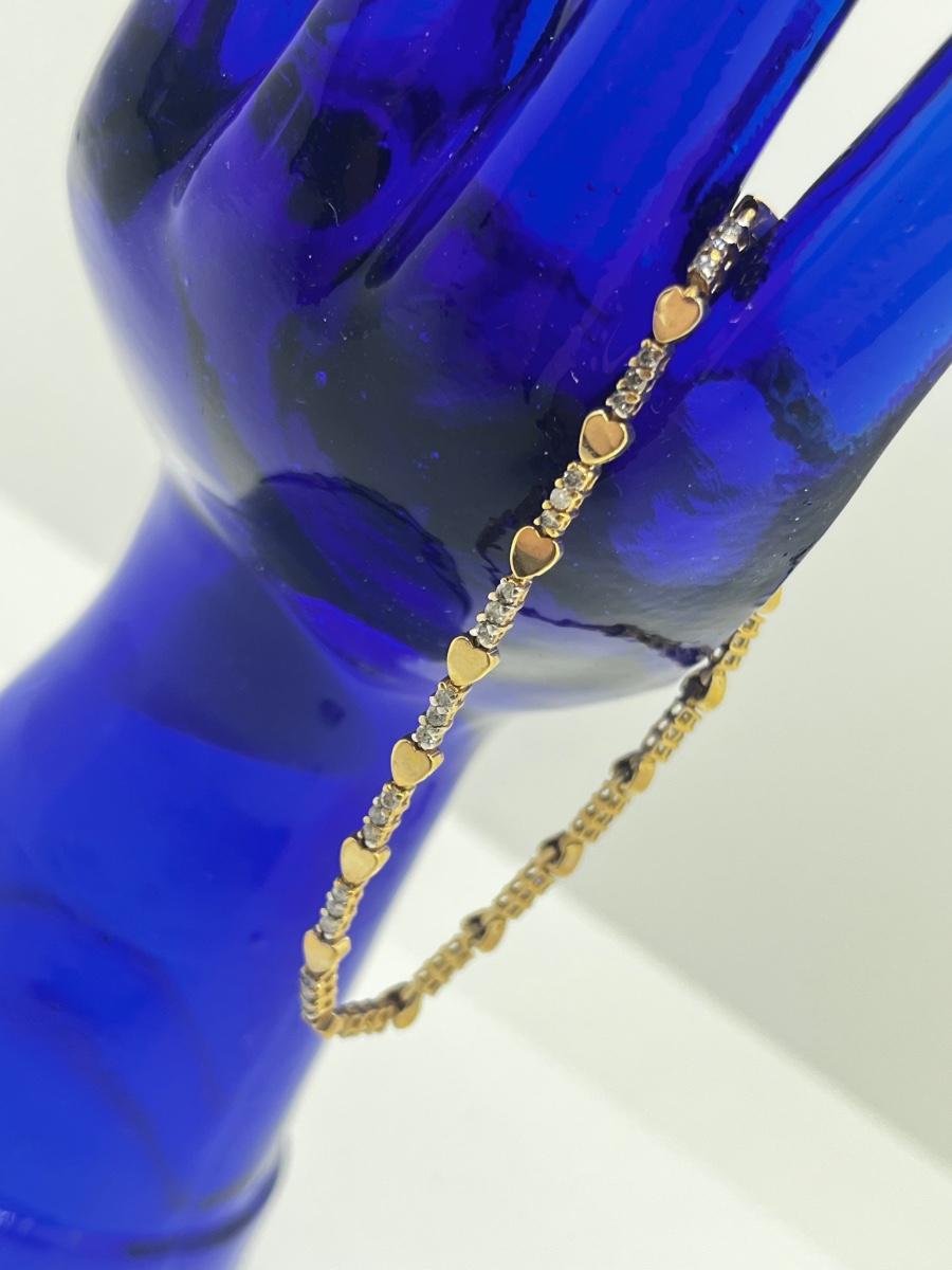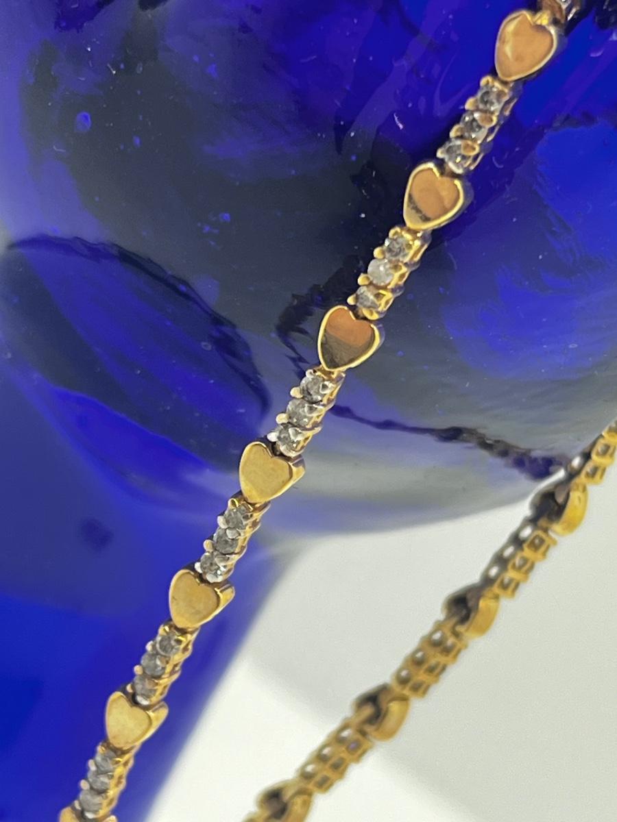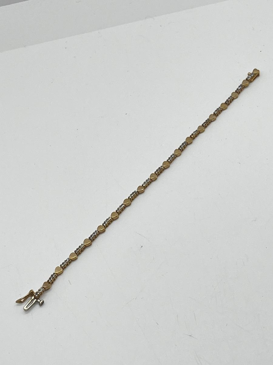 LOT 9: 14K Yellow Gold Hearts and Diamond Chips Bracelet - 7"