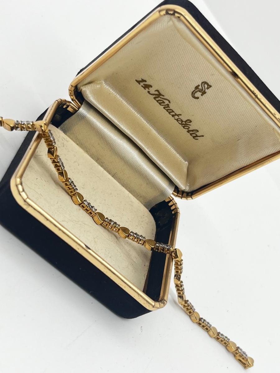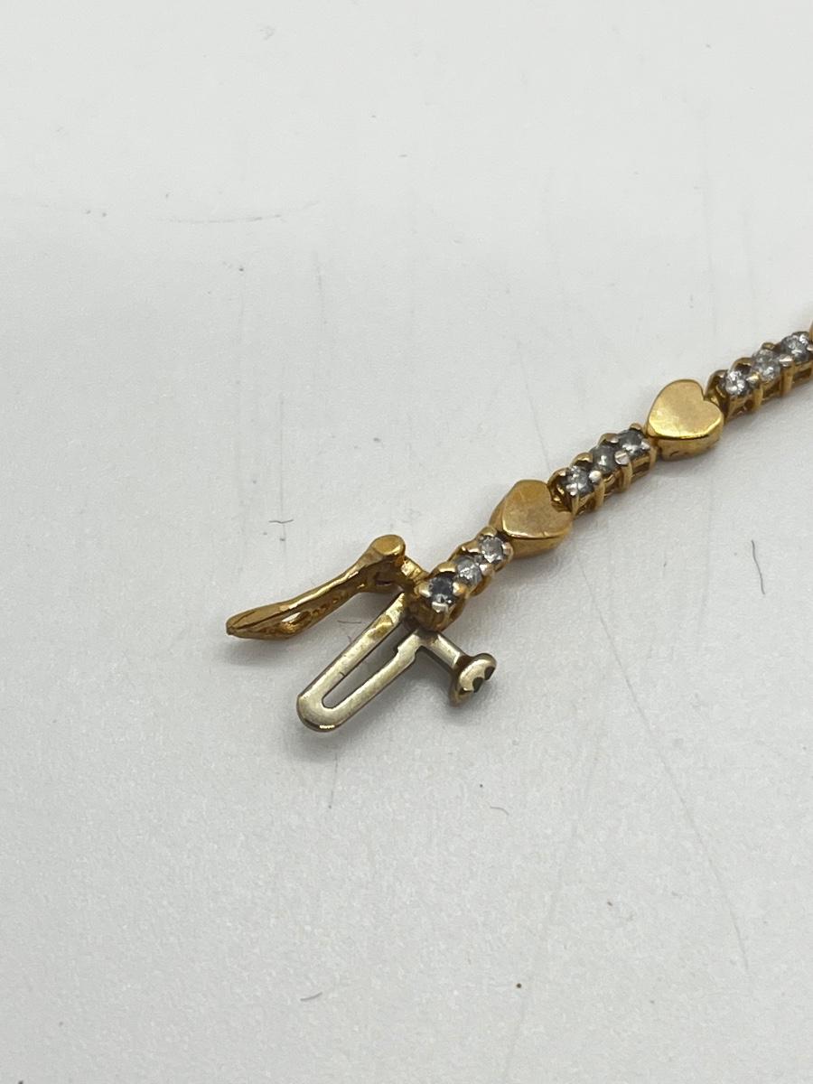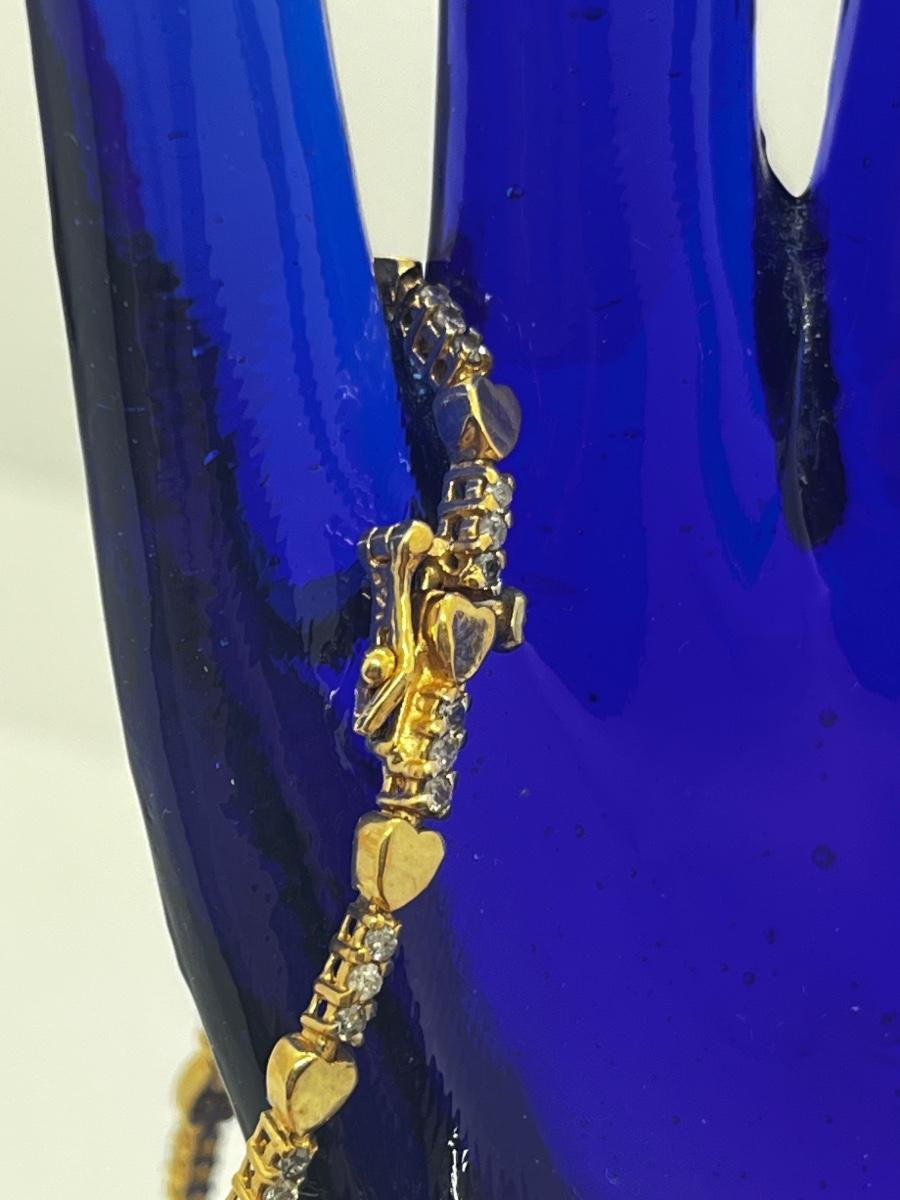 LOT 9: 14K Yellow Gold Hearts and Diamond Chips Bracelet - 7"