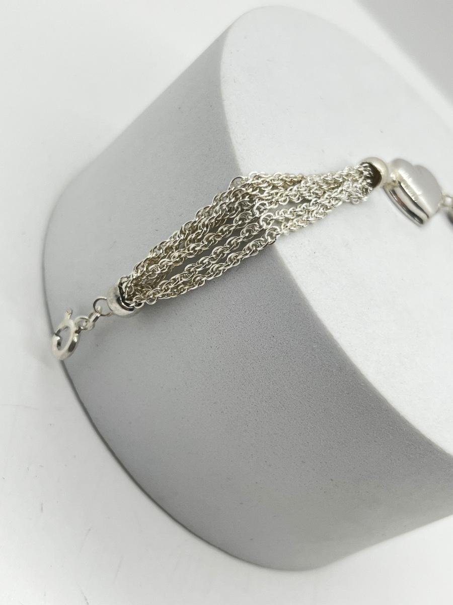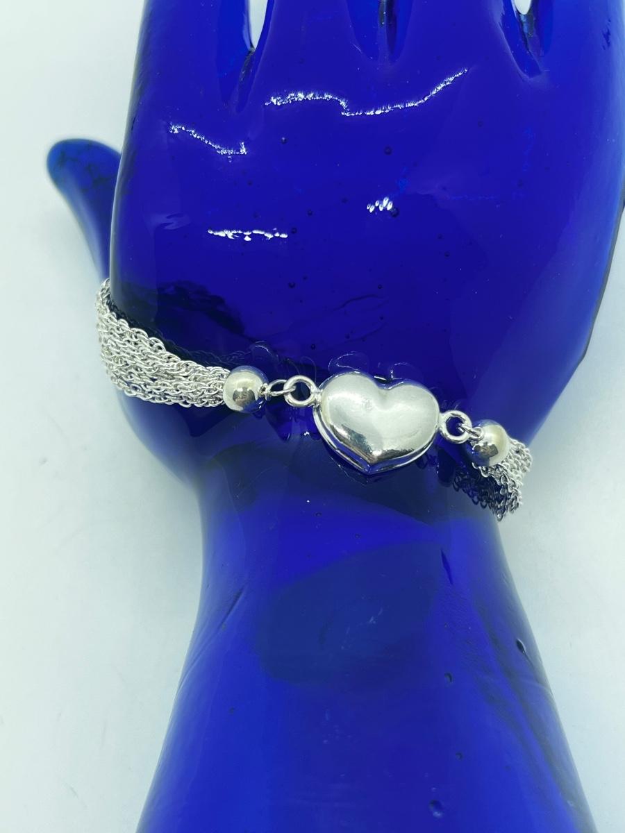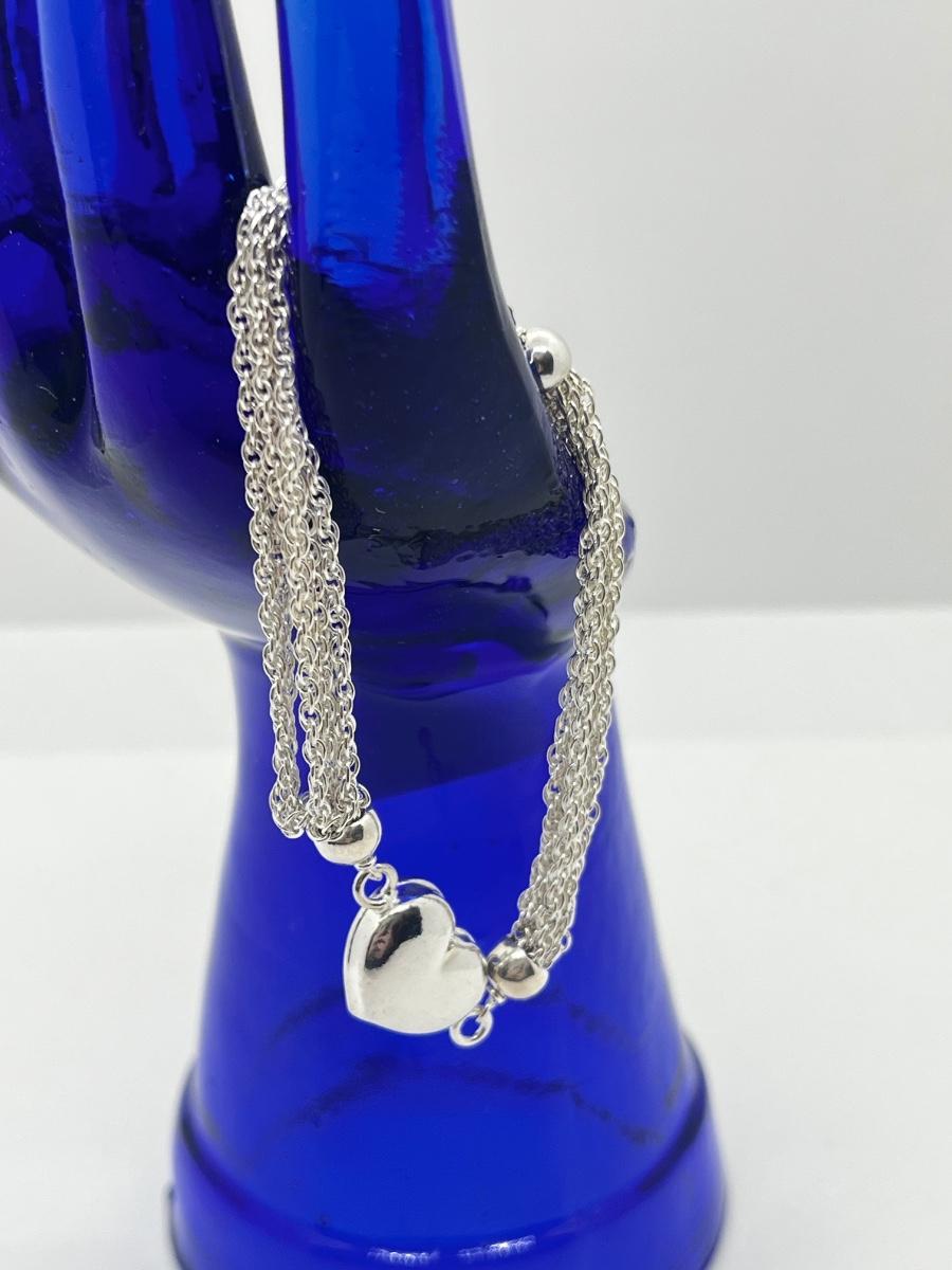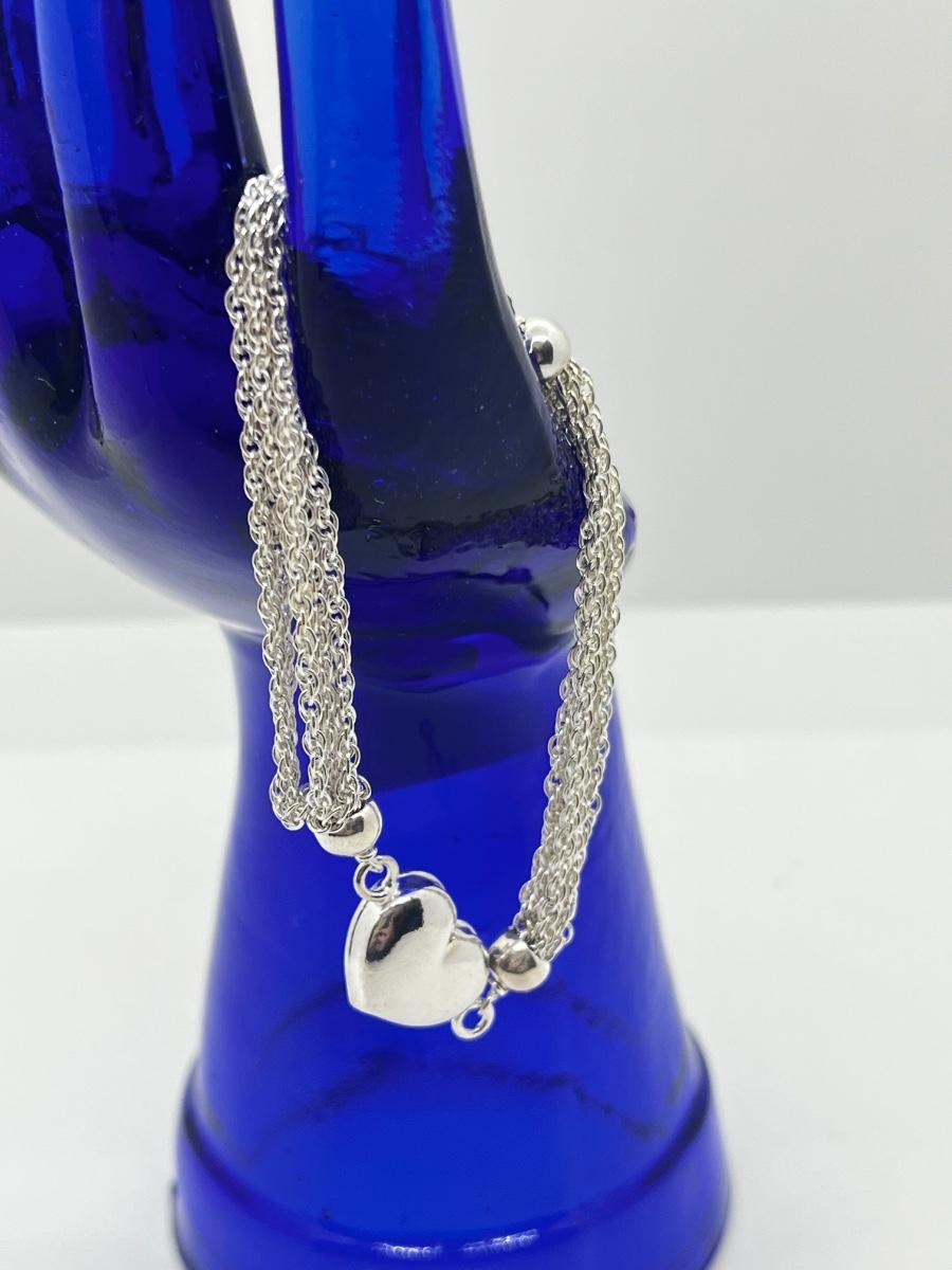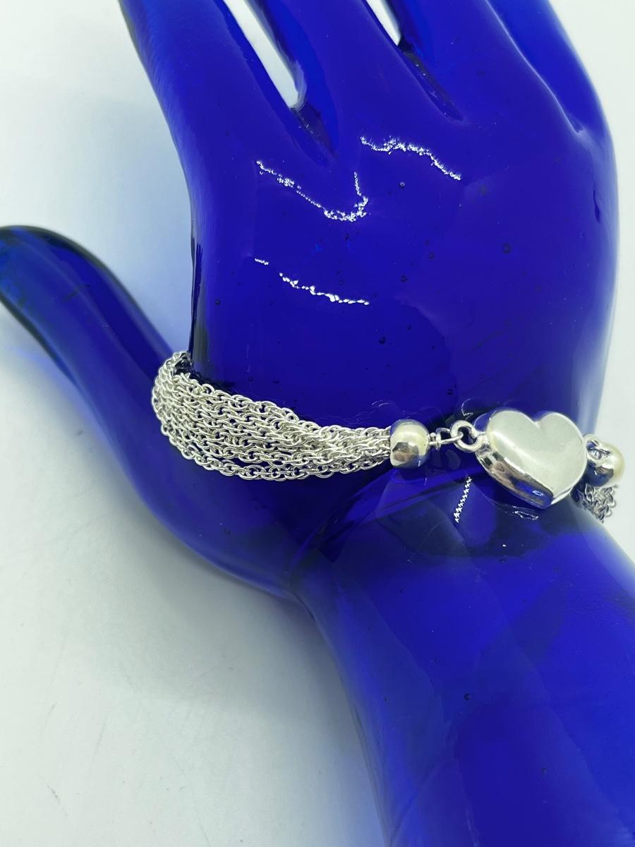 LOT 10: Sterling Silver Multi-strand Heart Bracelet - Marked 925 Italy - 7"