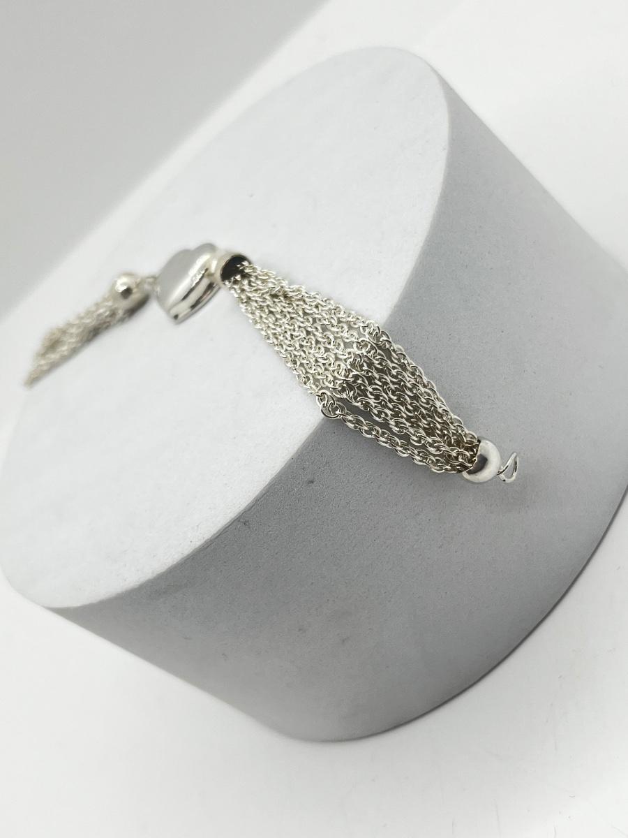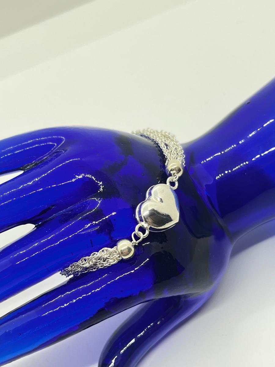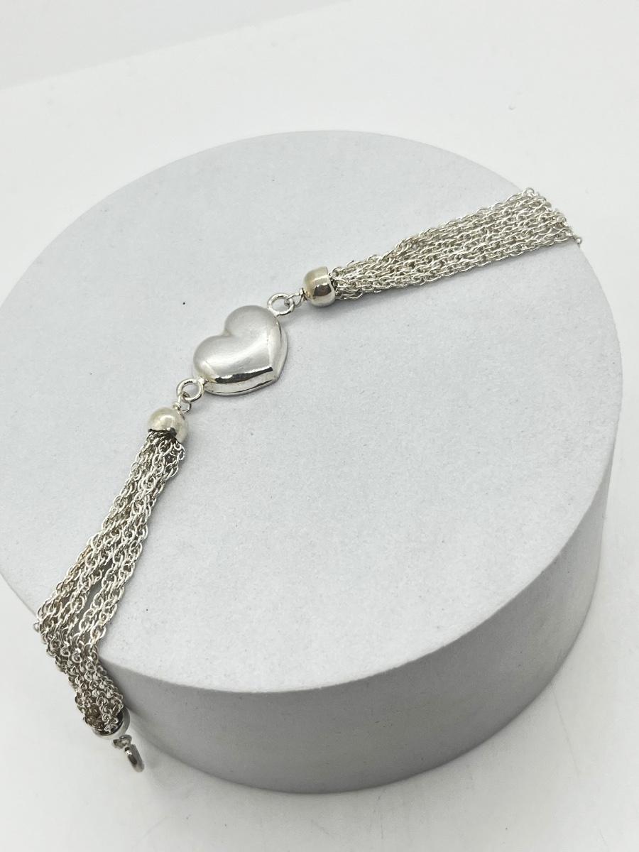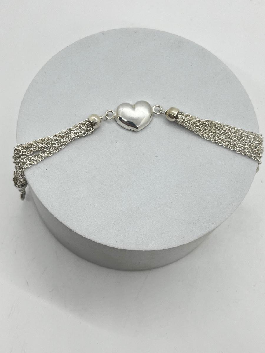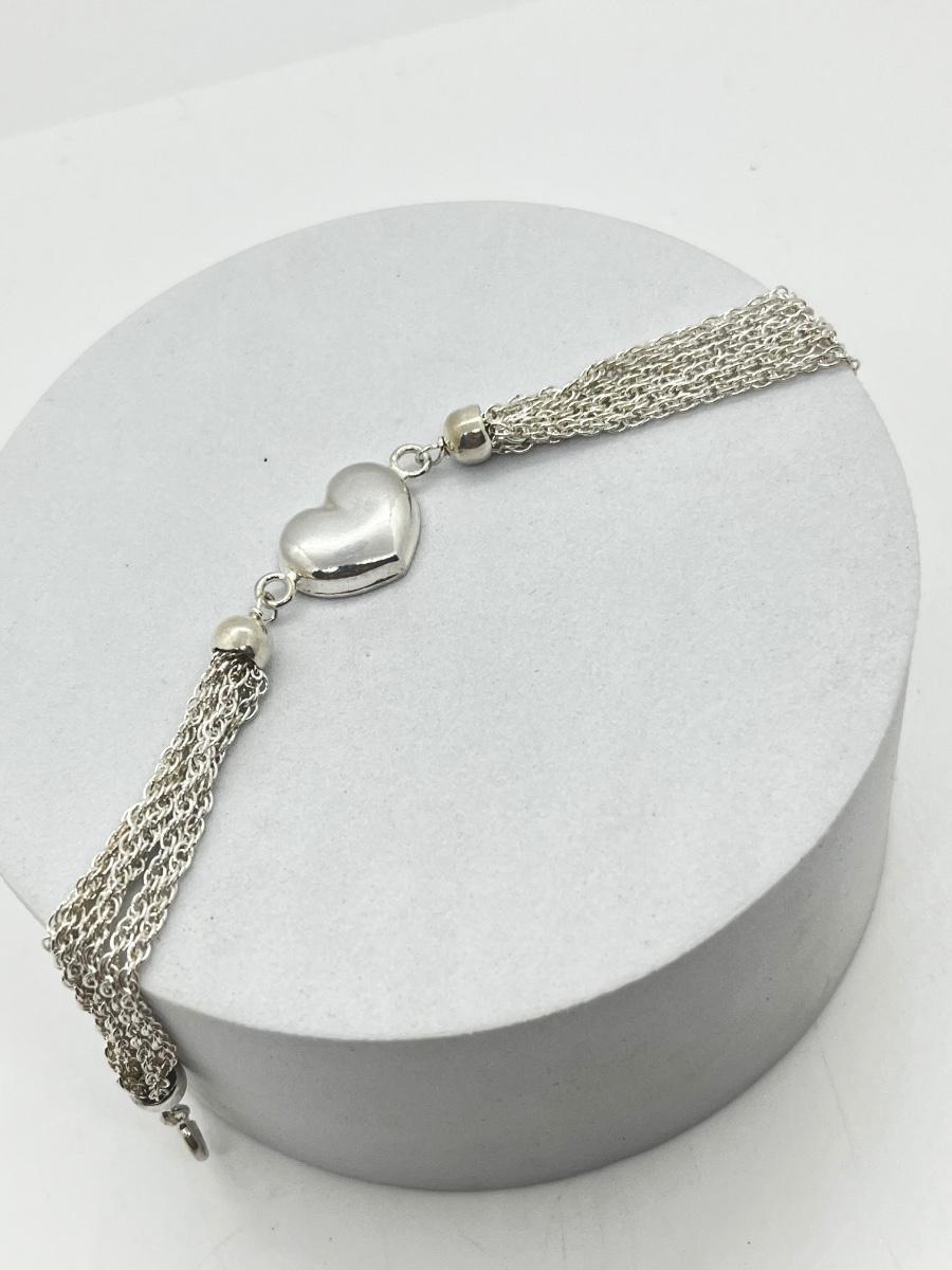 LOT 10: Sterling Silver Multi-strand Heart Bracelet - Marked 925 Italy - 7"