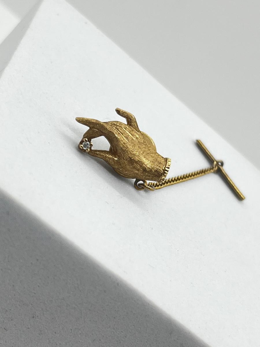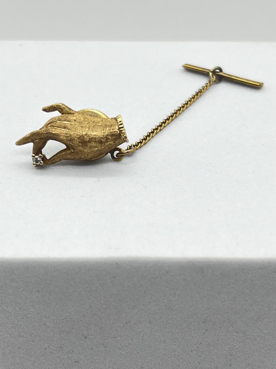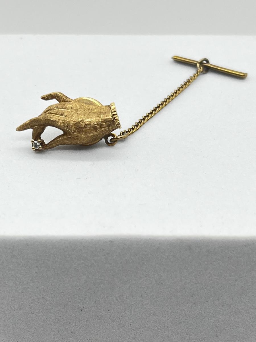 LOT 12: 14K Yellow Gold and Diamond Hand Tie Pin - 2.3 GTW