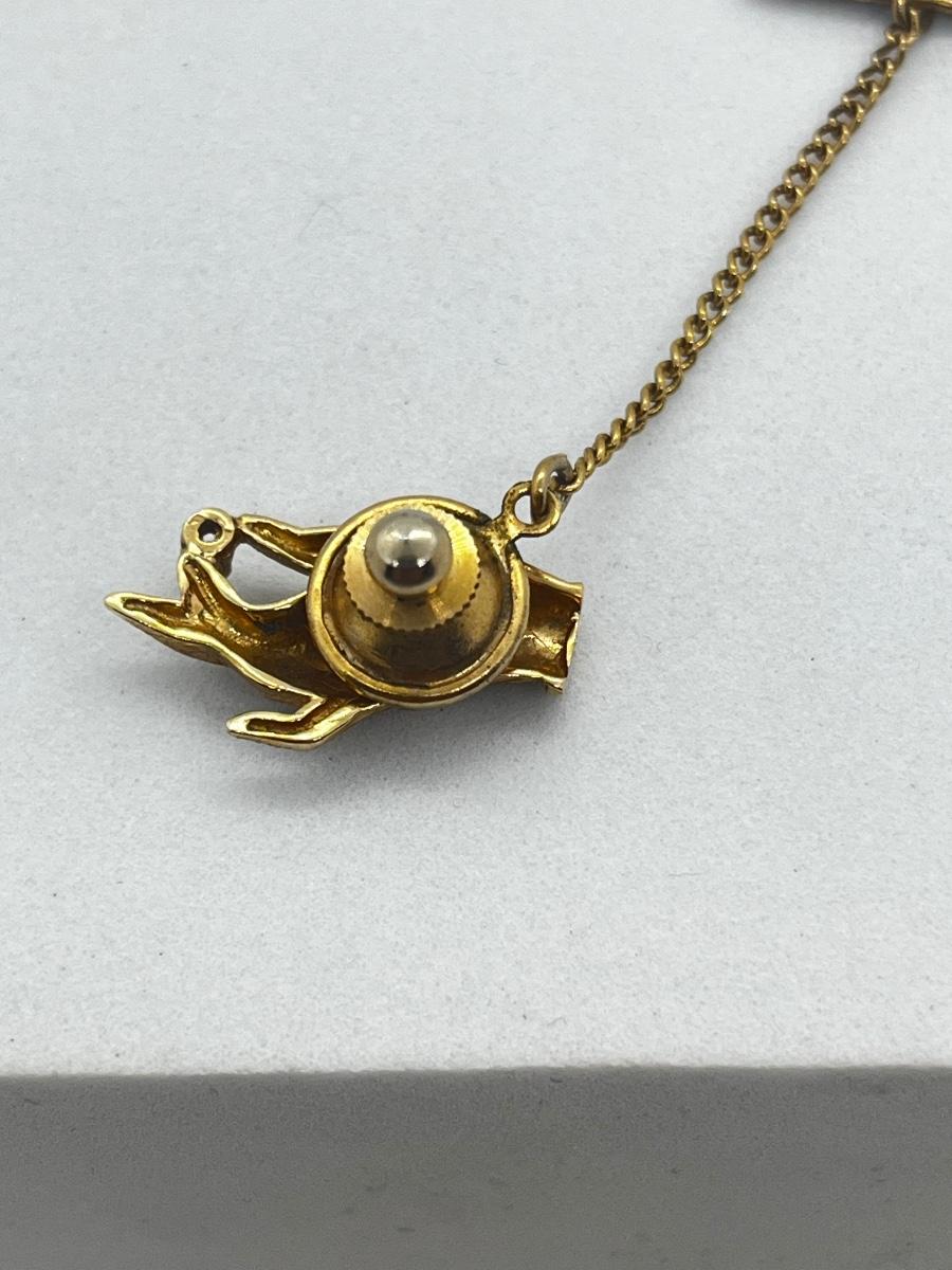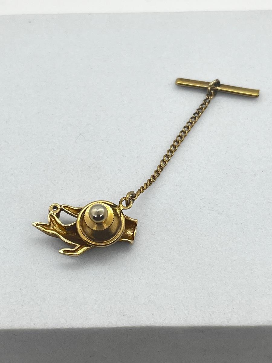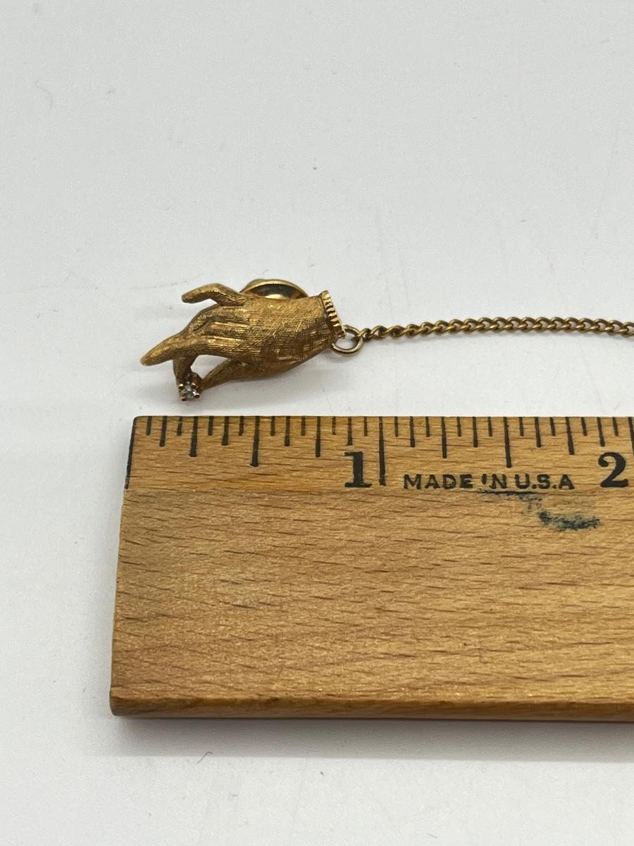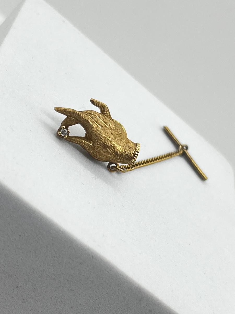 LOT 12: 14K Yellow Gold and Diamond Hand Tie Pin - 2.3 GTW