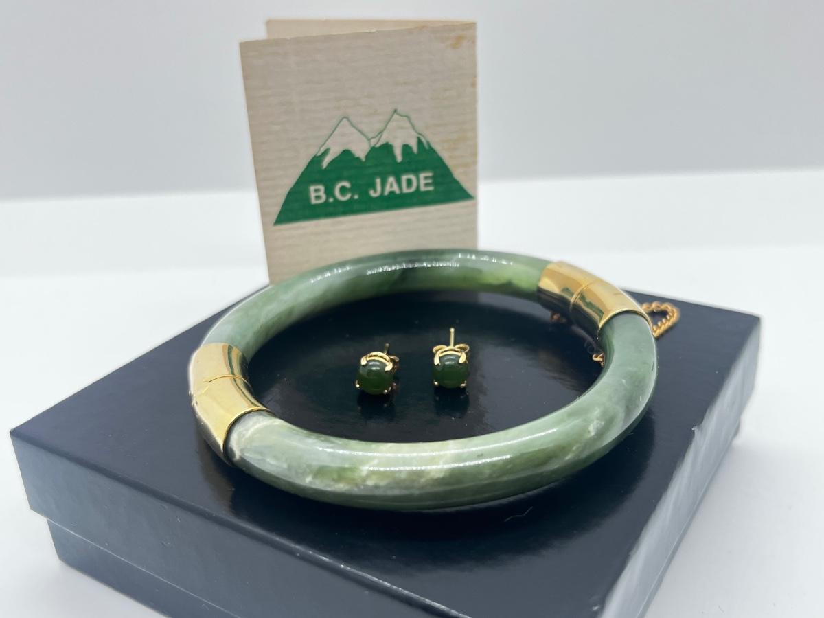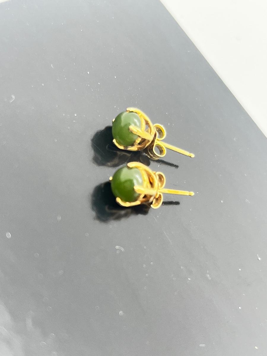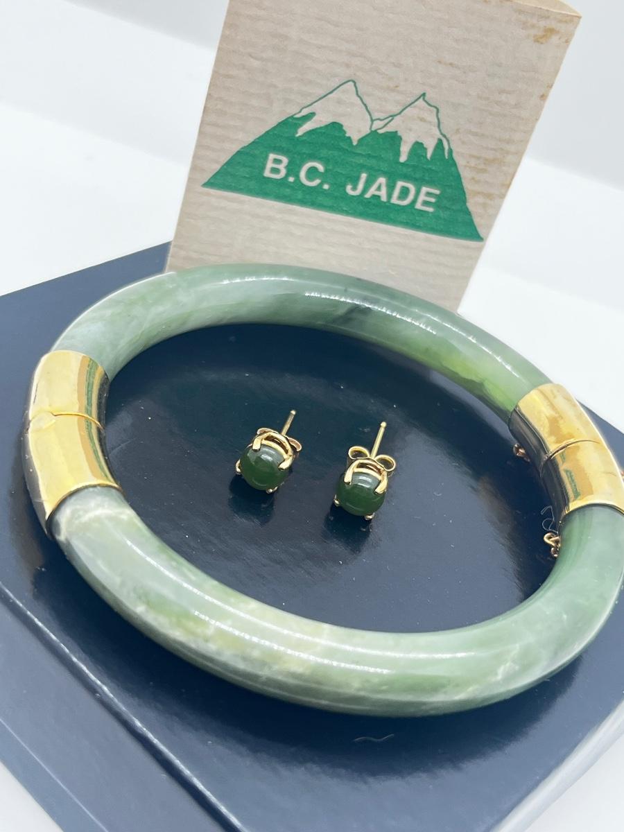 LOT 13: 10K Yellow Gold and Jade Bracelet with 14K Yellow Gold Post Earrings - 1.6 GTW
