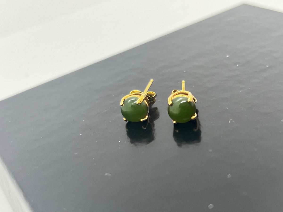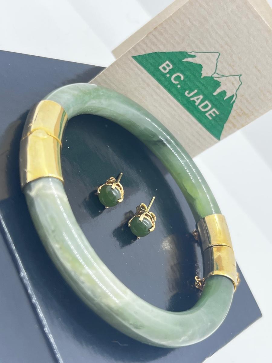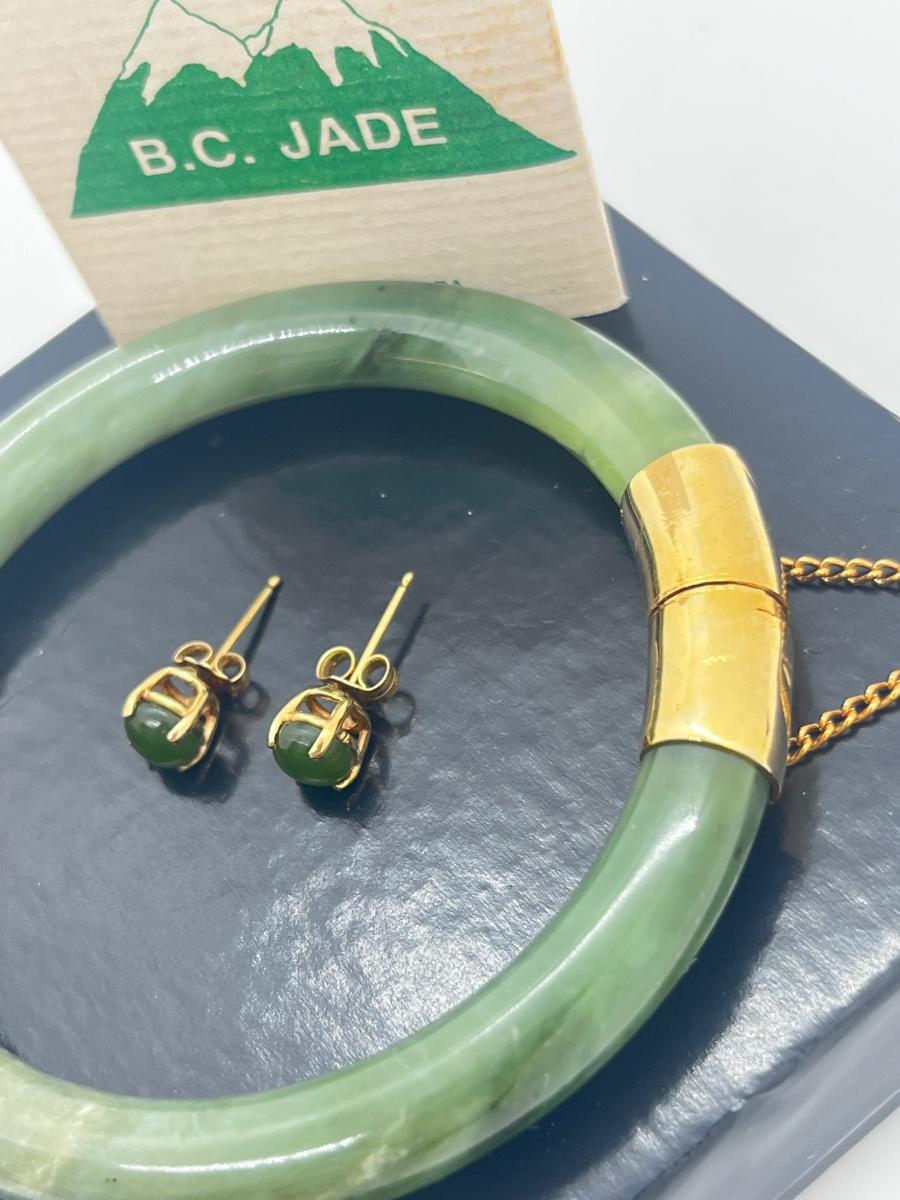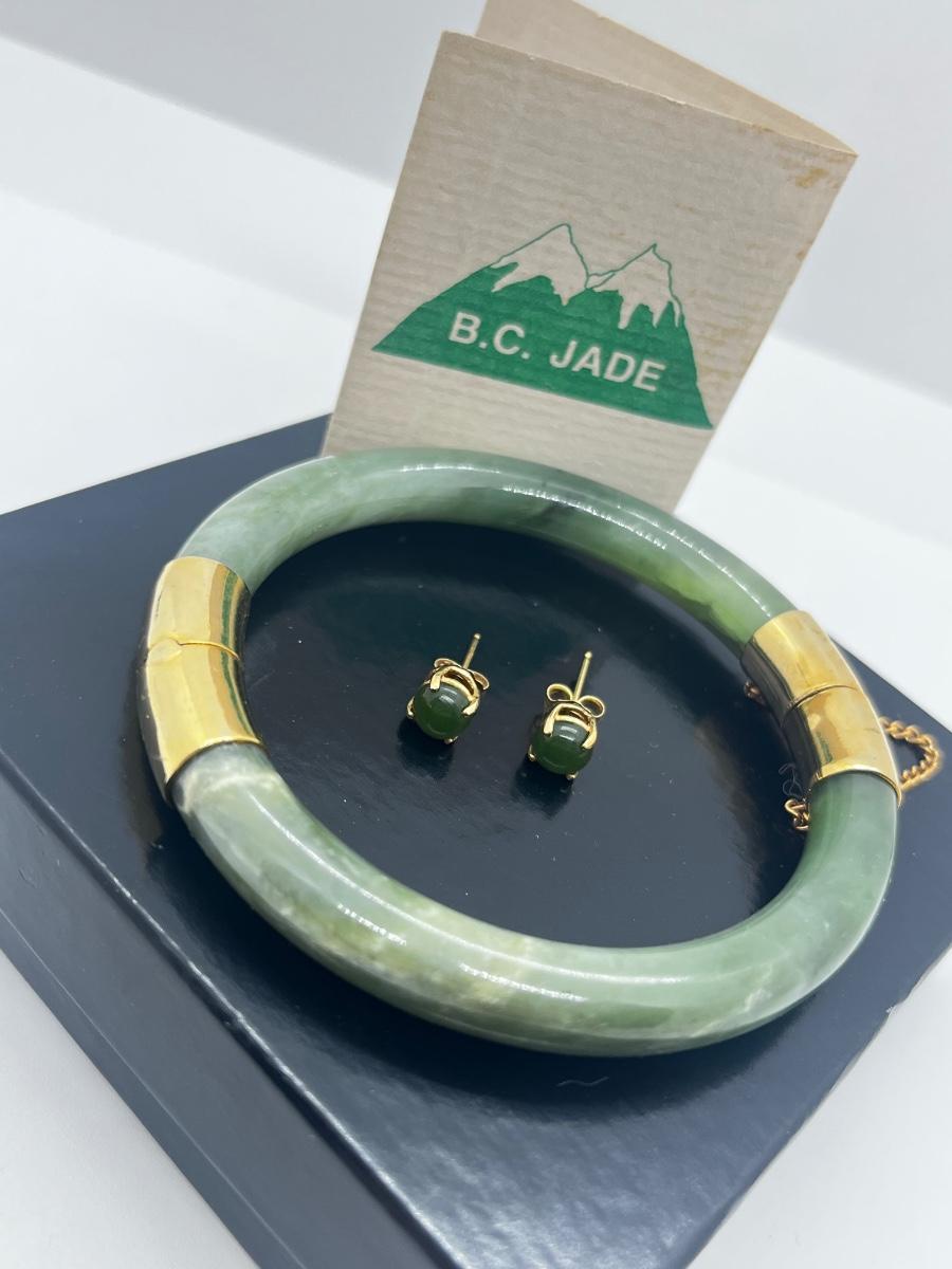 LOT 13: 10K Yellow Gold and Jade Bracelet with 14K Yellow Gold Post Earrings - 1.6 GTW