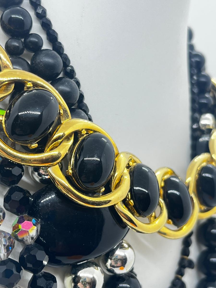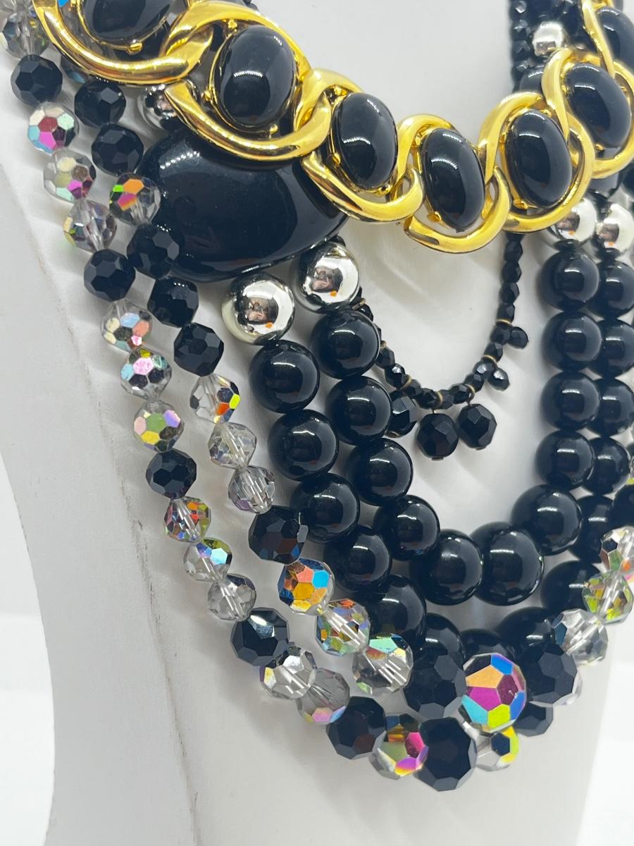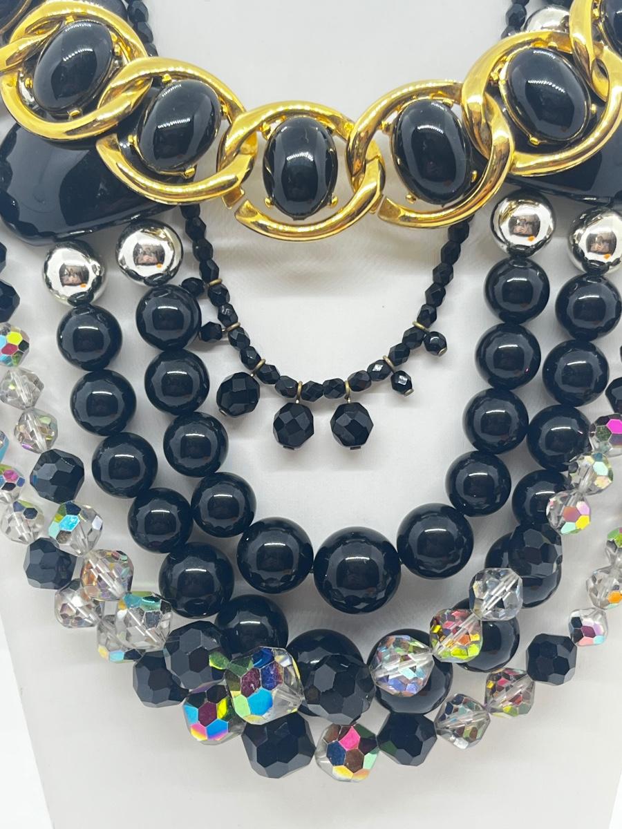 LOT 17: Goldtone and Black Beaded Necklace Collection With Floral Clip on Earrings, Aurora Borealis Beads and More!
