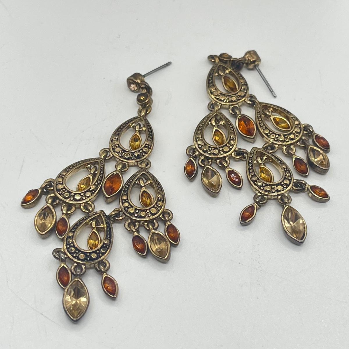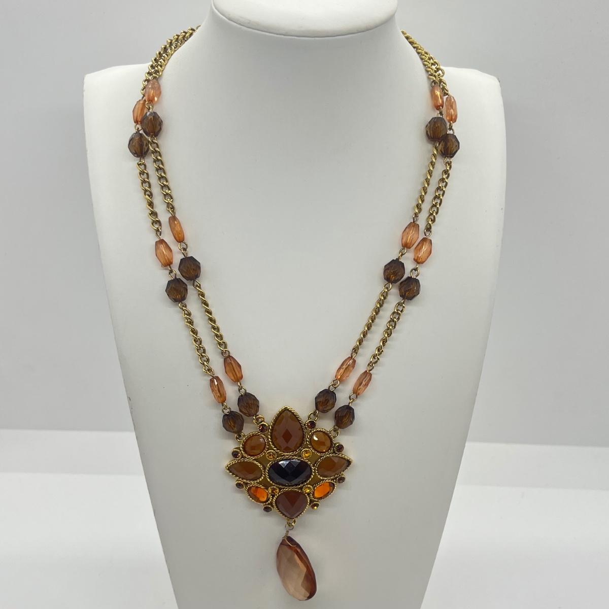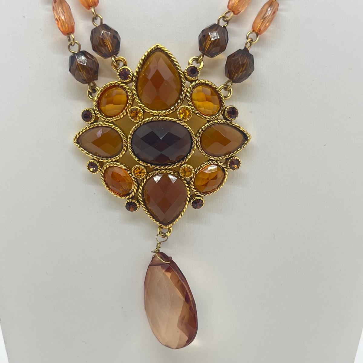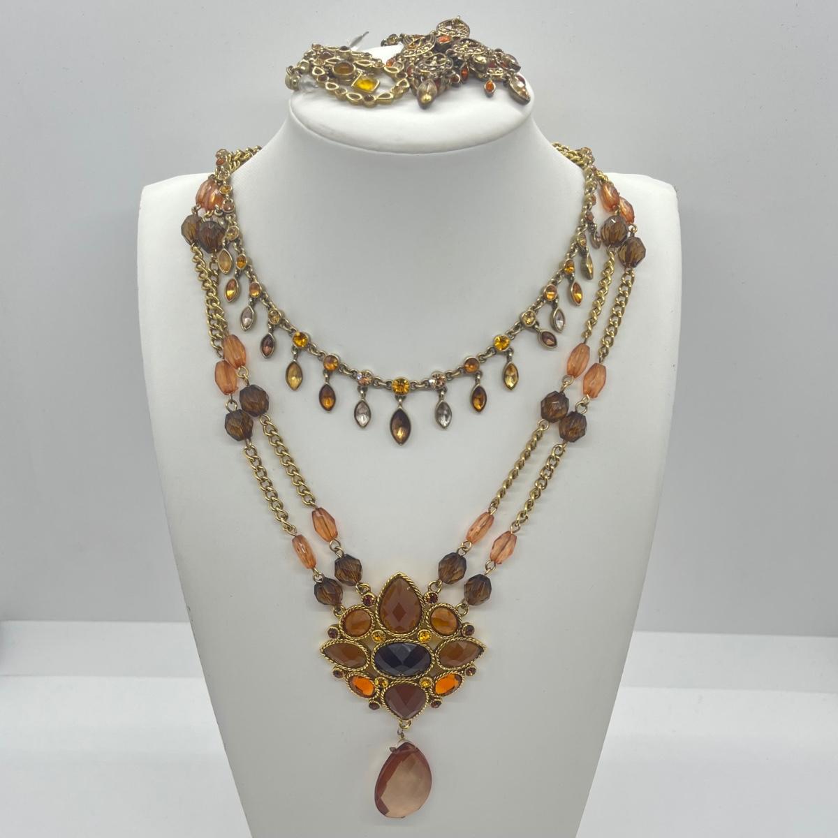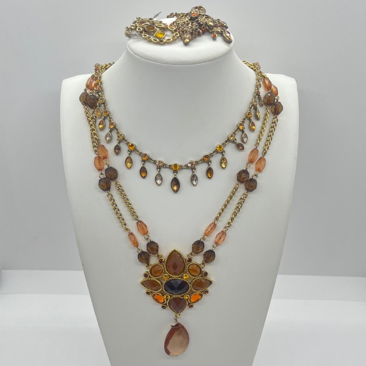 LOT 22: Two Goldtone and Amber Necklace and Earring Sets - 18"