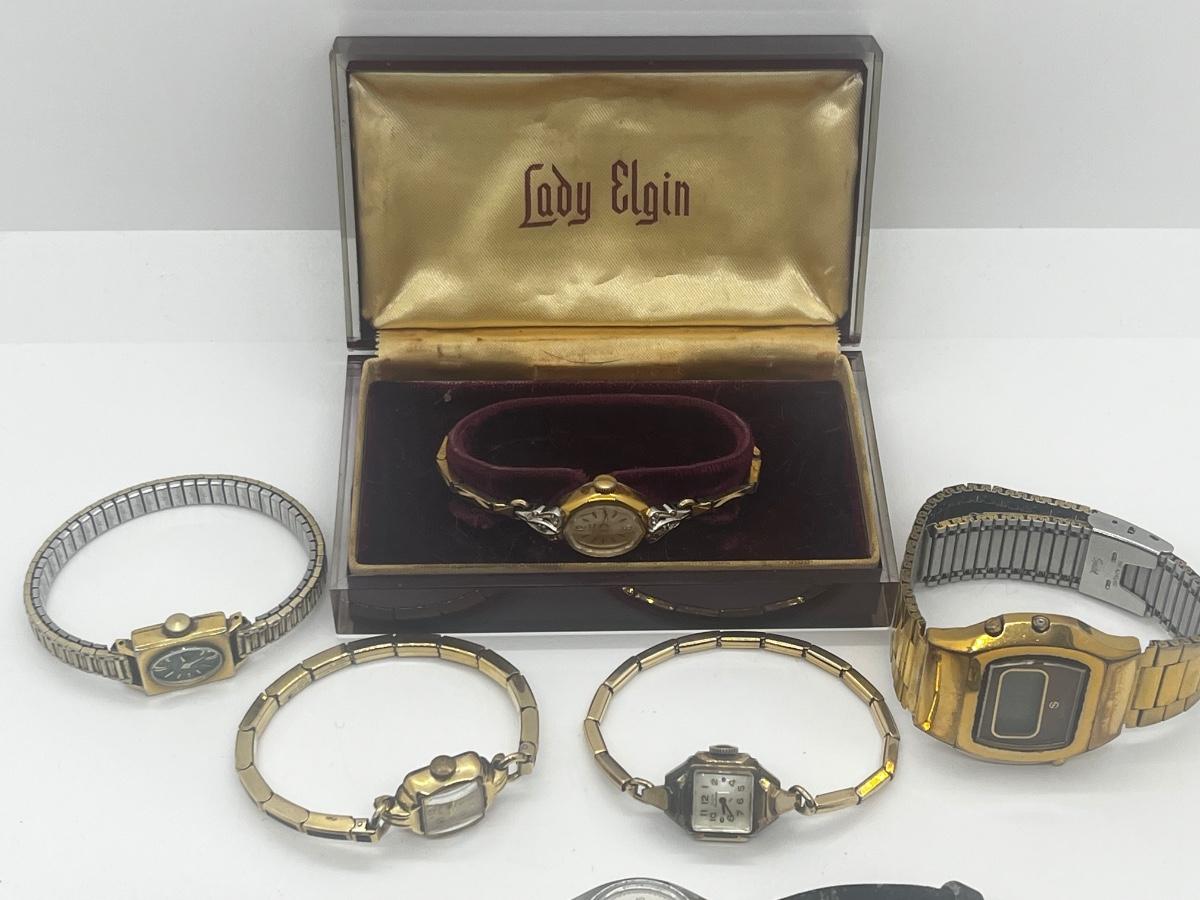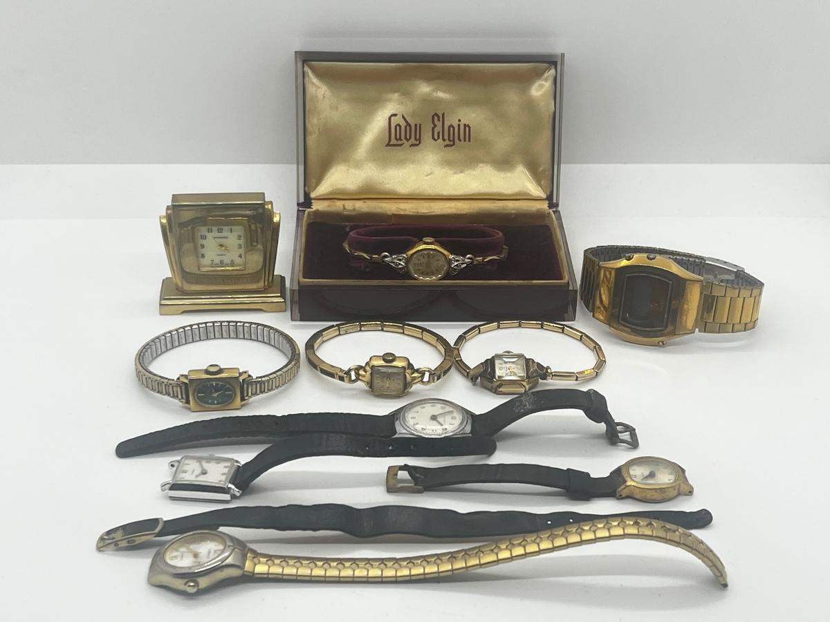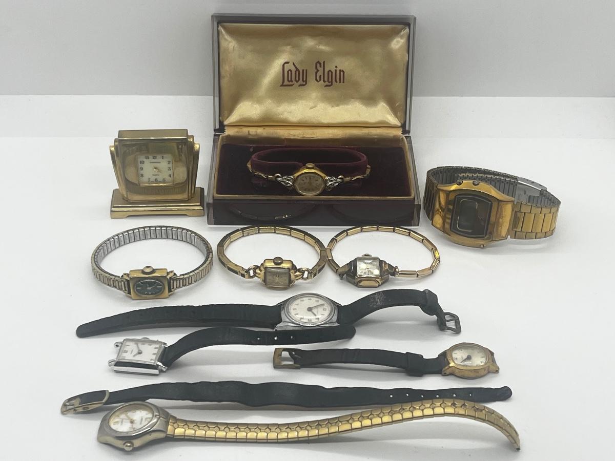 LOT 48: Vintage Watch/Clock Collection: Lady Elgin and More!