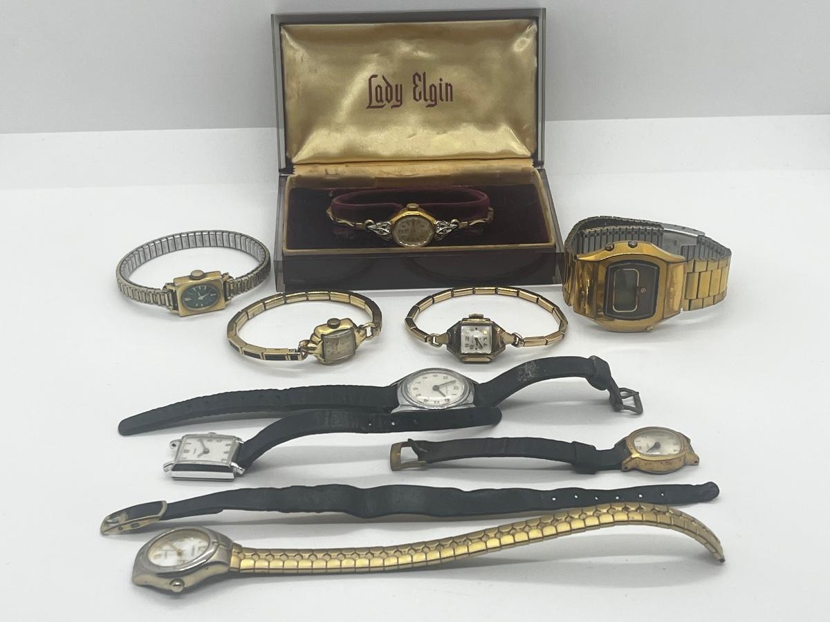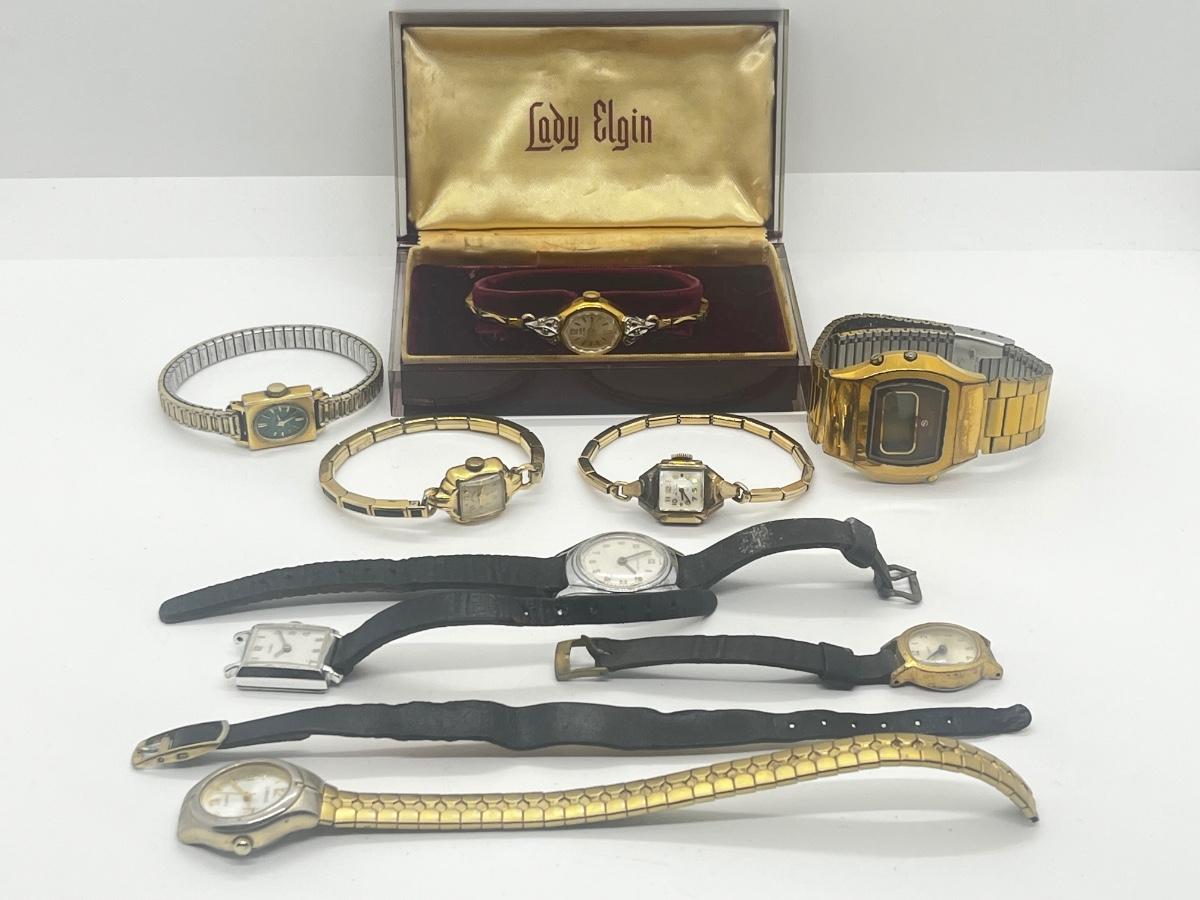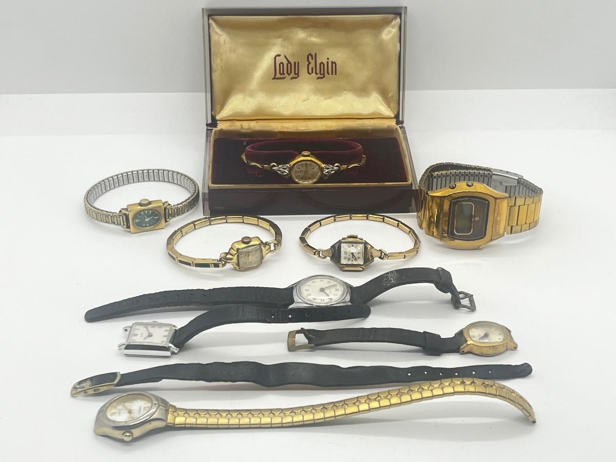 LOT 48: Vintage Watch/Clock Collection: Lady Elgin and More!