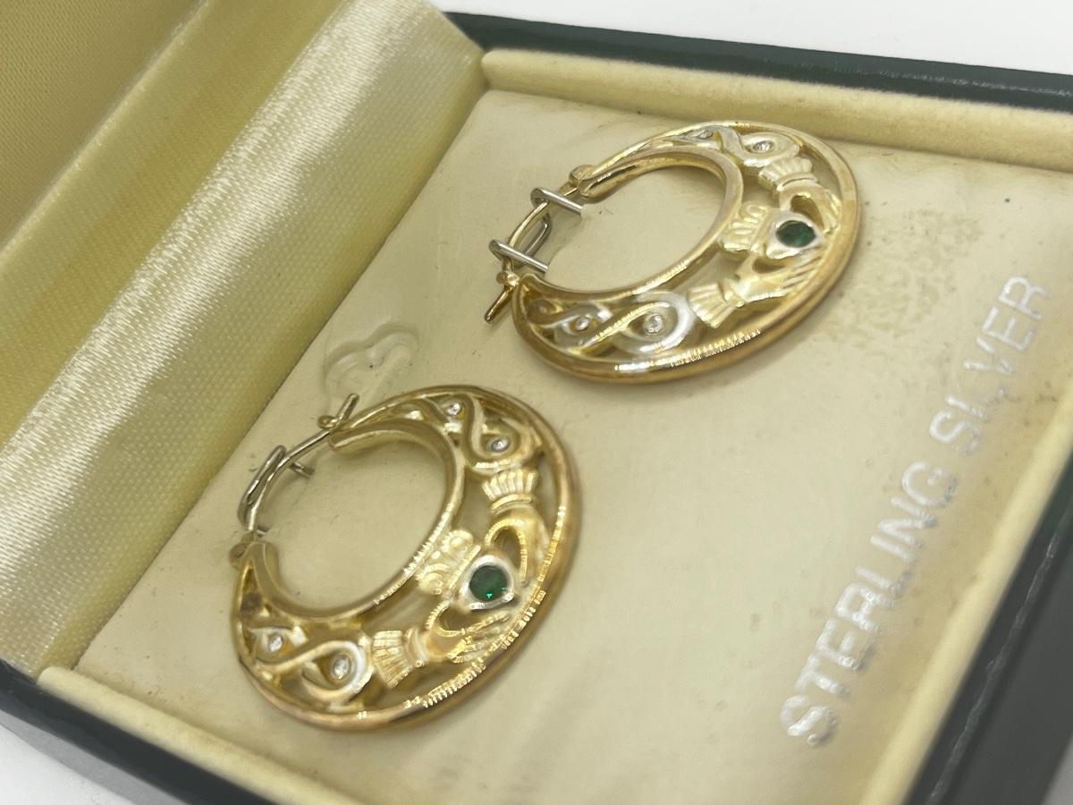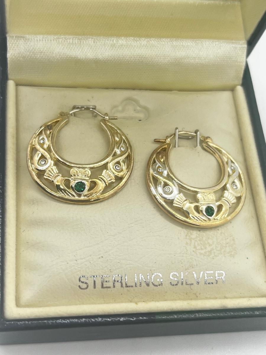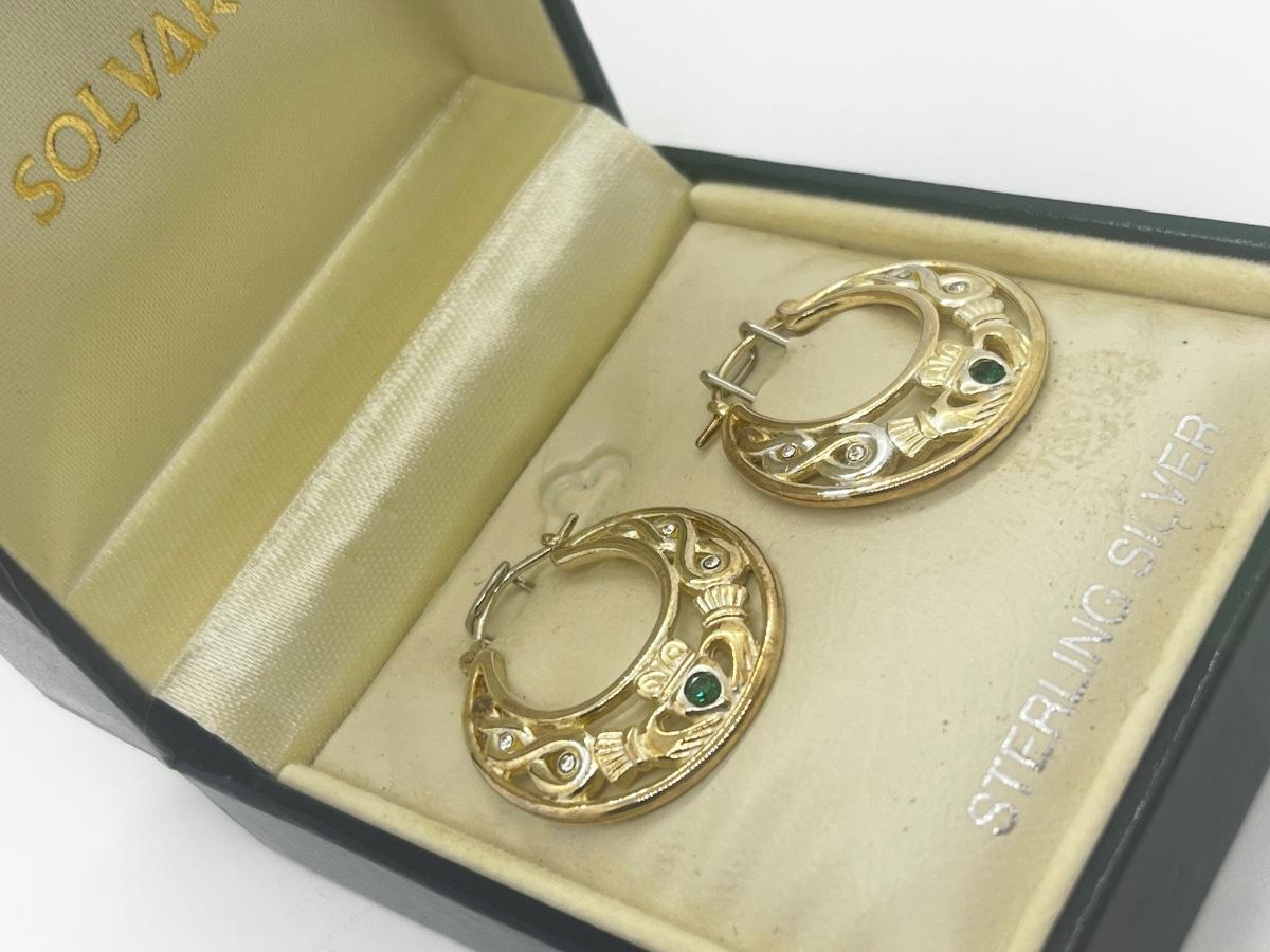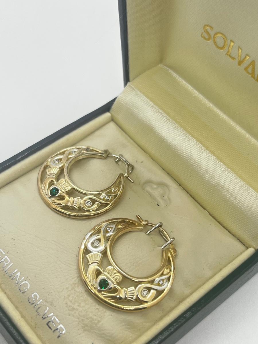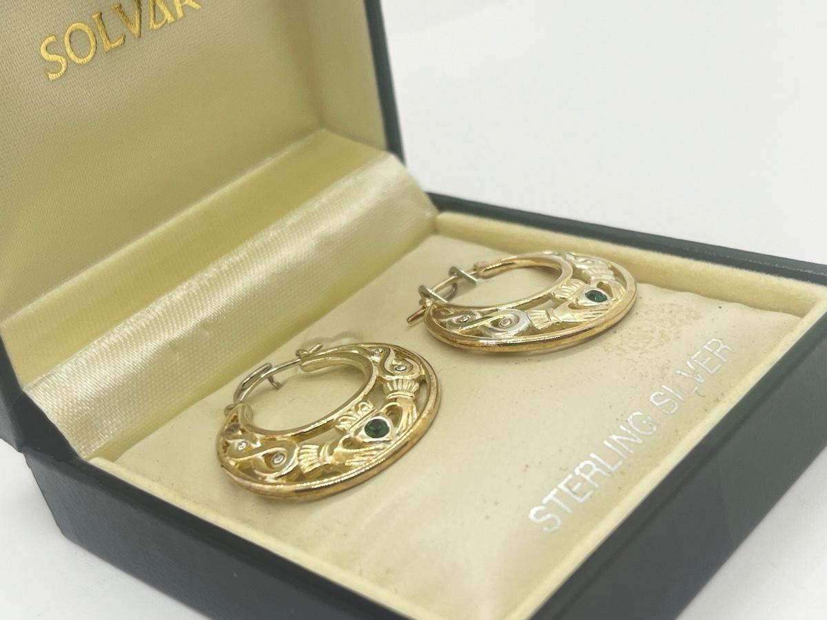 LOT 49: Solvar Sterling Silver Good Luck Irish Claddagh Pierced Earring
