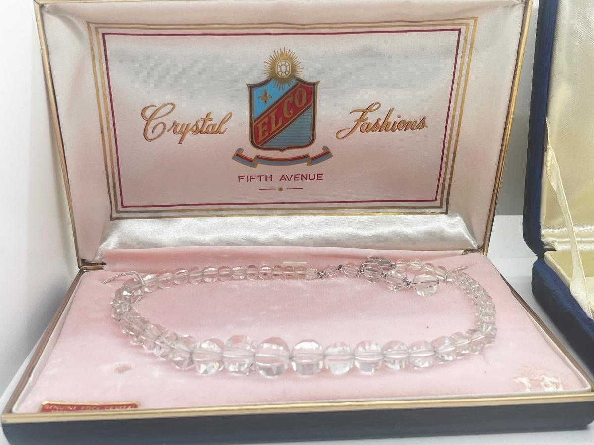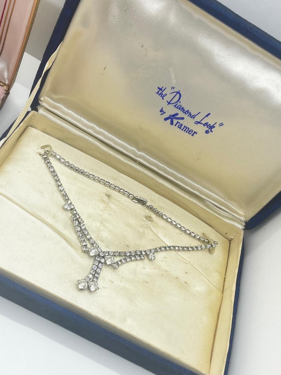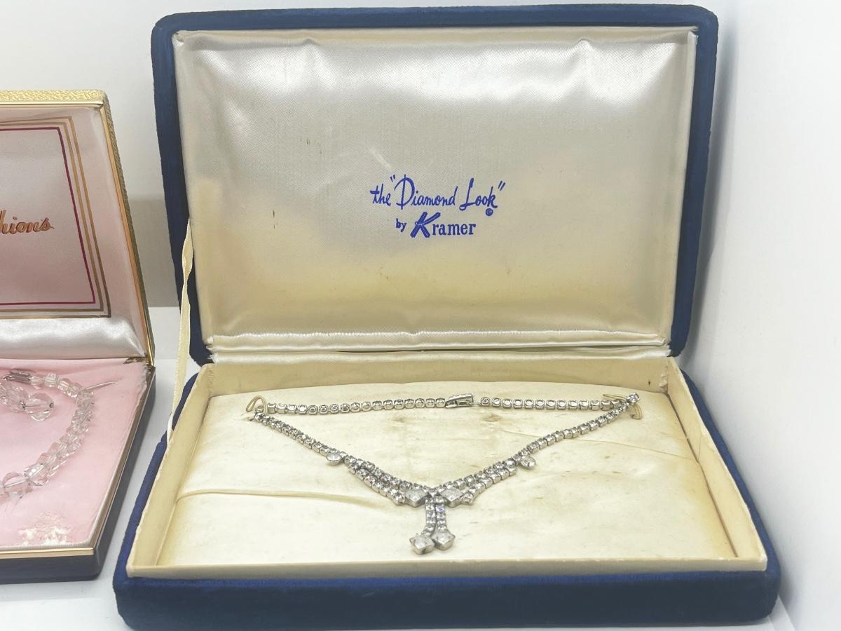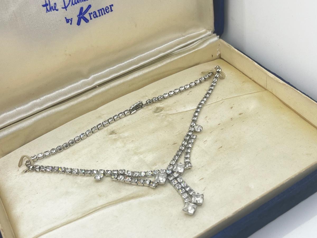 LOT 52: Two Vintage Necklaces - 13" Kramer Rhinestone and 17" Elco Rock Crystal