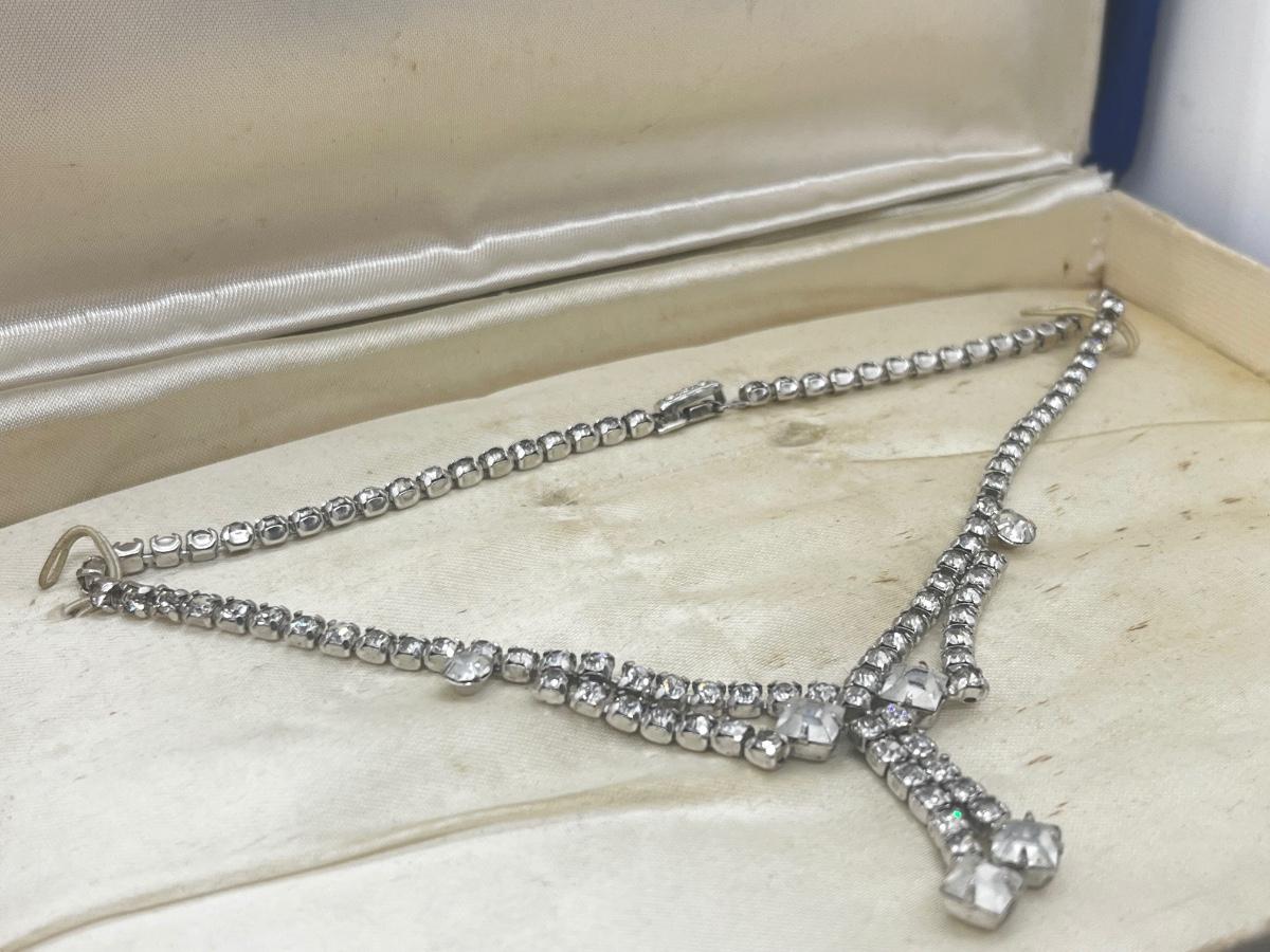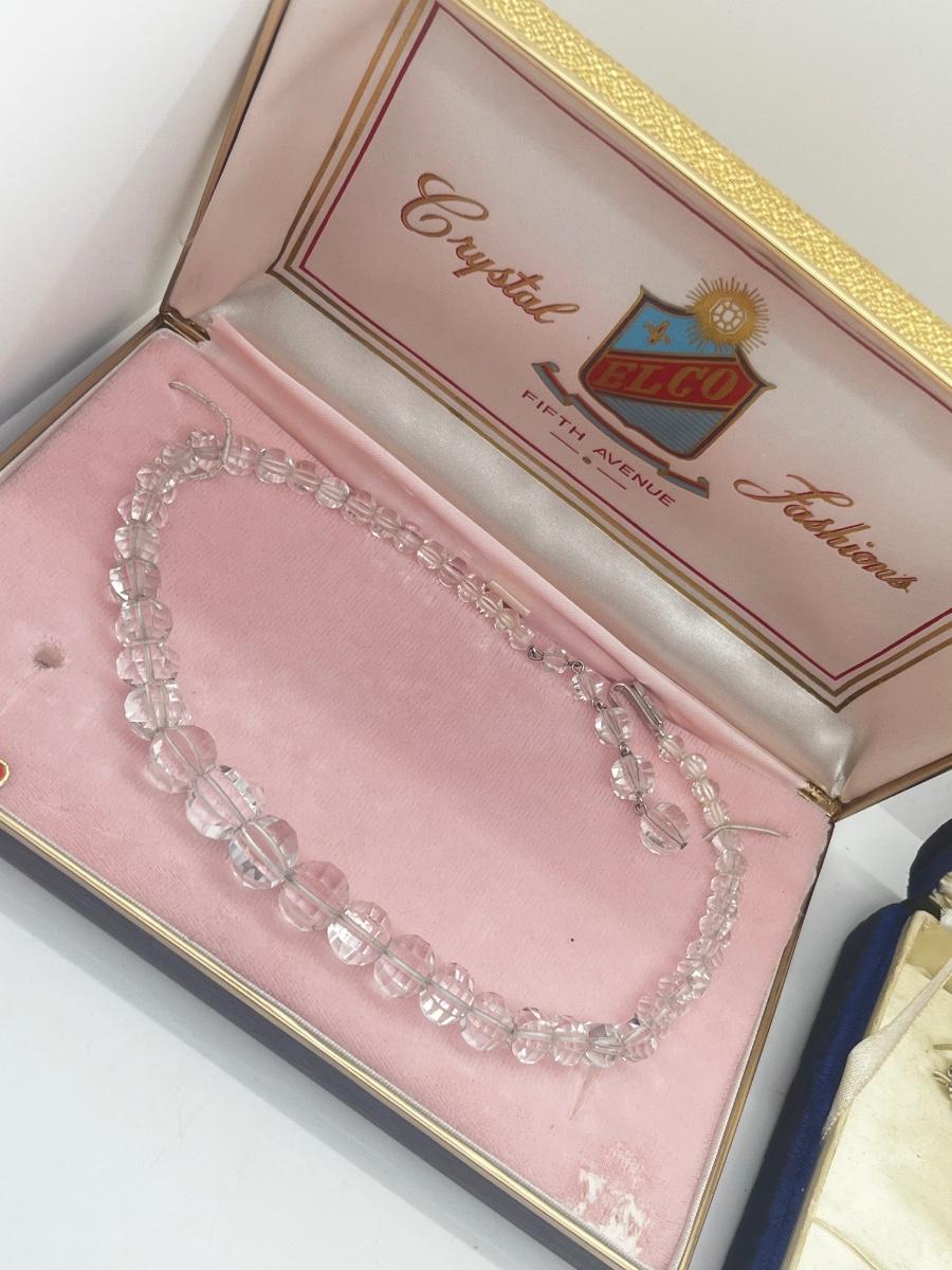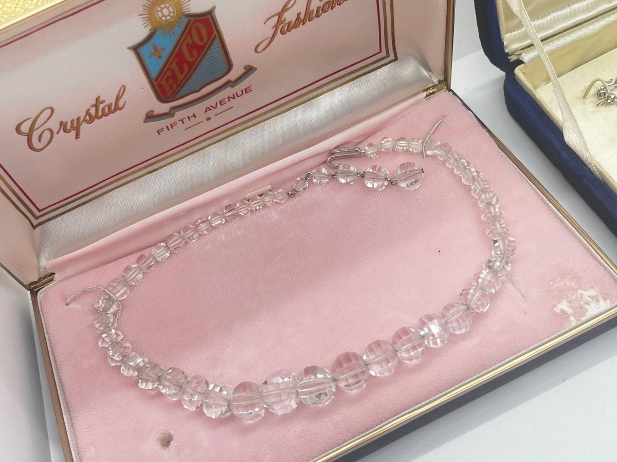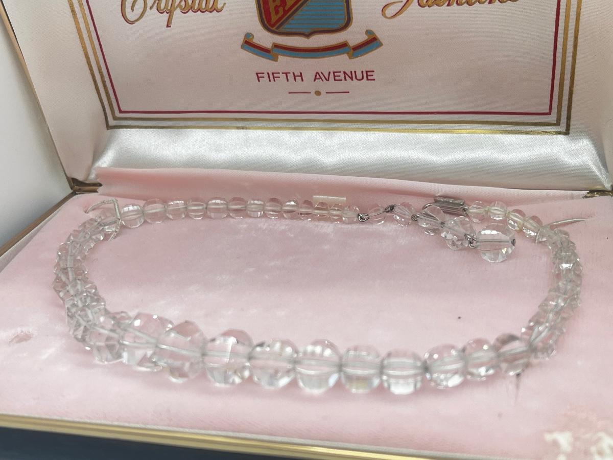 LOT 52: Two Vintage Necklaces - 13" Kramer Rhinestone and 17" Elco Rock Crystal