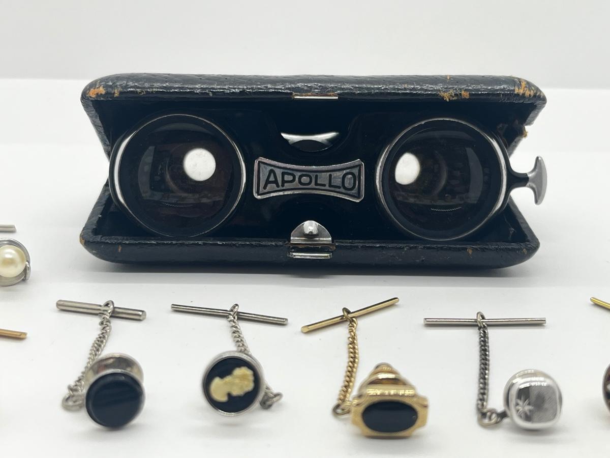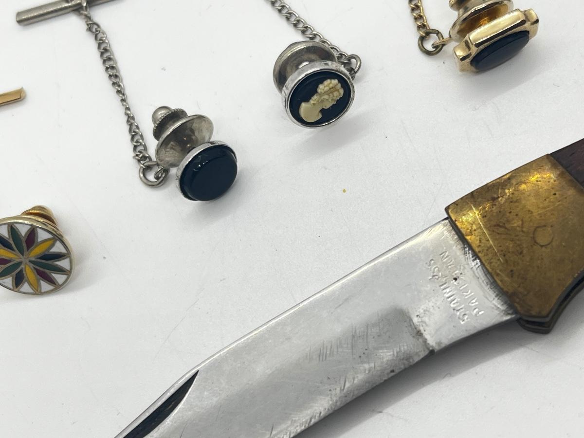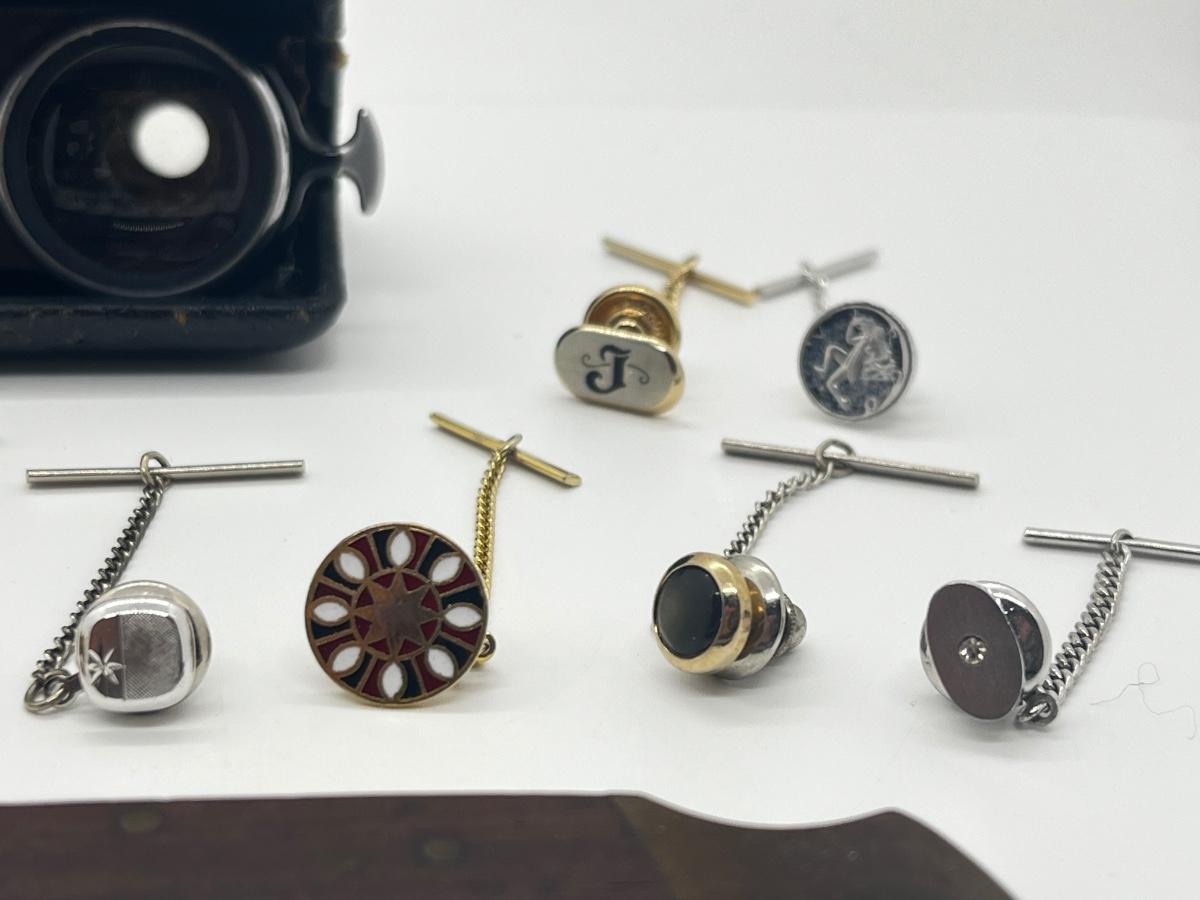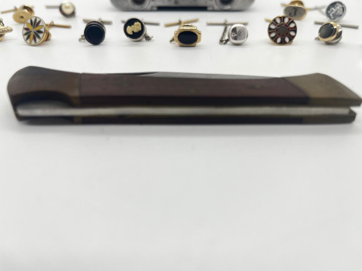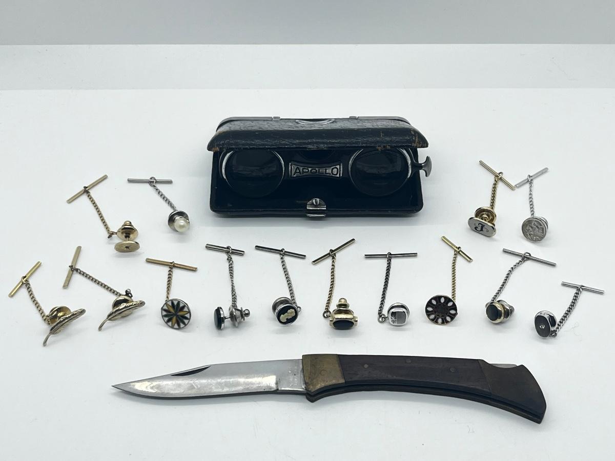 LOT 53: Tie Pins, Mini Binoculars and Pocket Knife
