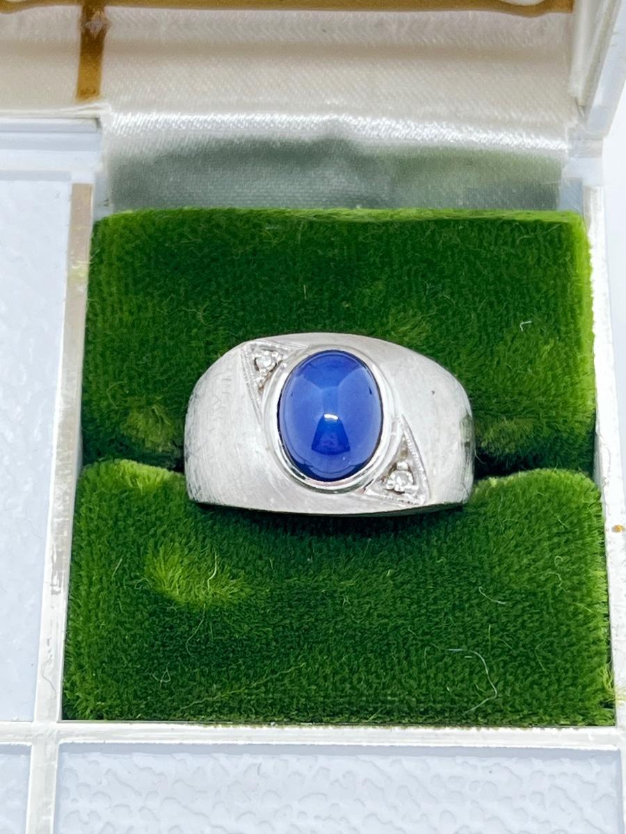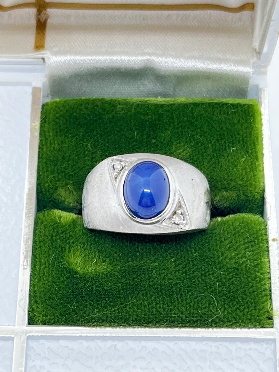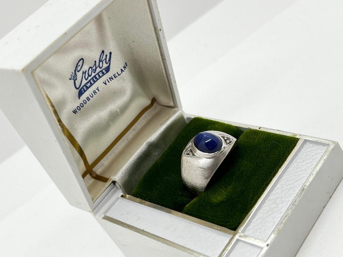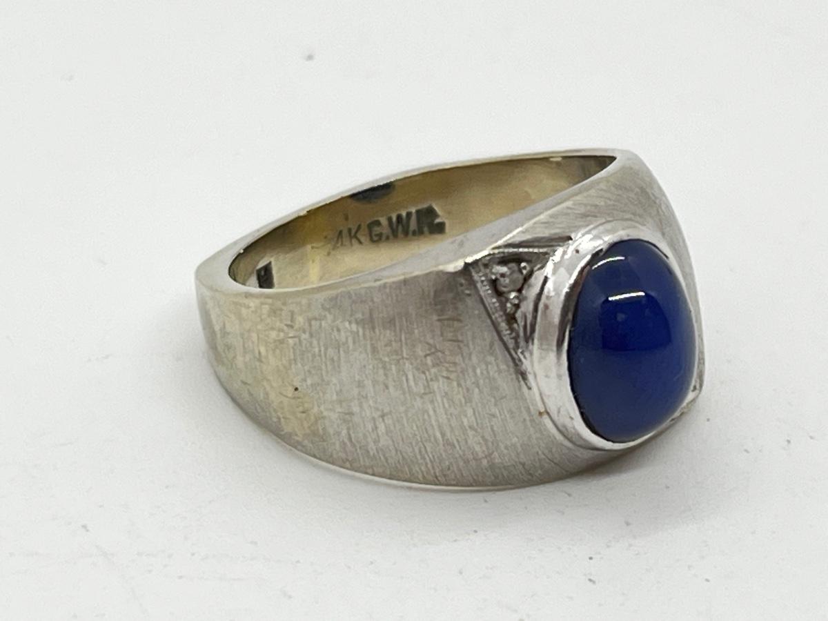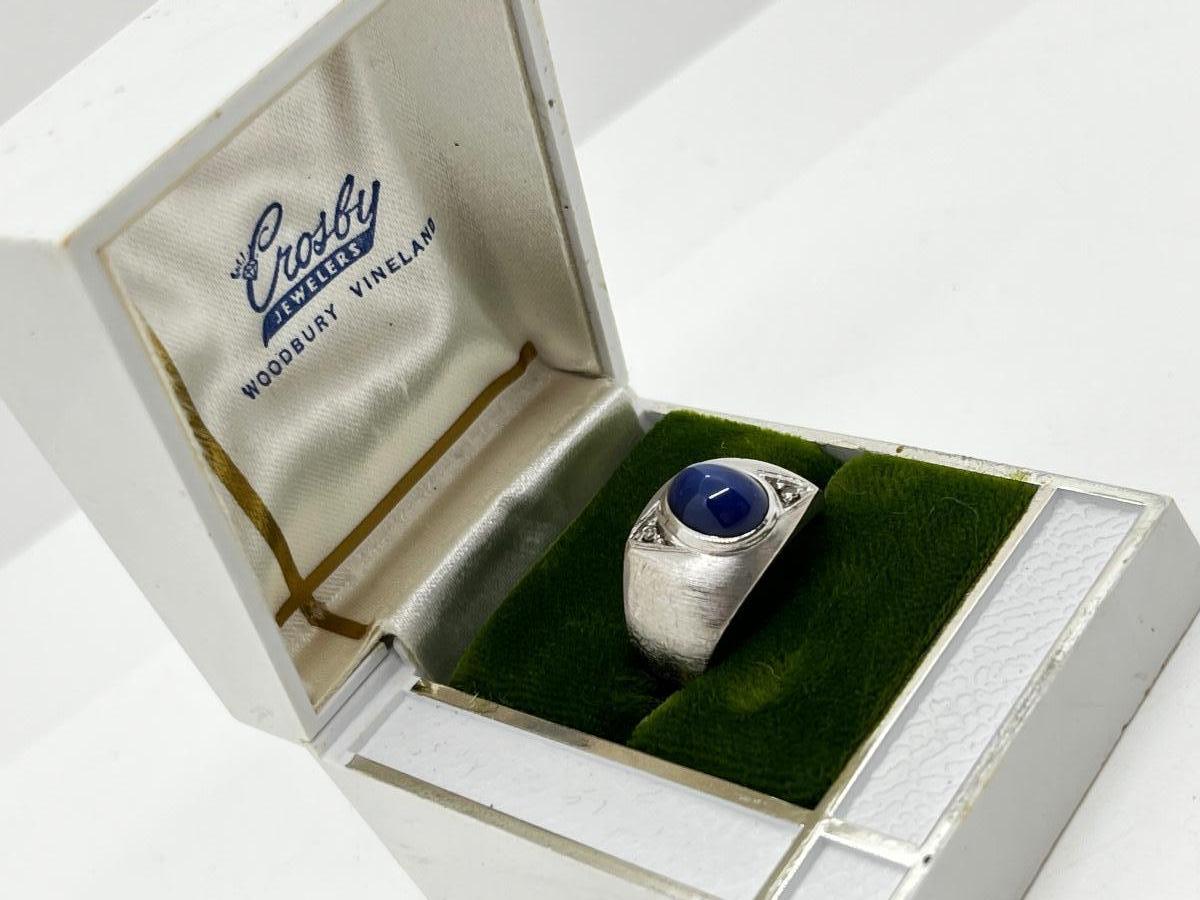 LOT 84: 14K White Gold and Blue Star Sapphire Ring - Size 7 - 8.59 GTW