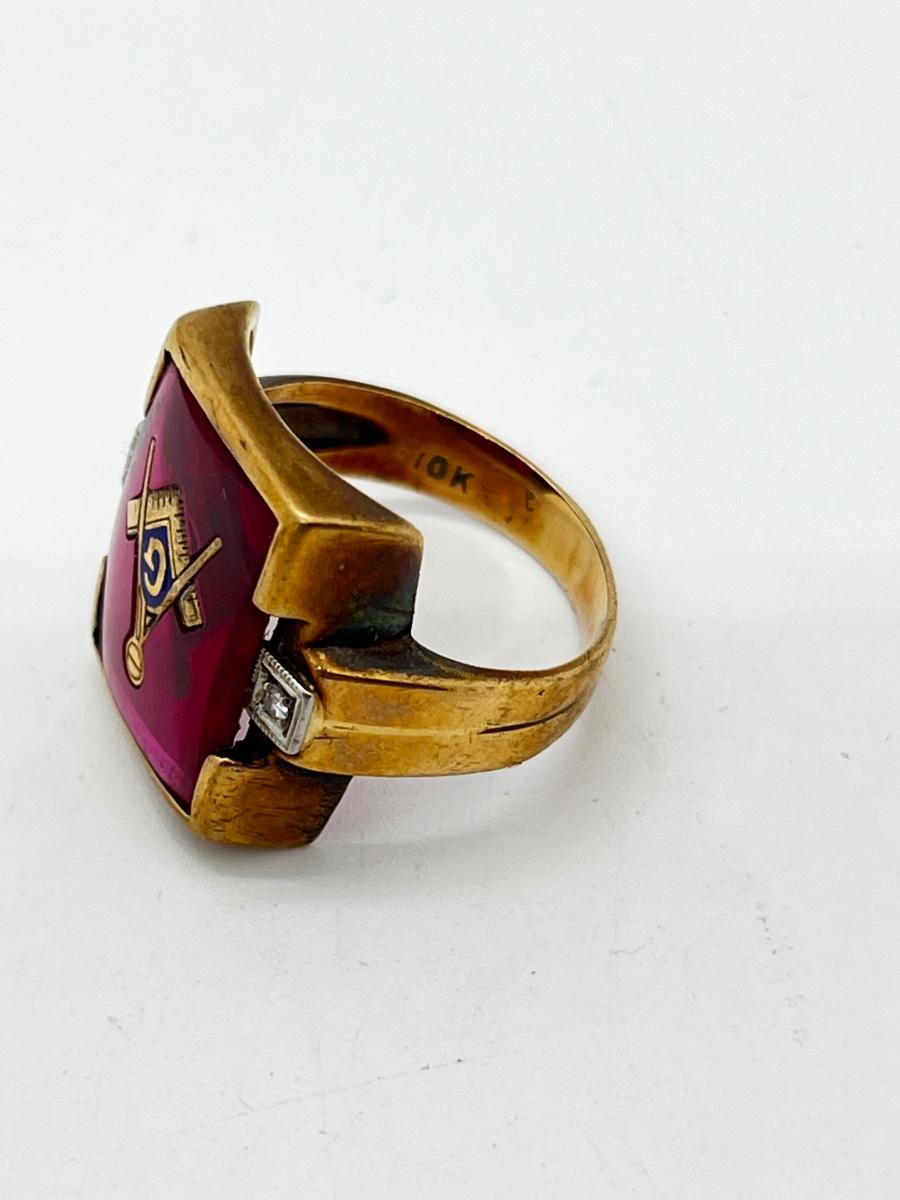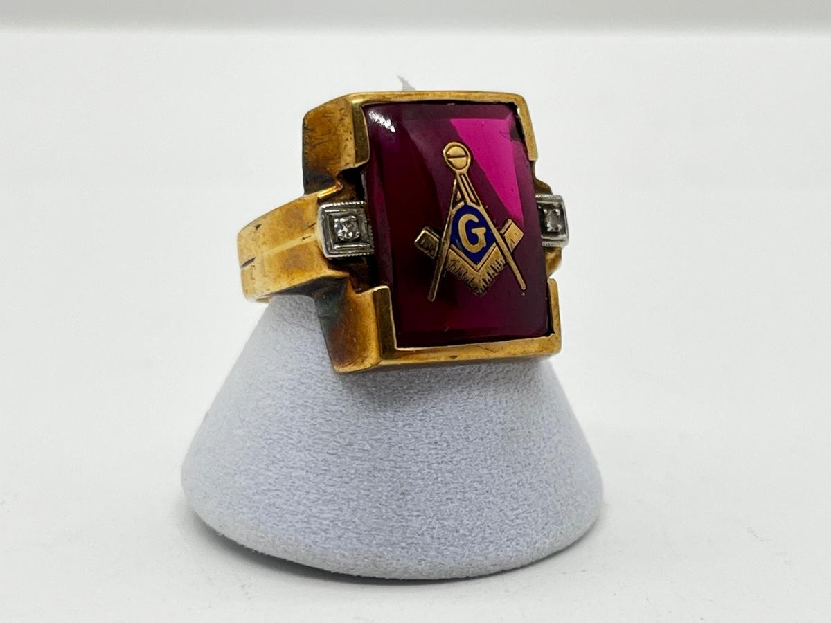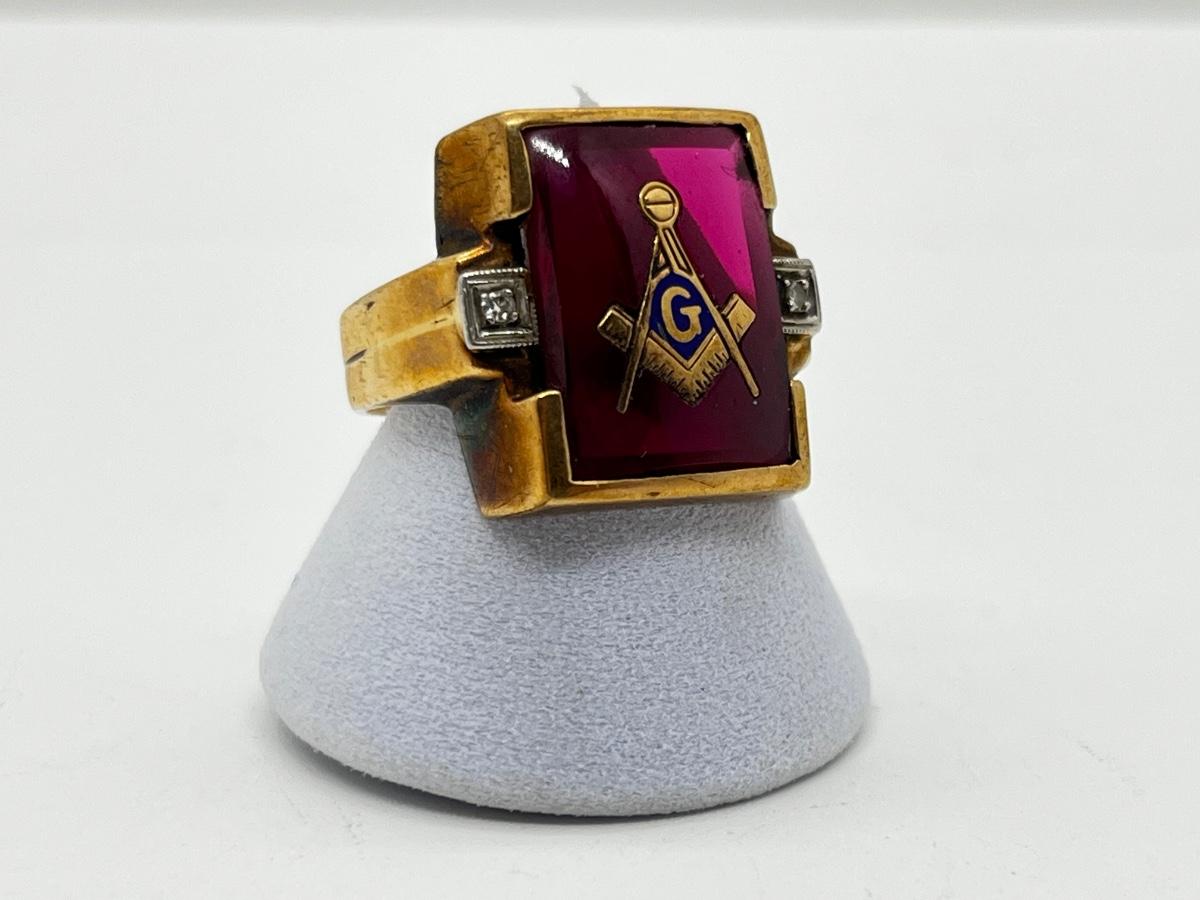 LOT 91: 10K Yellow Gold Masonic Ring - Size 8 -6.19 GTW