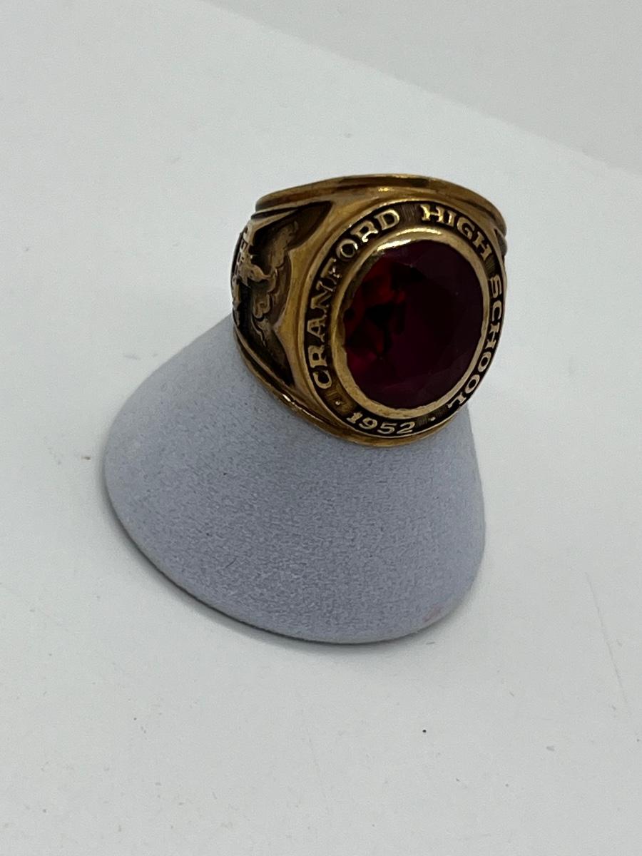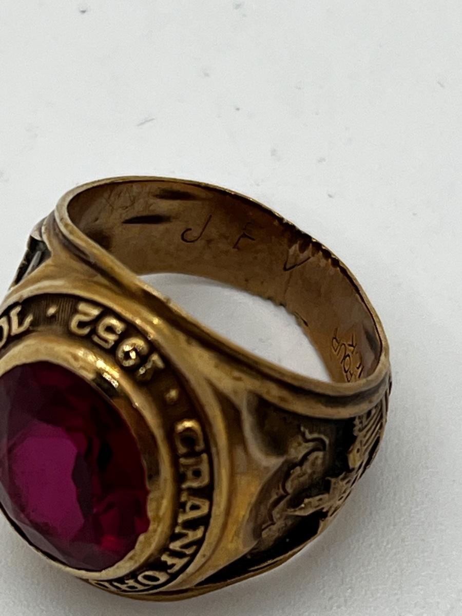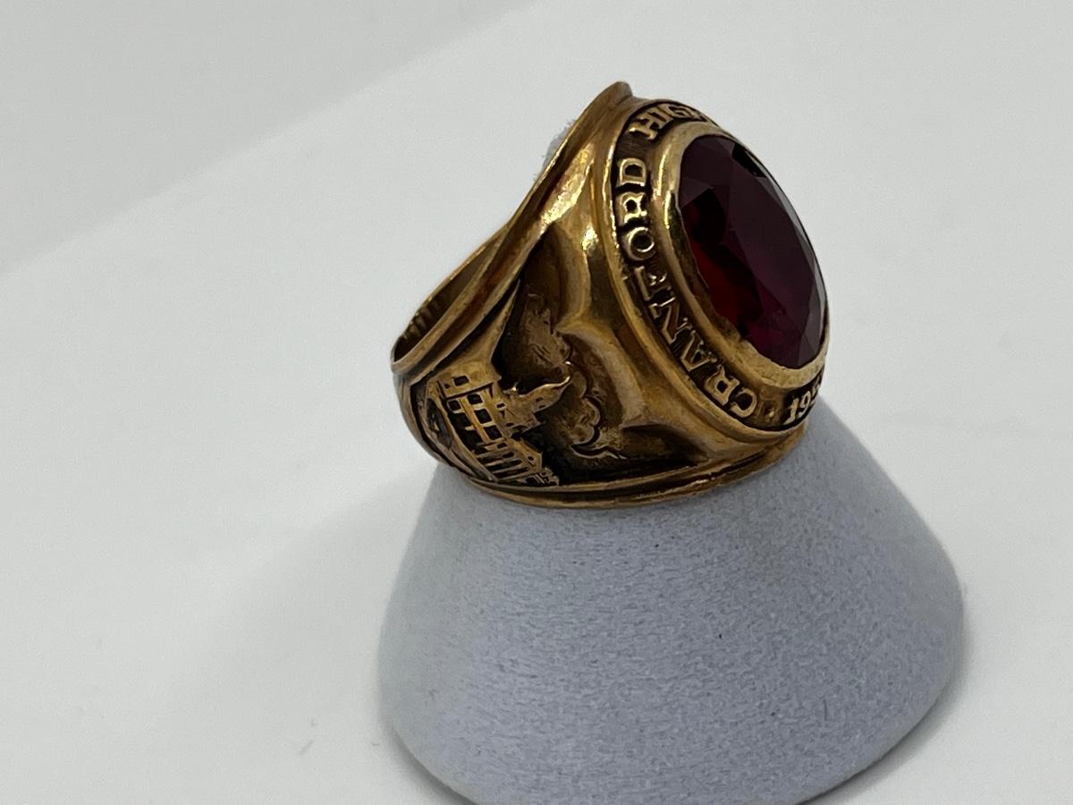 LOT 92: 1952 Balfour 10K Yellow Gold and Ruby Class Ring - Size 5 - 8.64 GTW