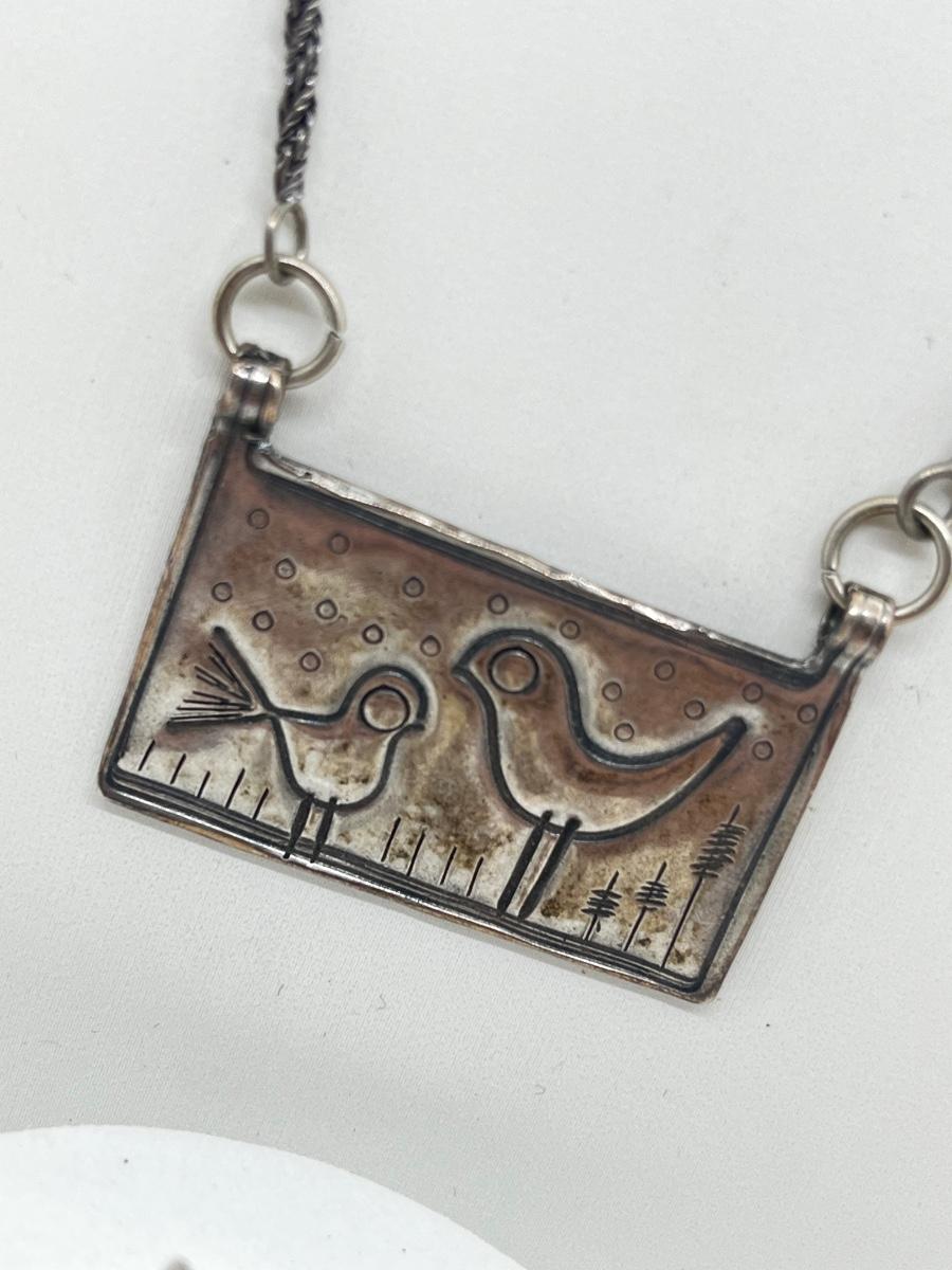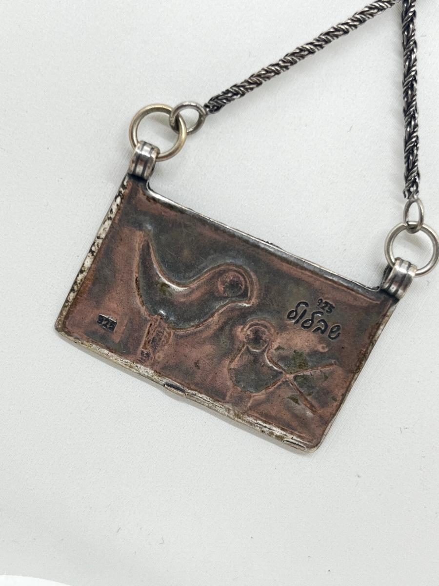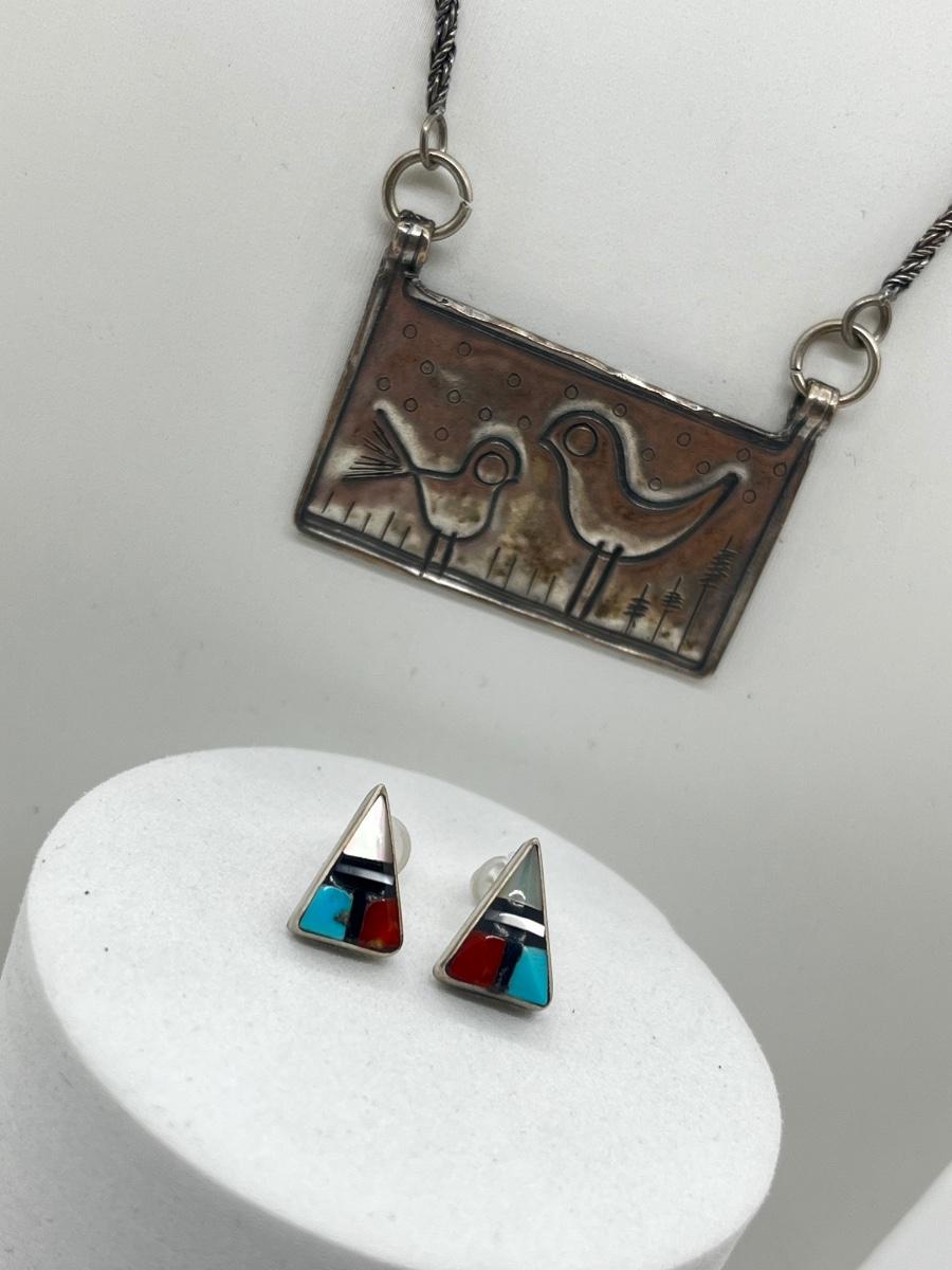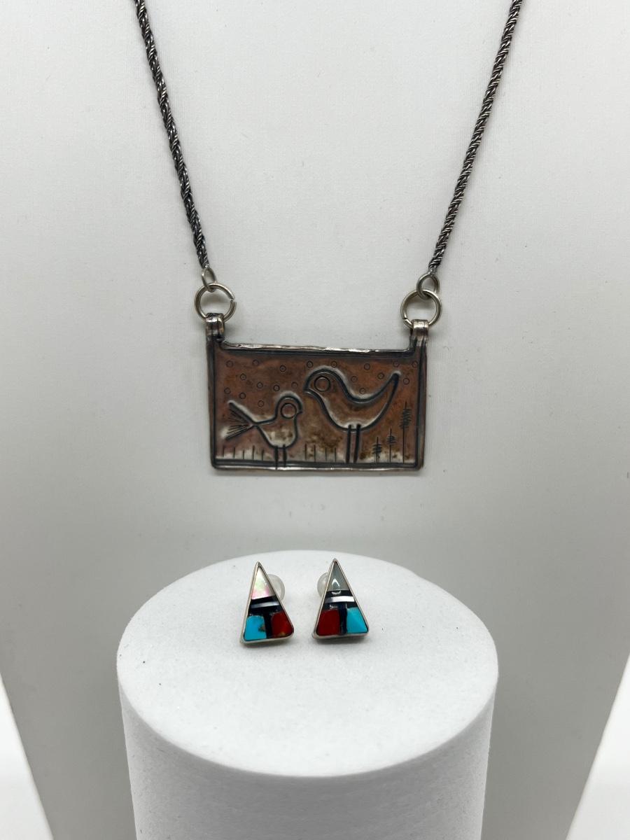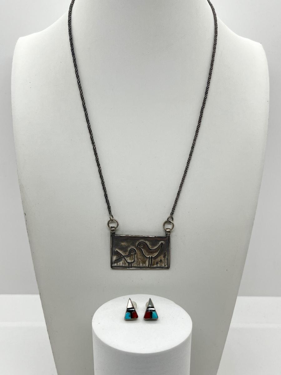 LOT 100: 925 Pendant Necklace and Silver Inlay Pierced Earrings - 11.2 GTW