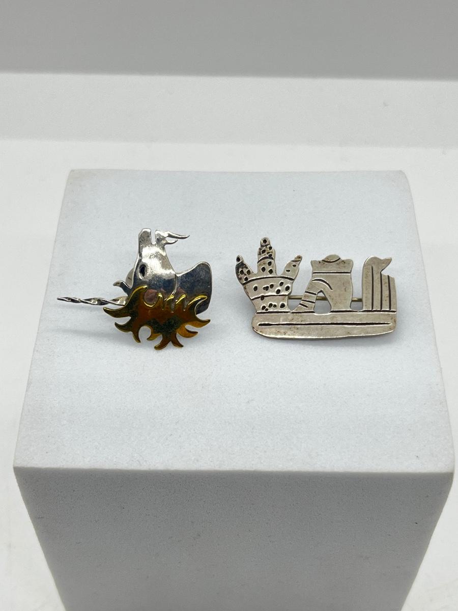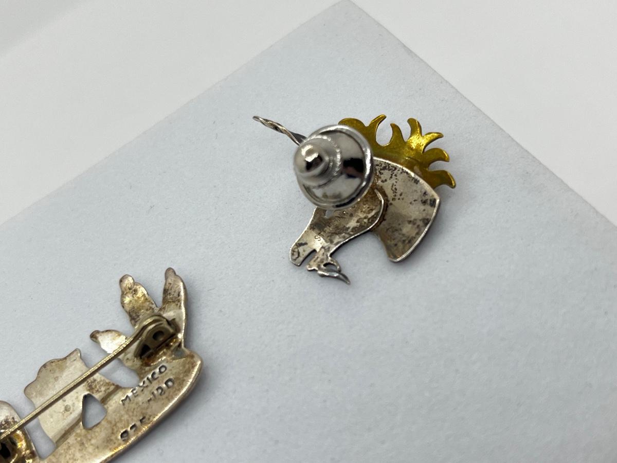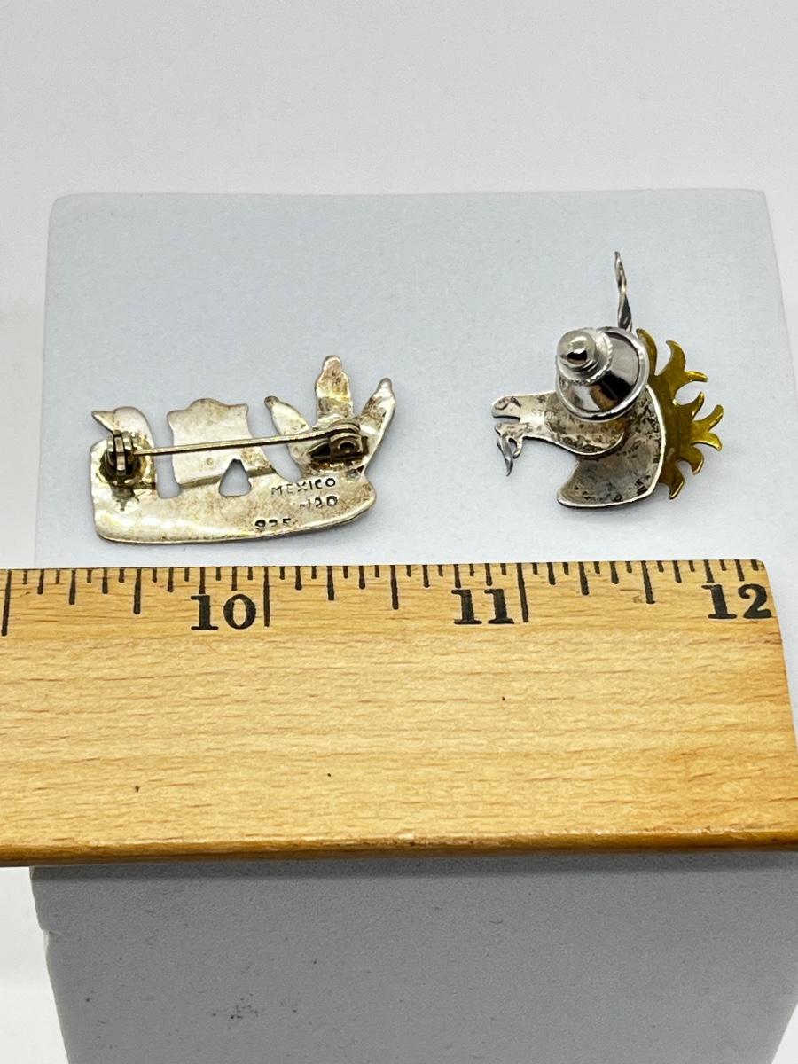 LOT 111: 925 Taxco Mexican Cactus Siesta Brooch and Sterling Two Tone Unicorn Pin