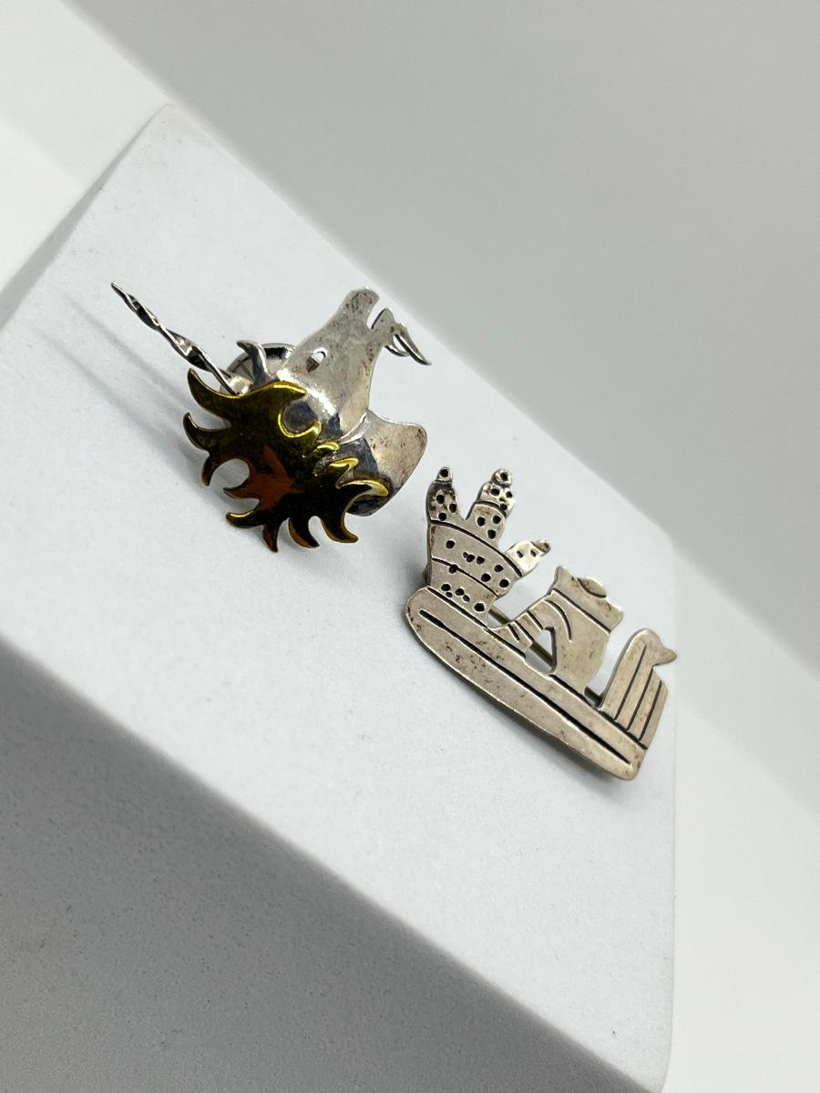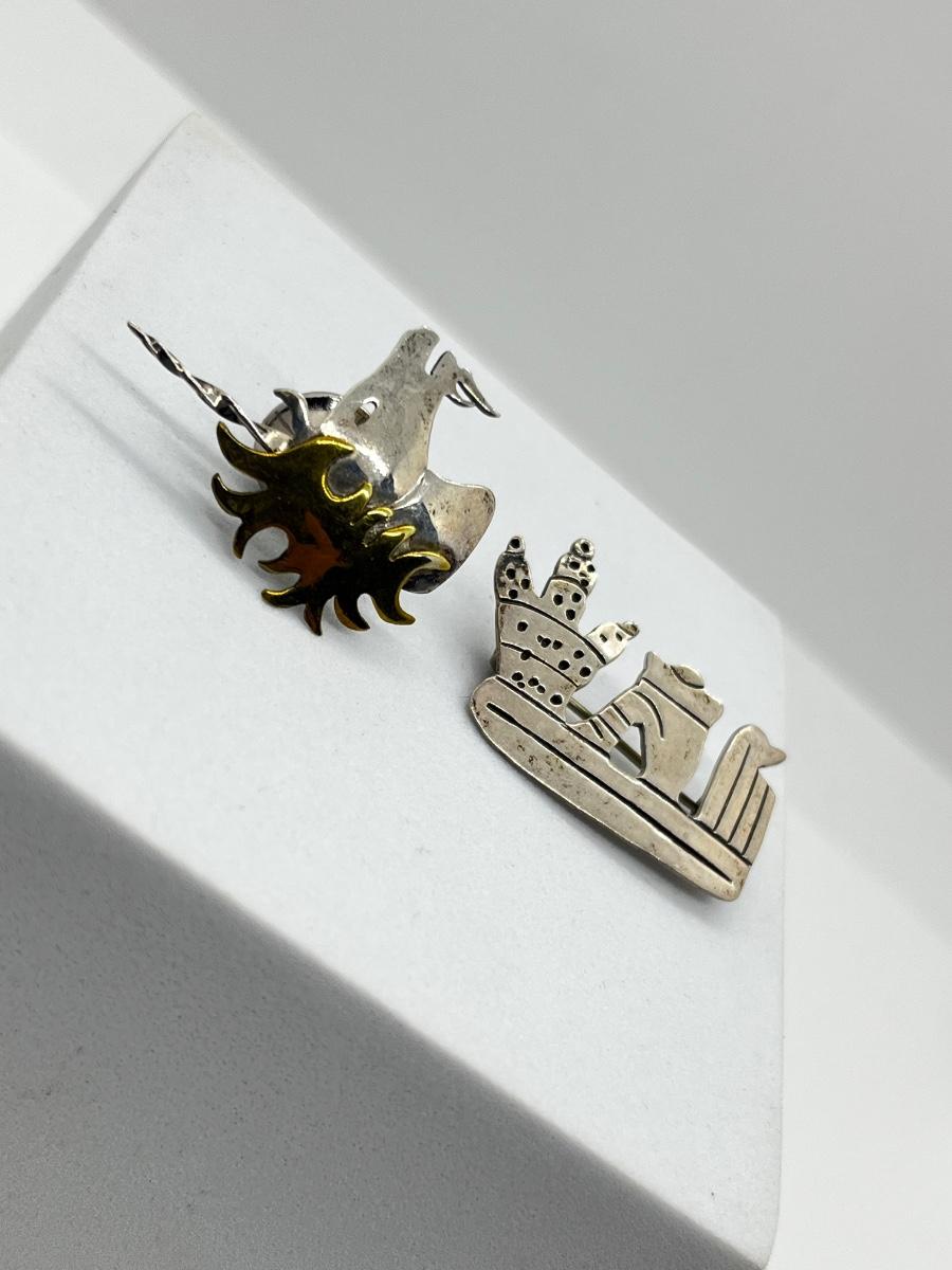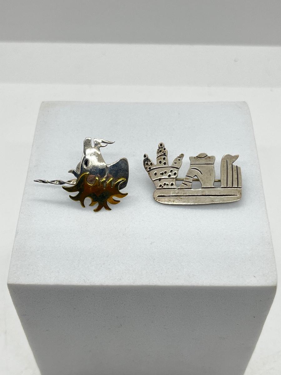 LOT 111: 925 Taxco Mexican Cactus Siesta Brooch and Sterling Two Tone Unicorn Pin