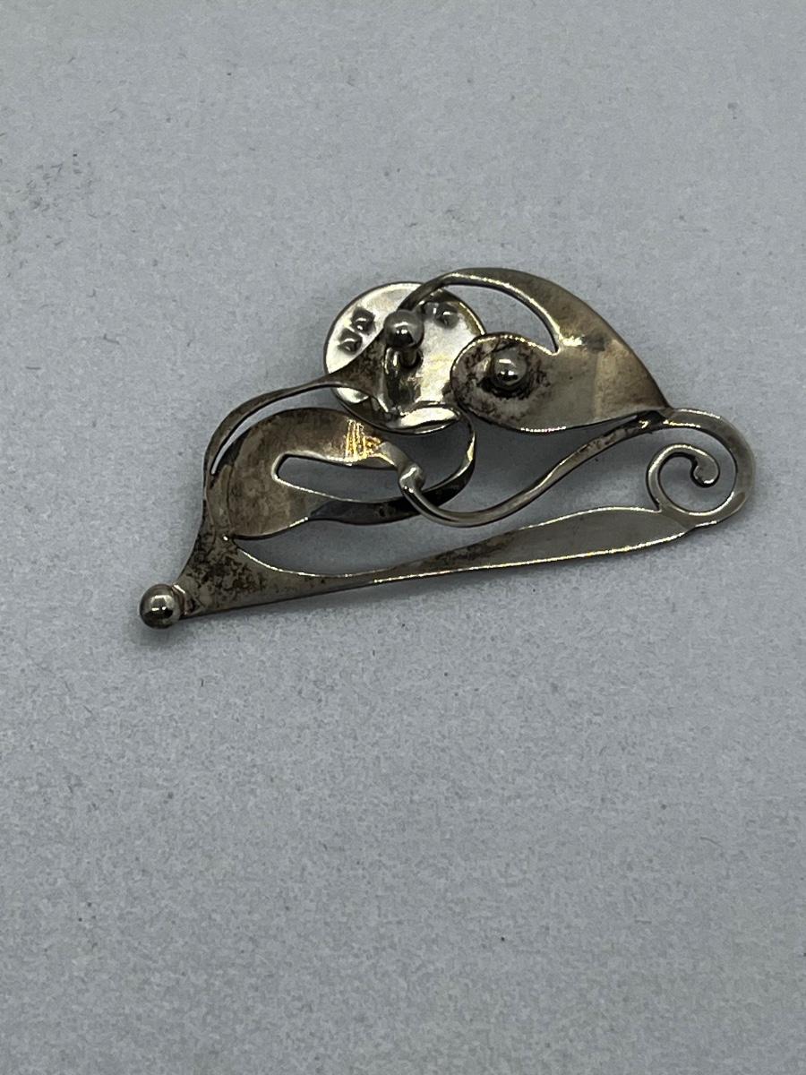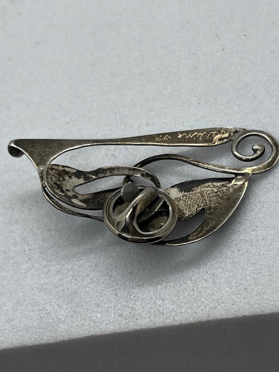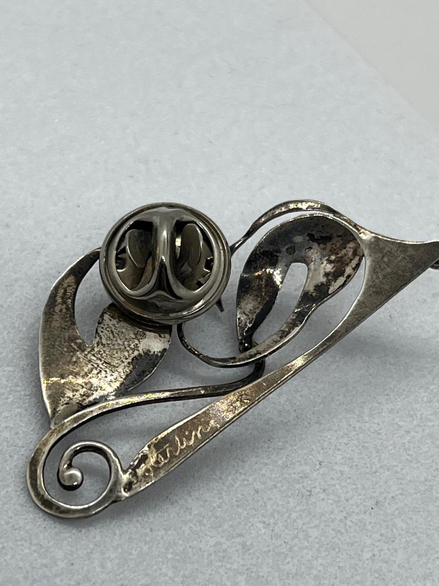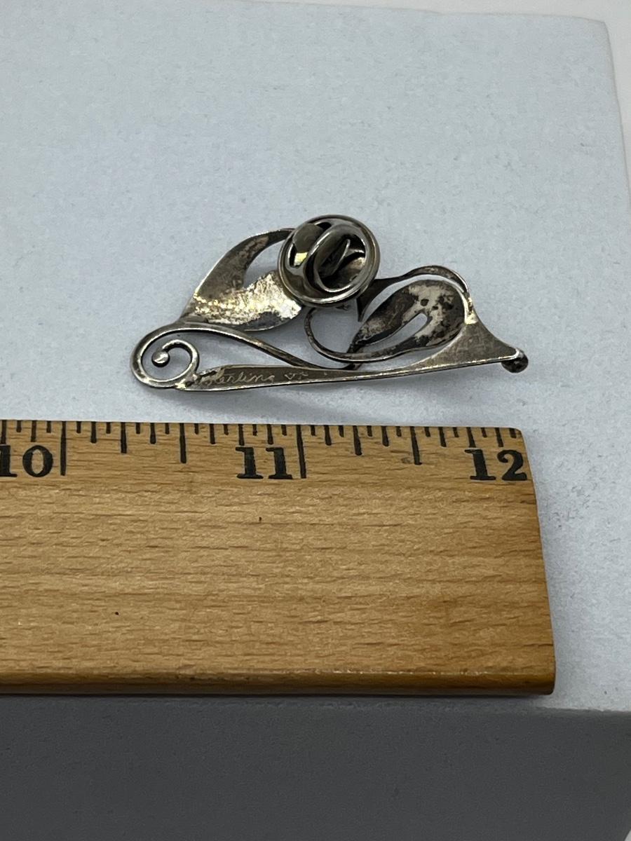 LOT 113: Vintage Sterling Handmade Abstract Modernist Pin Signed "JR"
