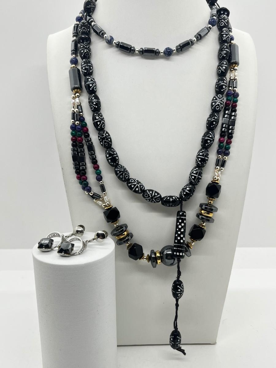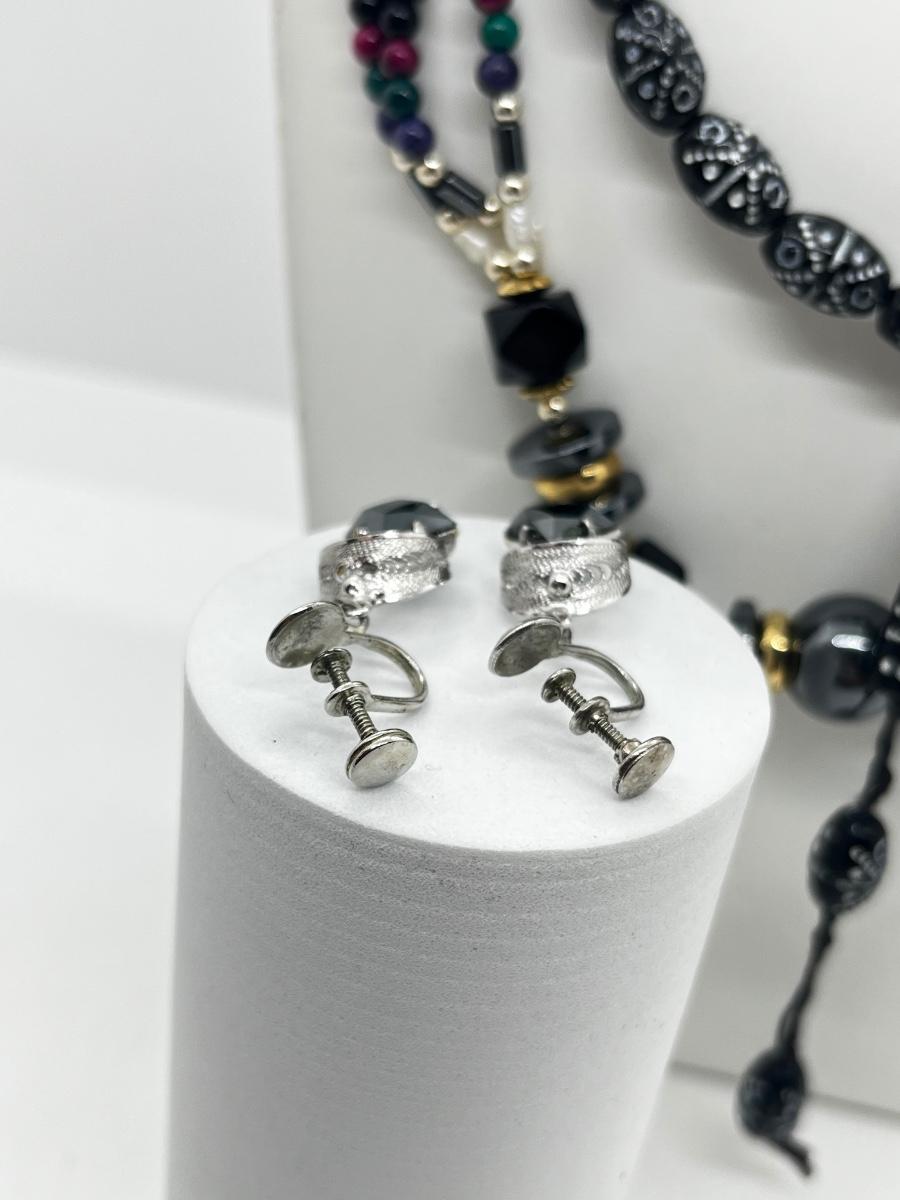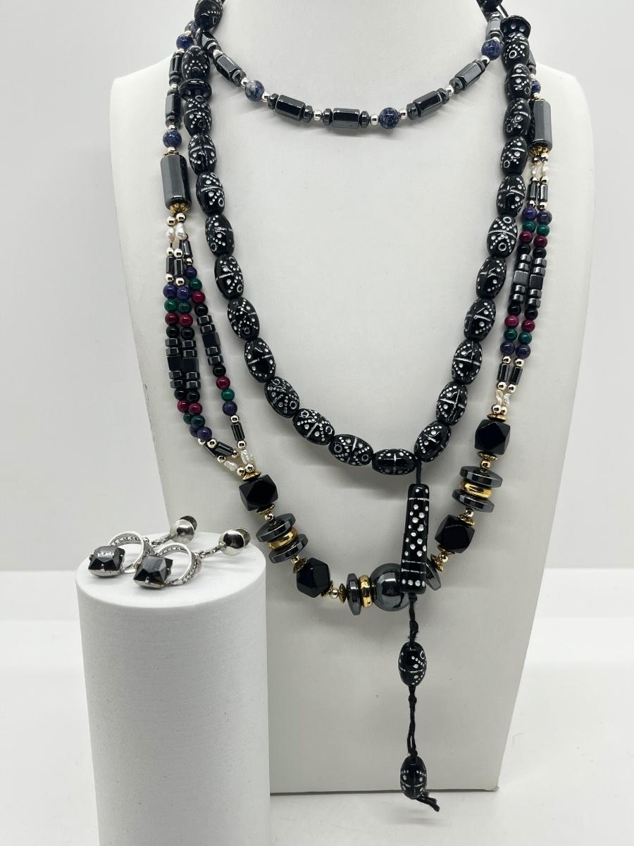 LOT 117: Black Tone Necklaces and Pierced Earrings
