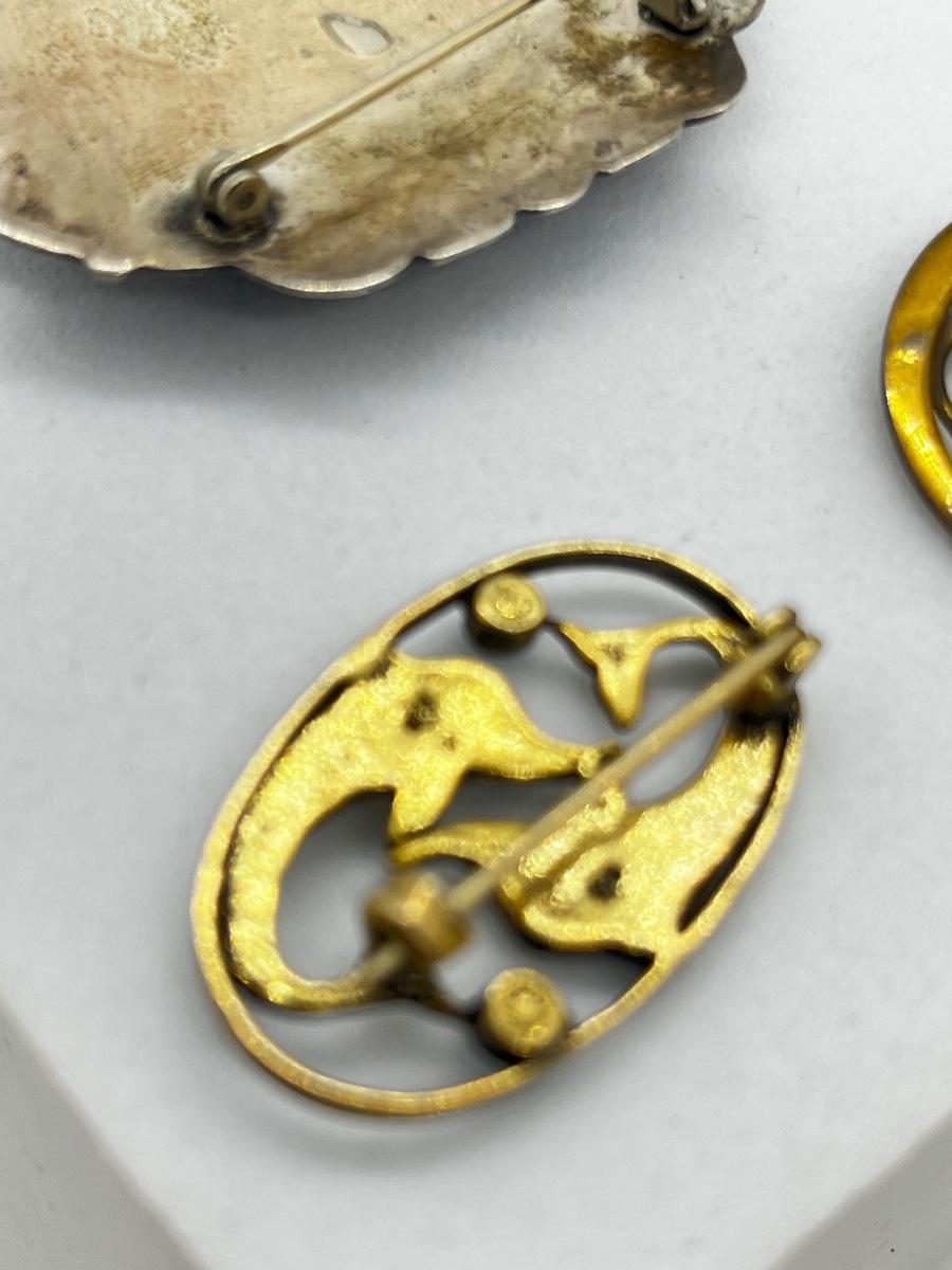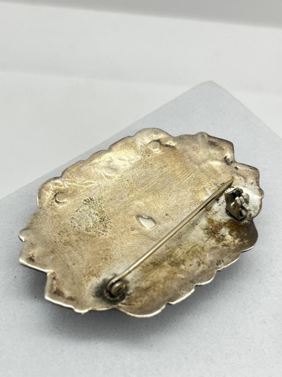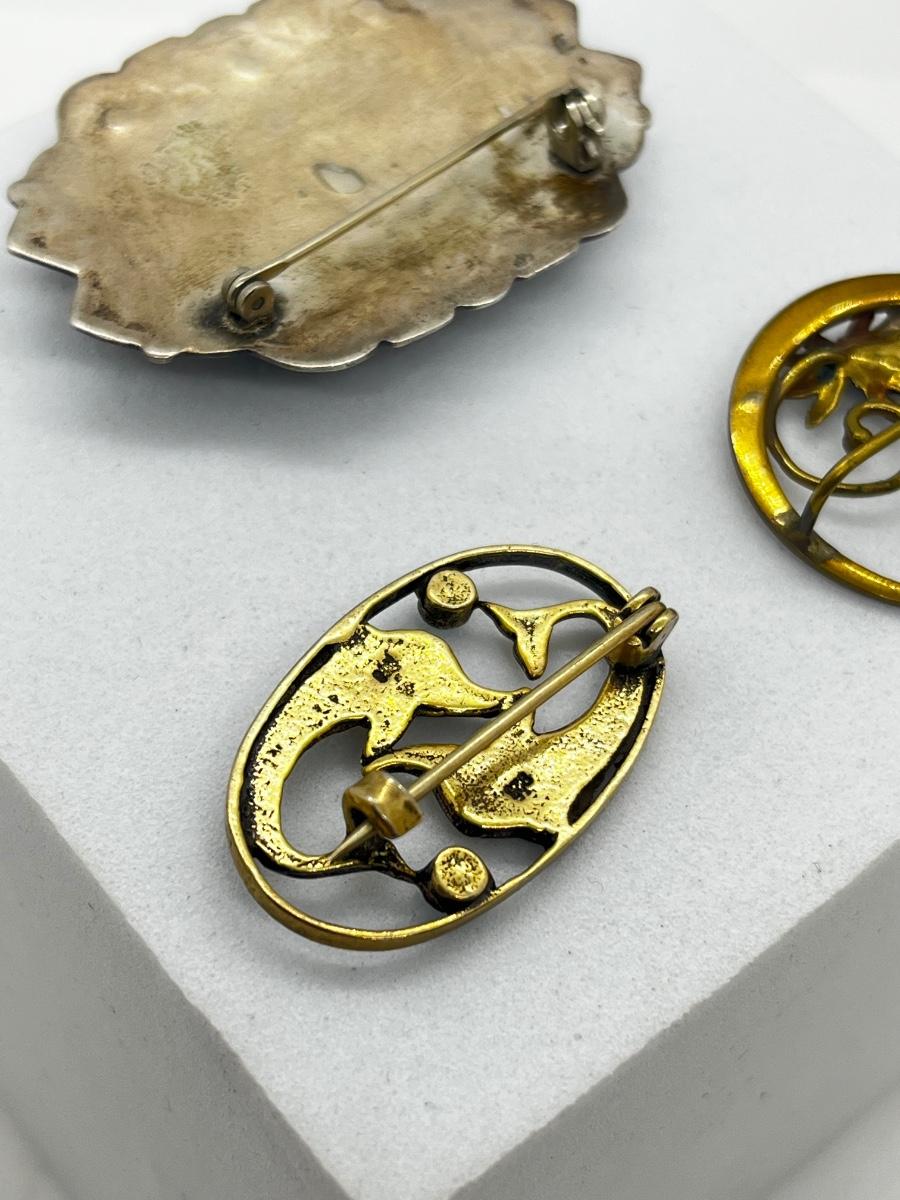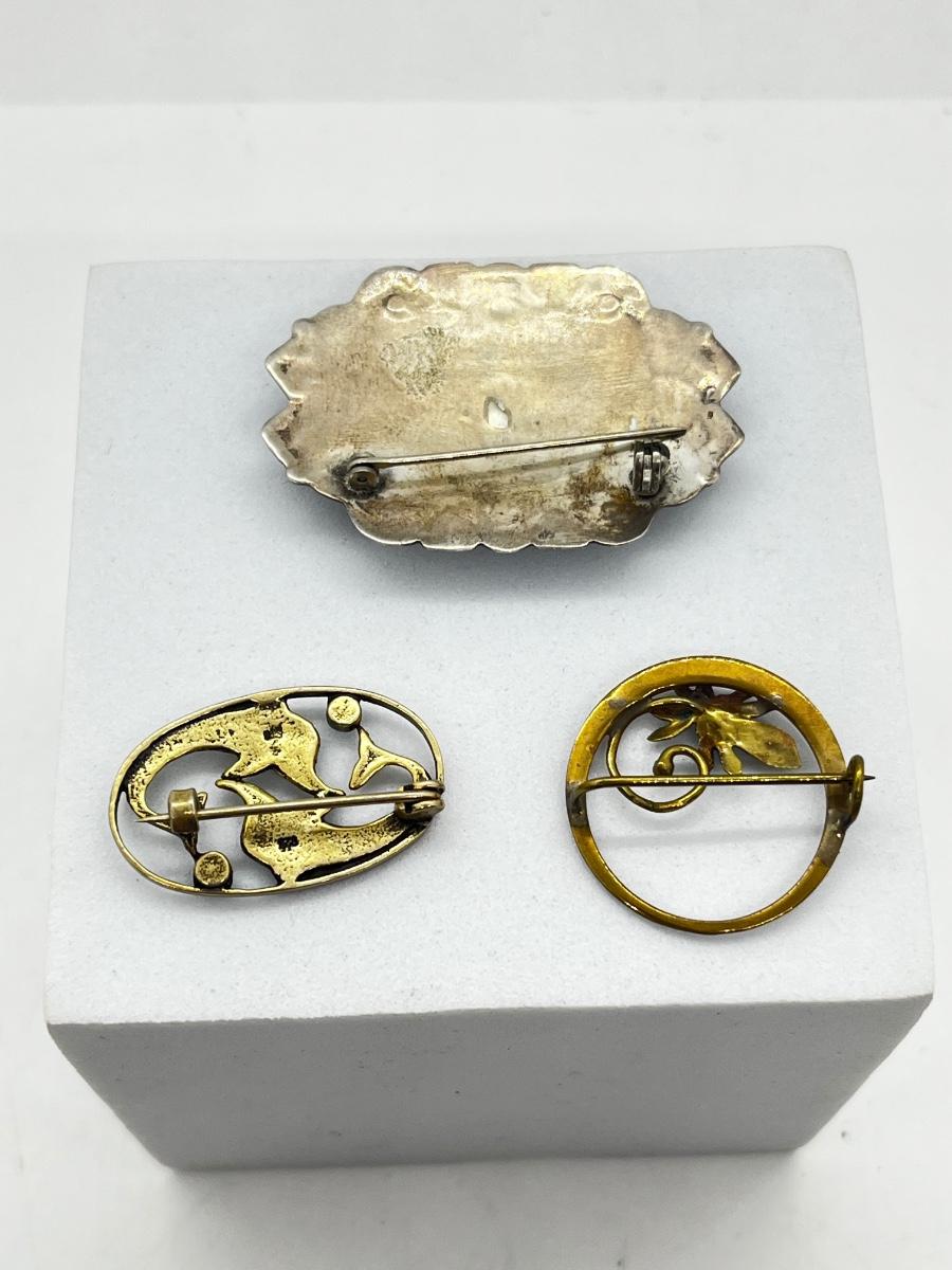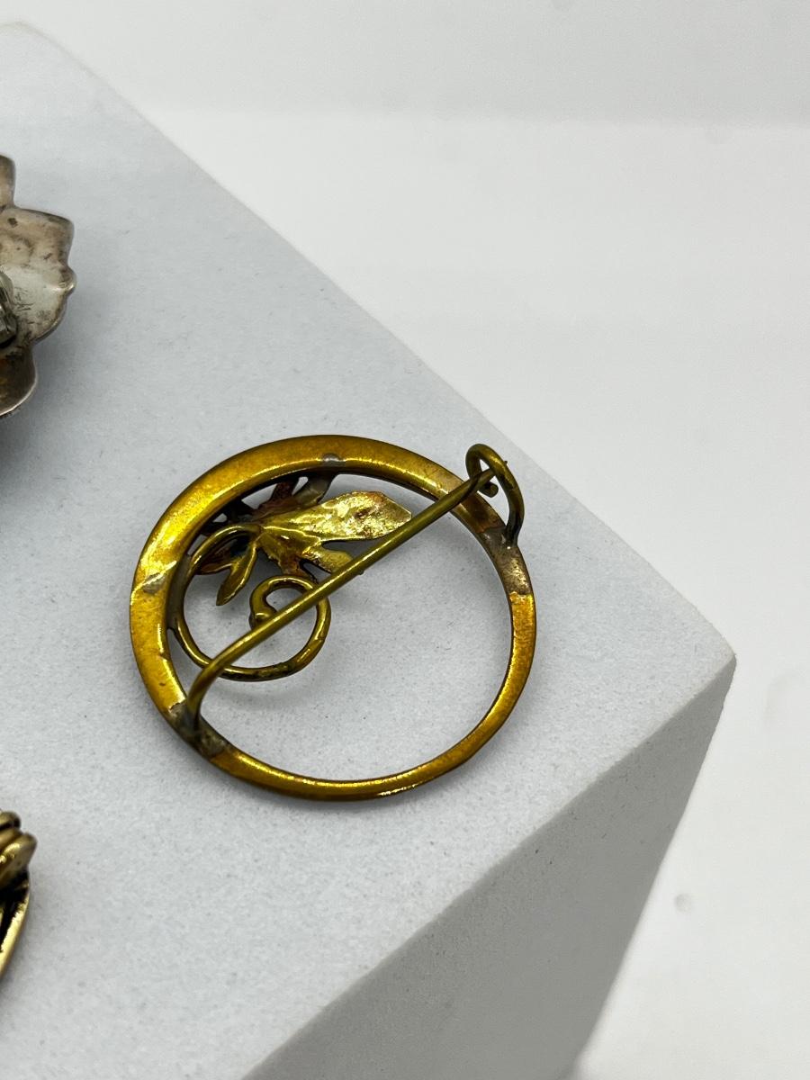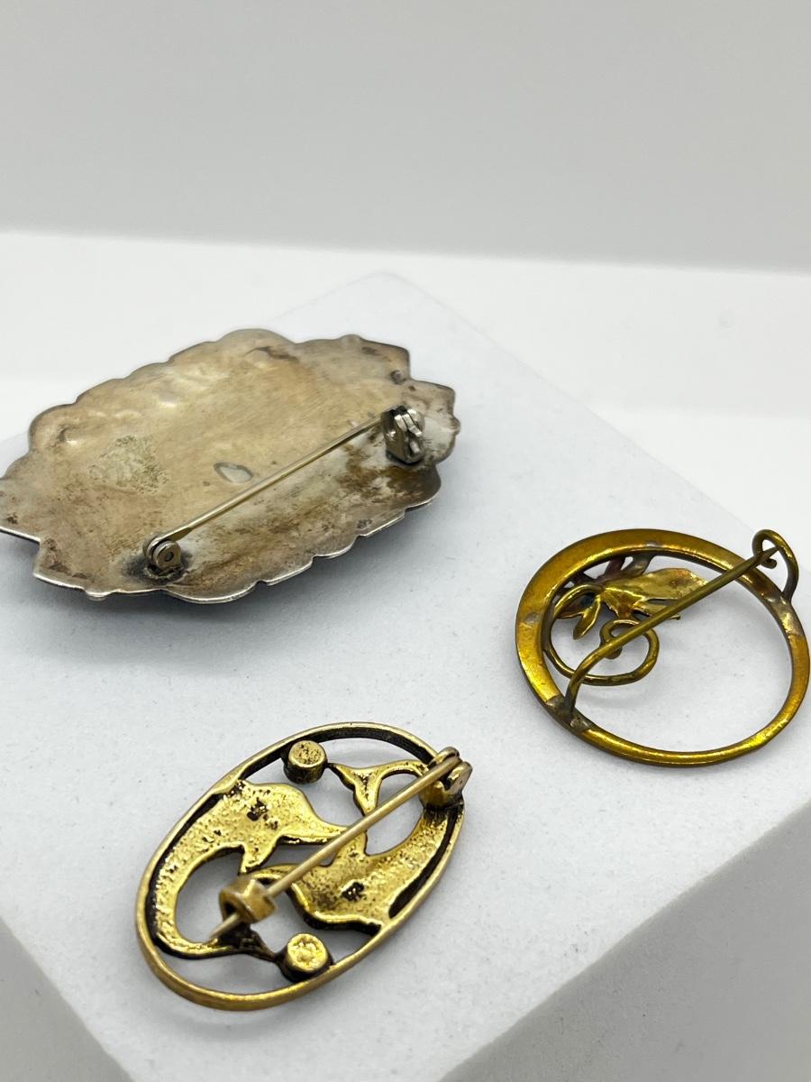 LOT 118: Vintage Silverplate and Blue Brooch Plus Two Antique Brass Pins