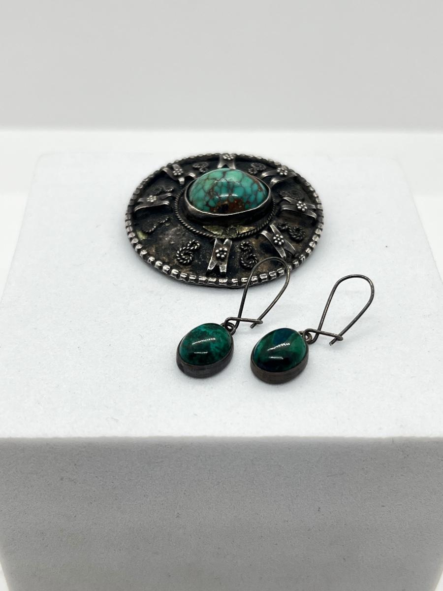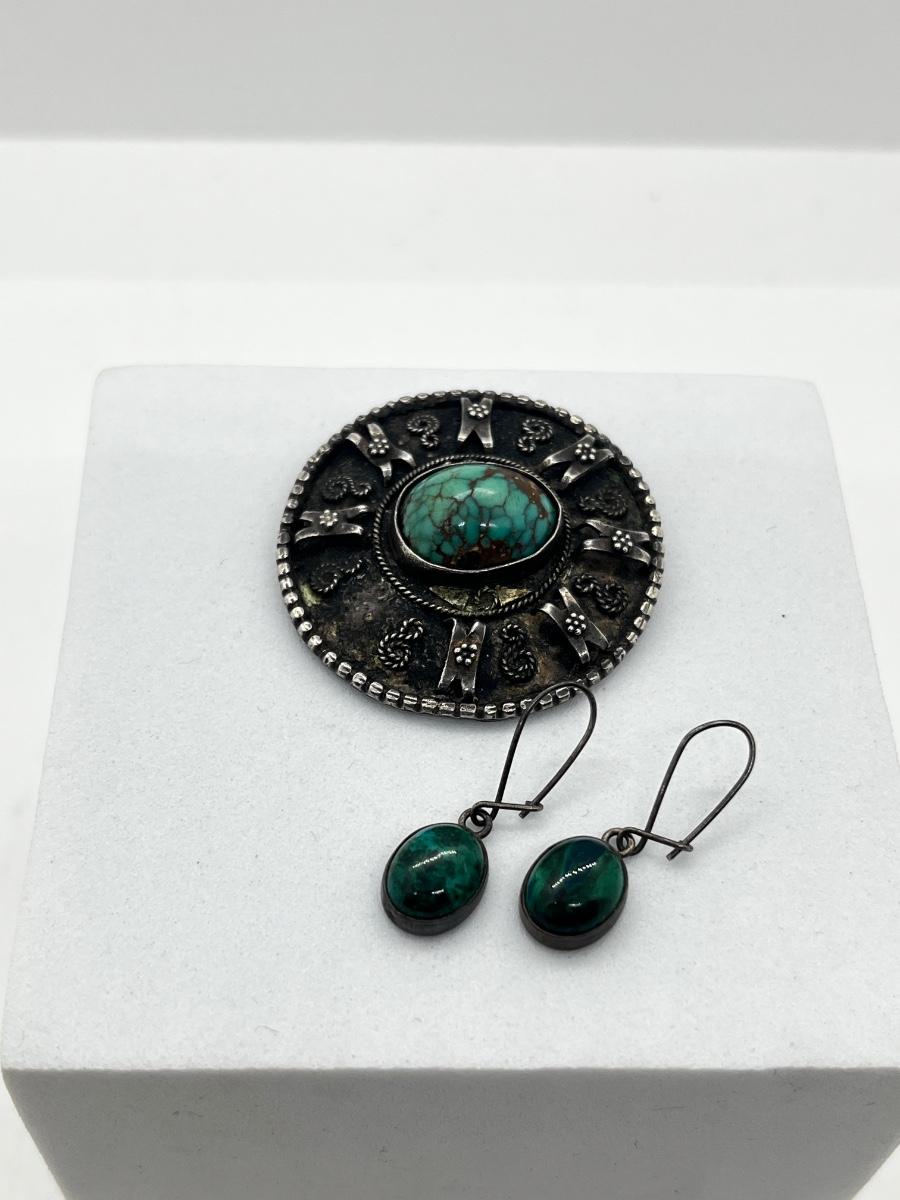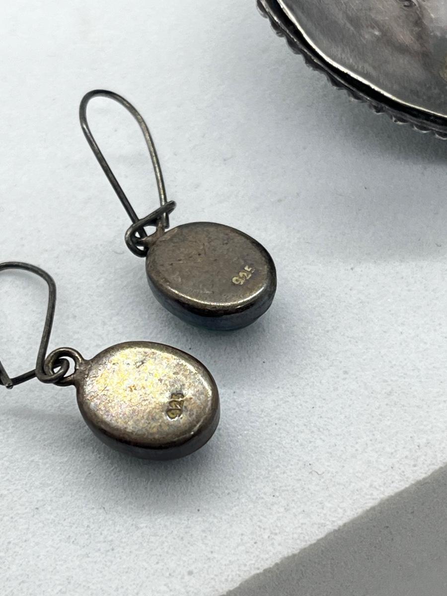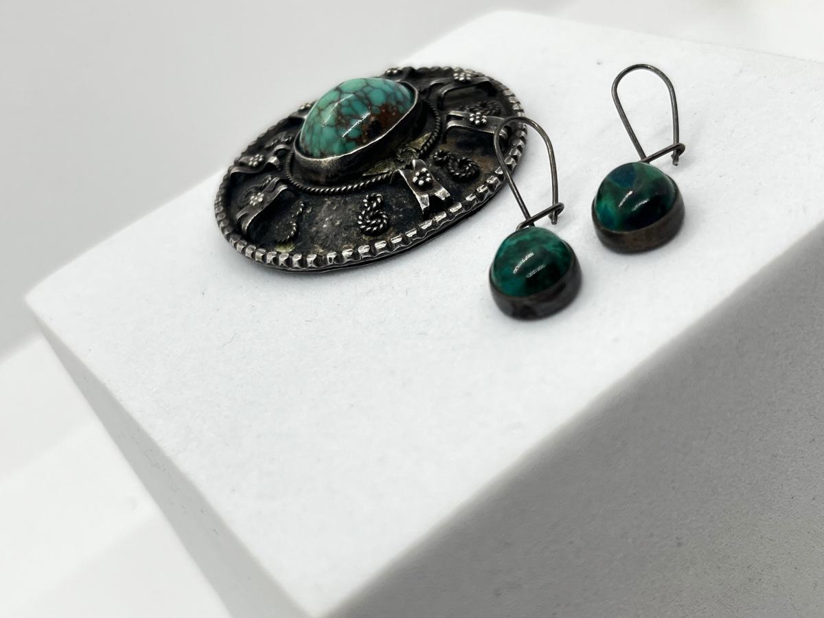 LOT 120: Vintage 935 Sterling Brooch/Pin Made in Palestine and 925 Silver and Marcasite Earrings