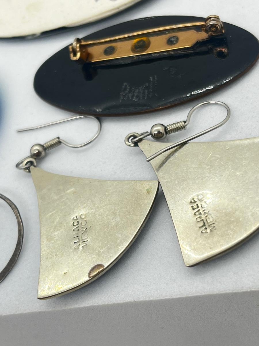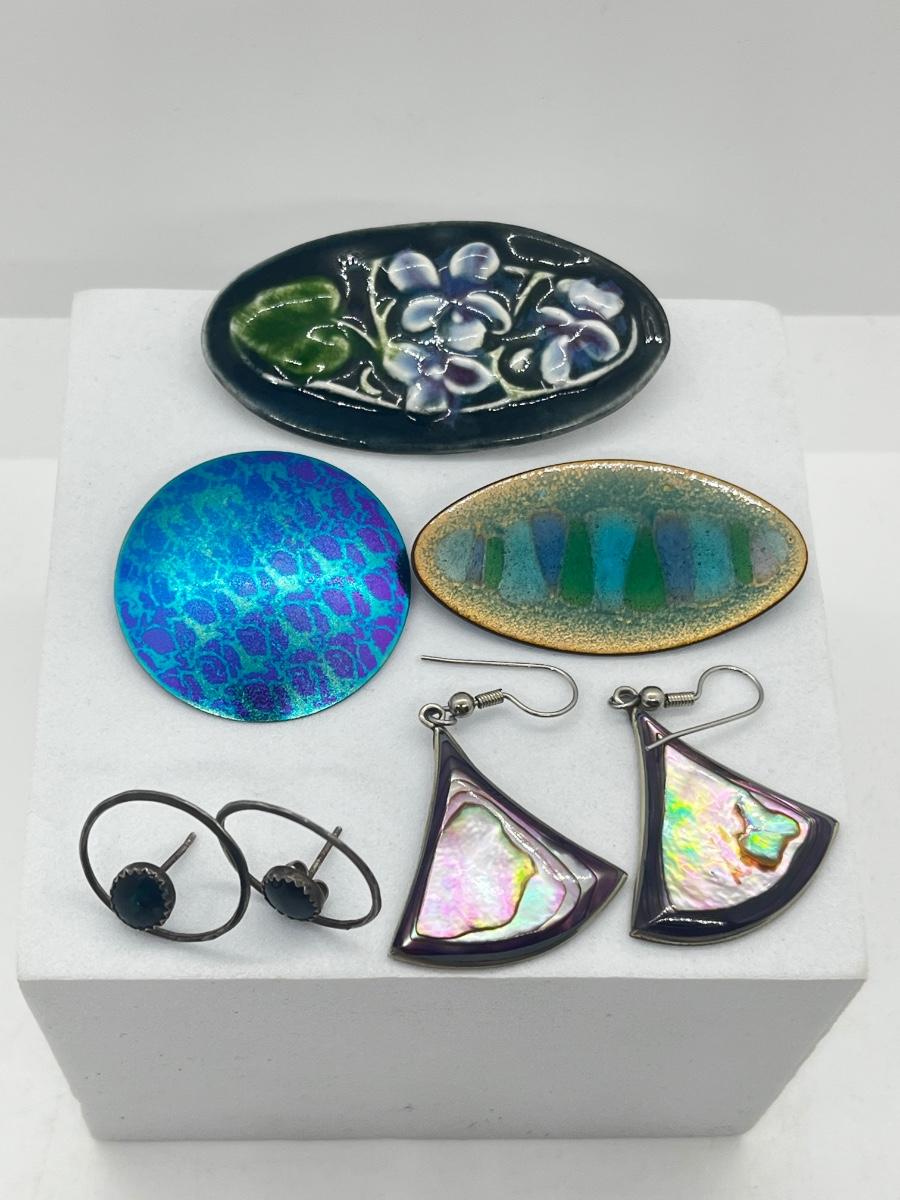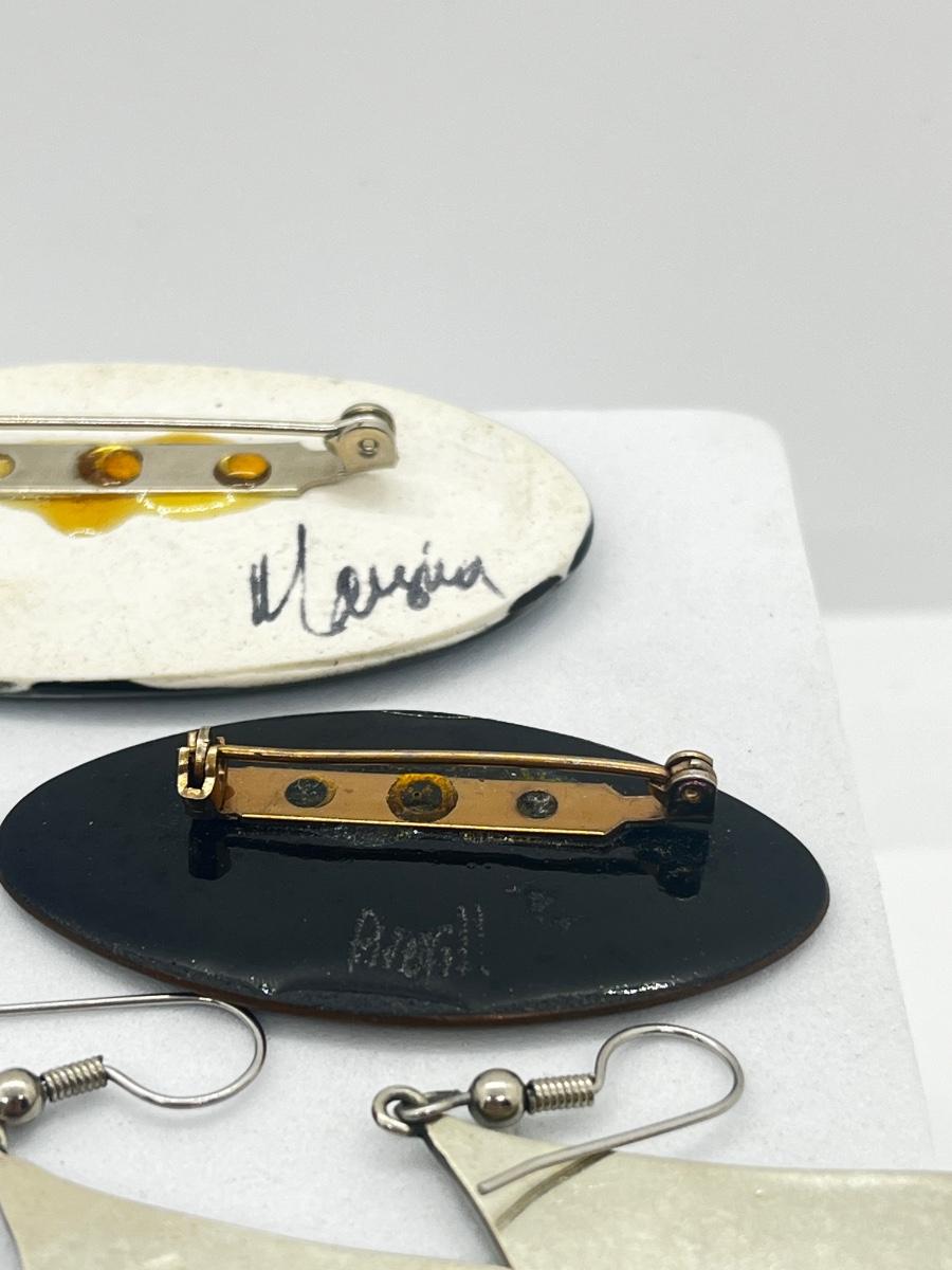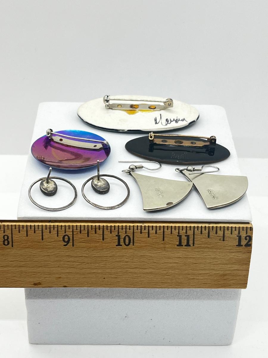 LOT 122: Three Artisan Signed Brooches and Two Pairs Pierced Earrings