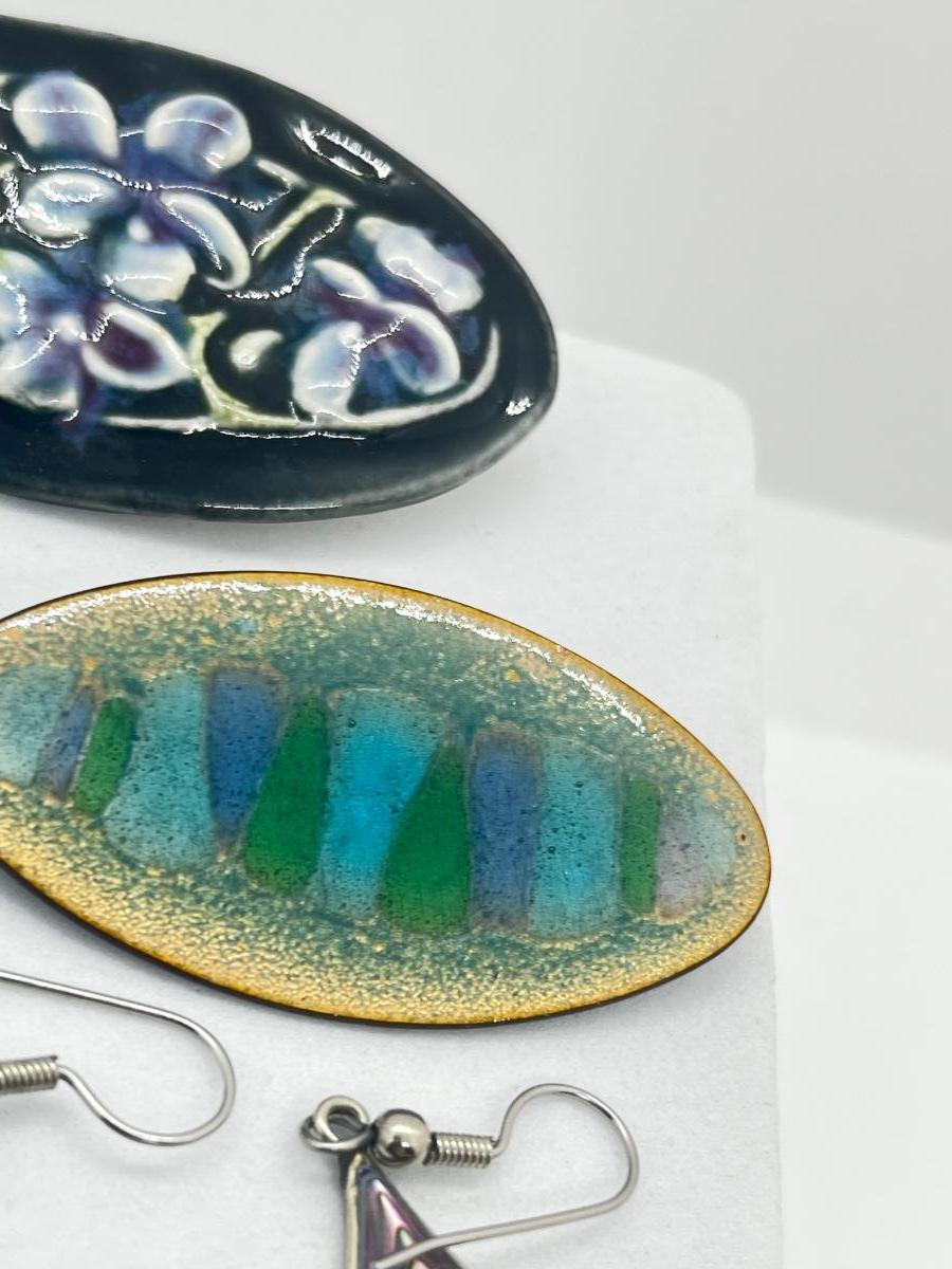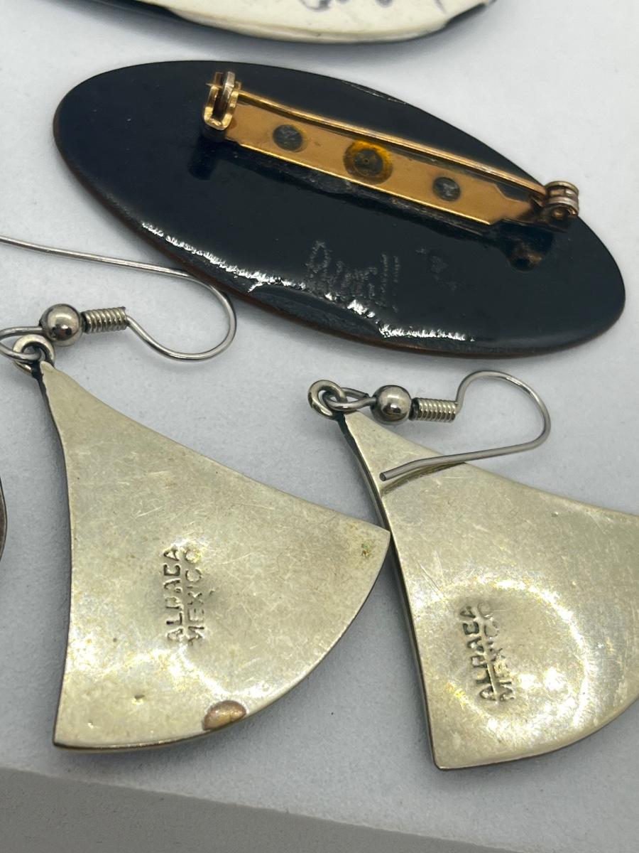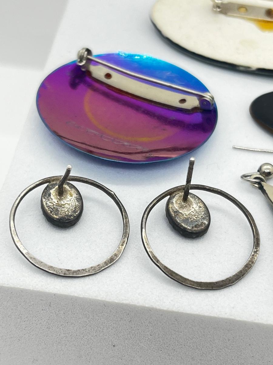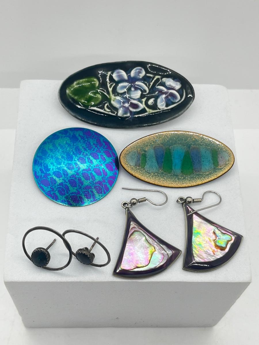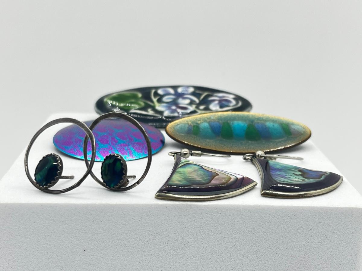 LOT 122: Three Artisan Signed Brooches and Two Pairs Pierced Earrings