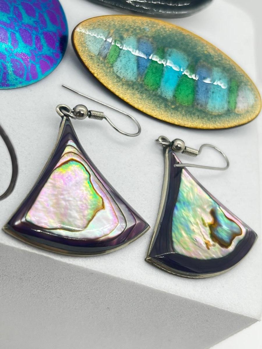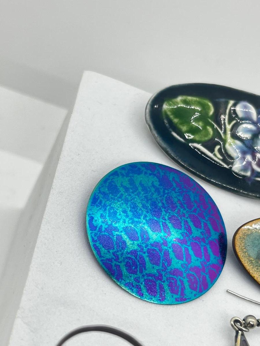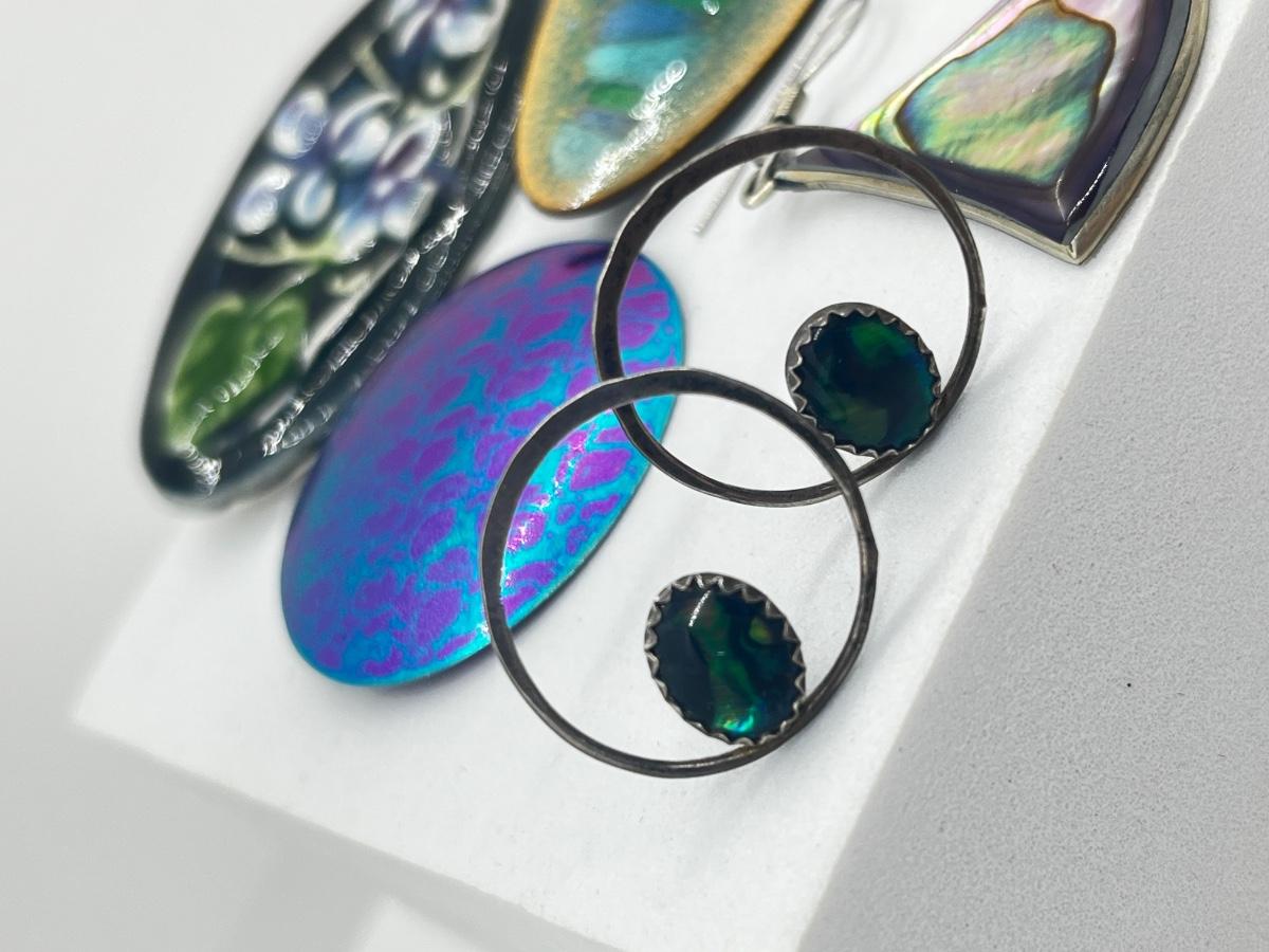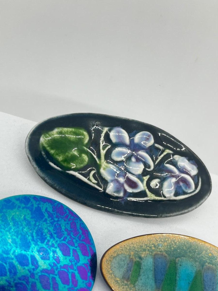 LOT 122: Three Artisan Signed Brooches and Two Pairs Pierced Earrings