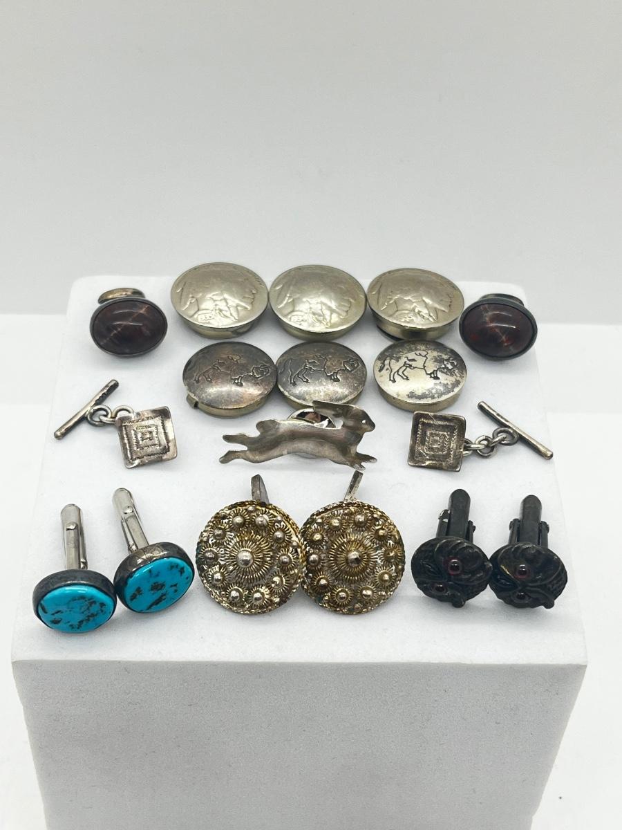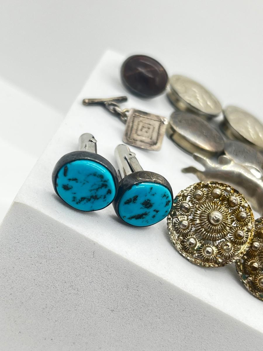 LOT 123: Vintage Silver Button Covers, Silver Cufflinks and More!