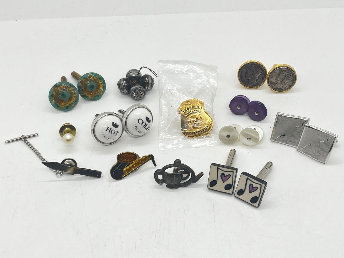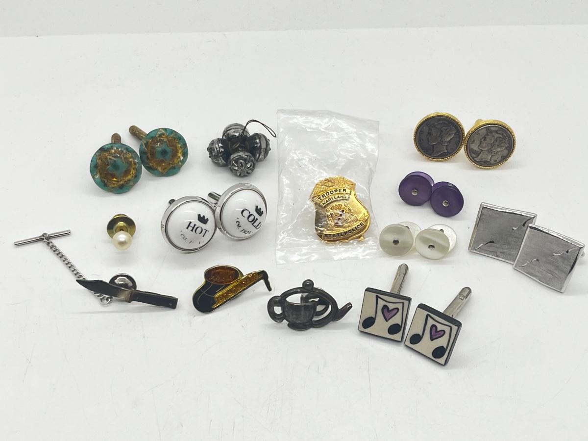 LOT 125: Artisan Cufflinks and Tie Pins Including Swank, Fun "Hot/Cold" Set and More!