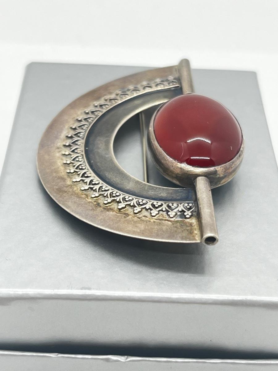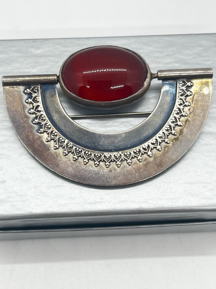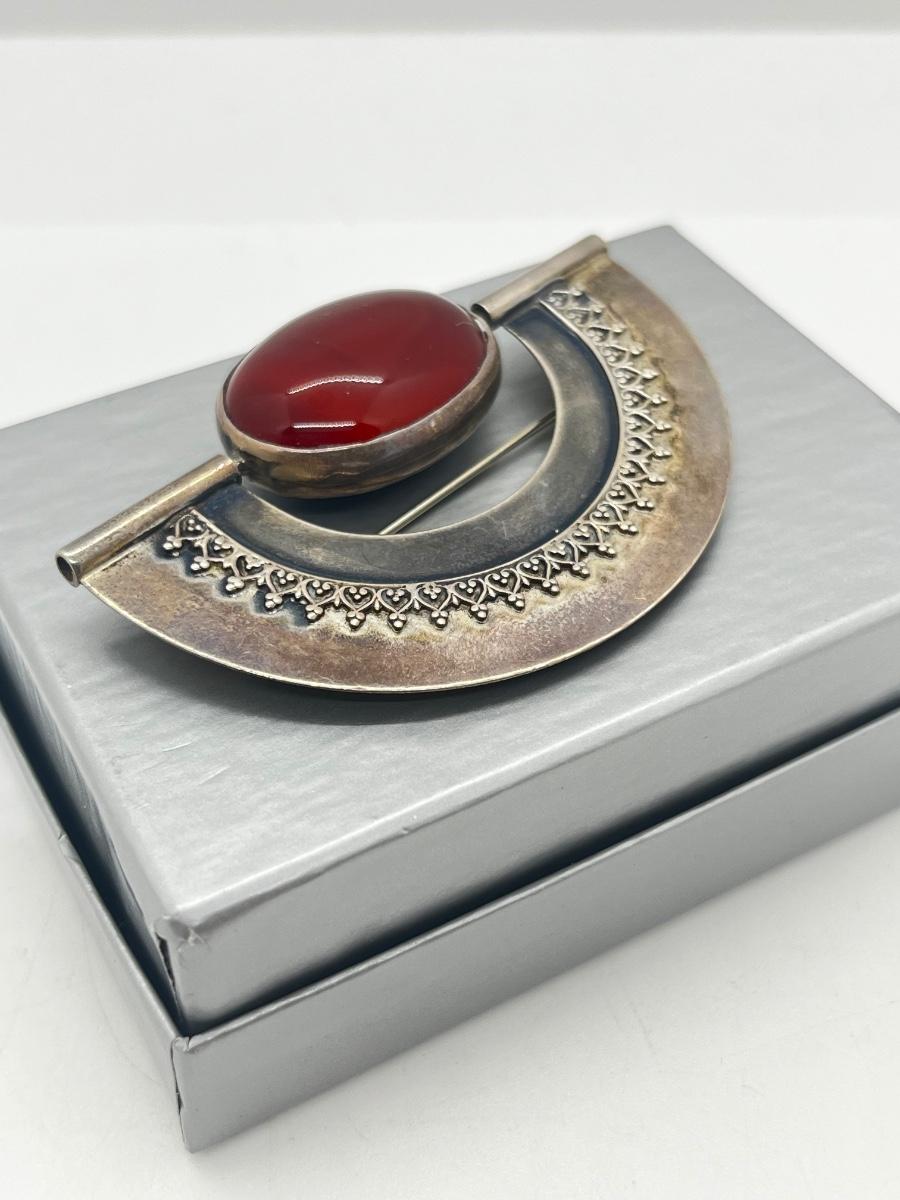 LOT 130: Spectacular 925 Carnelian and Hematite Reversible Brooch/Pin