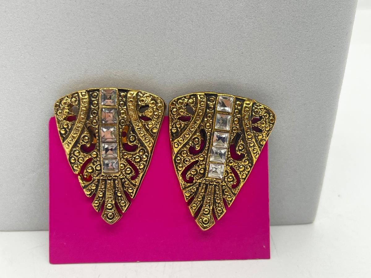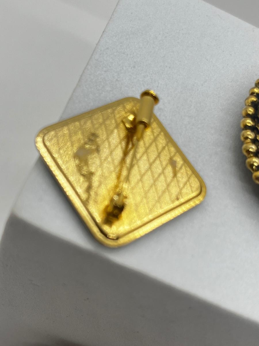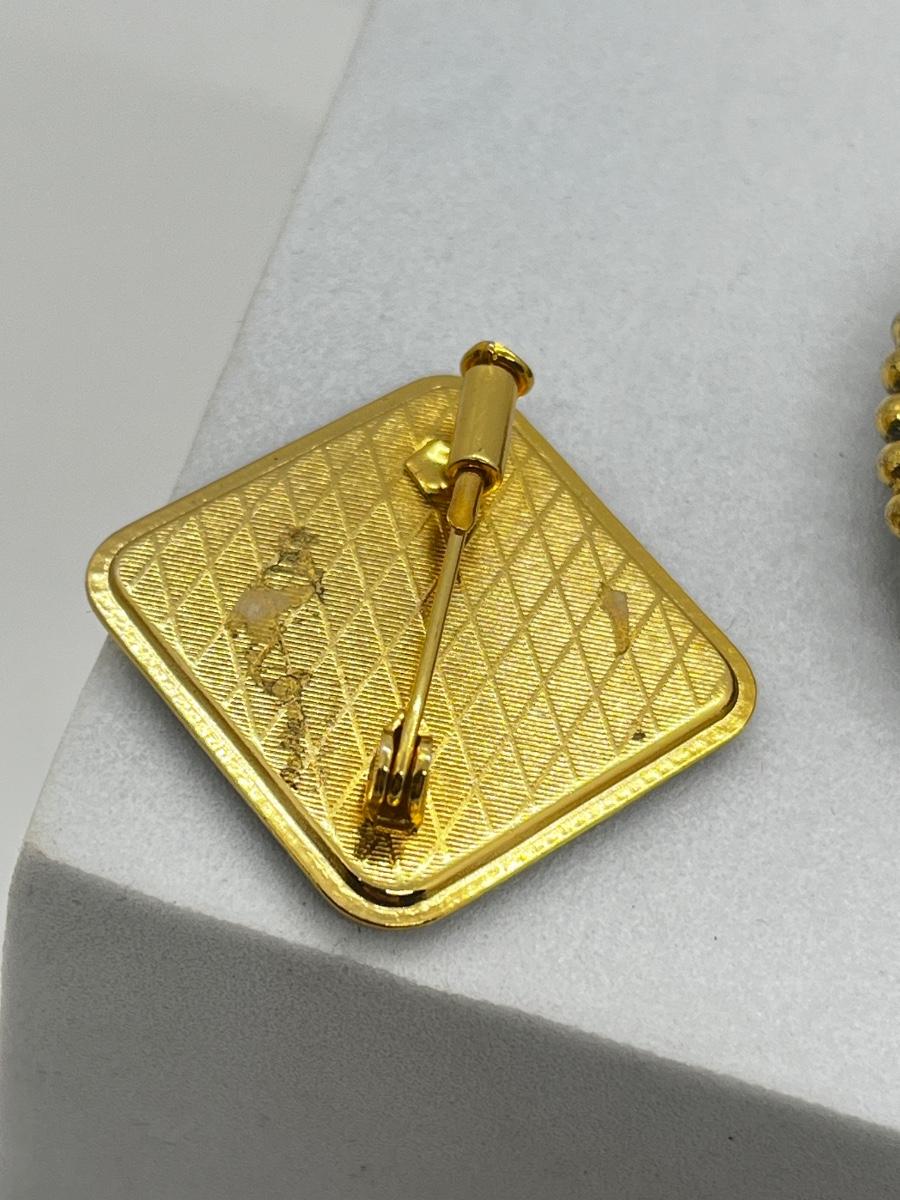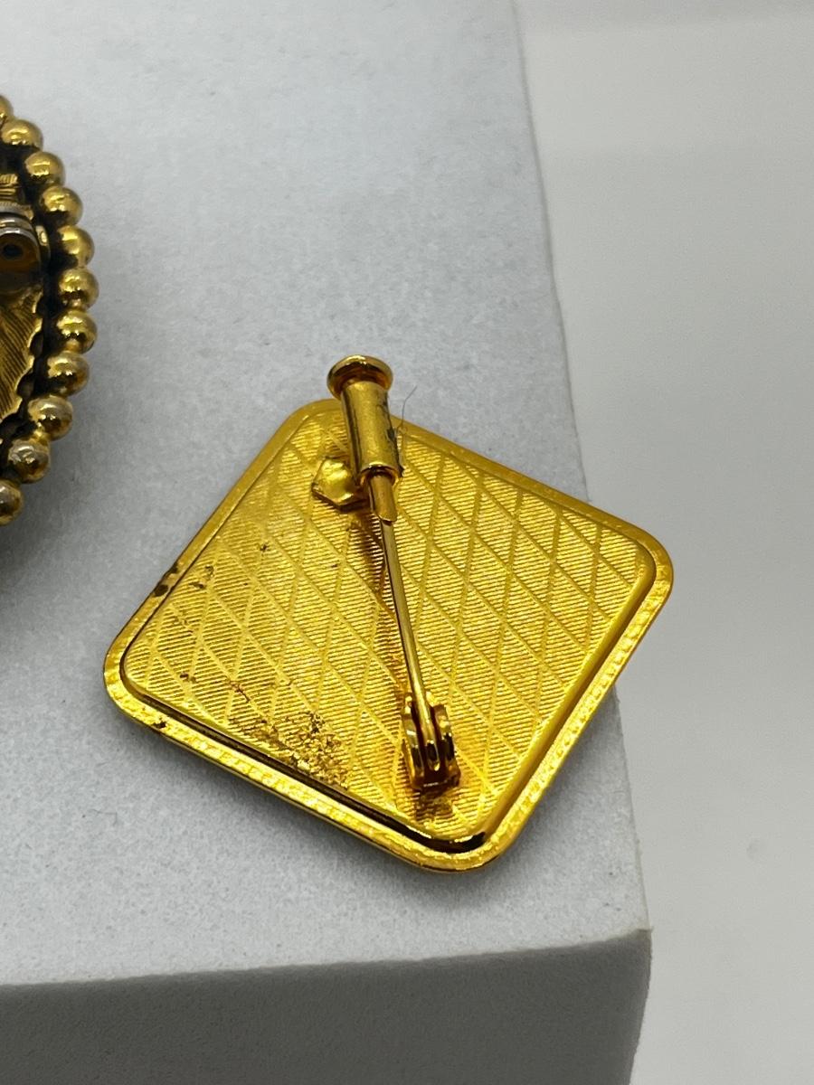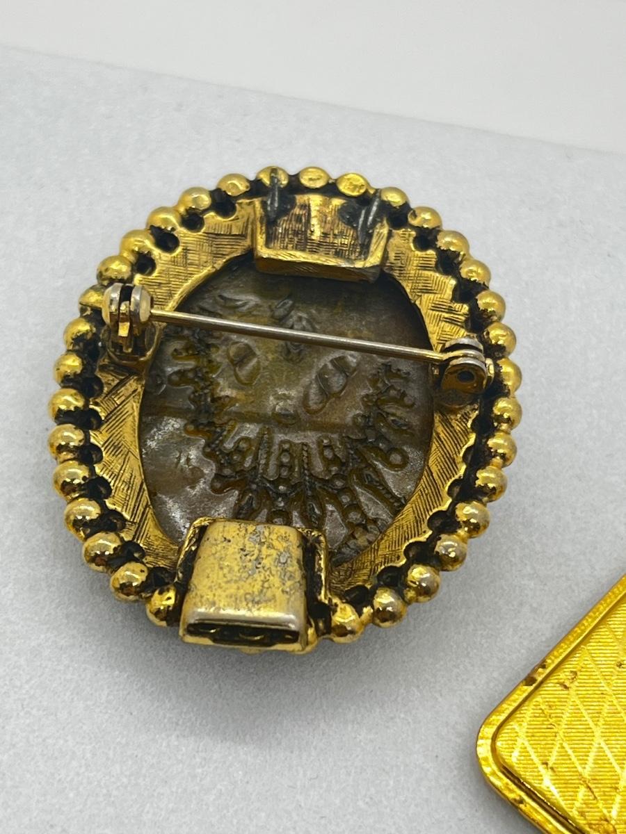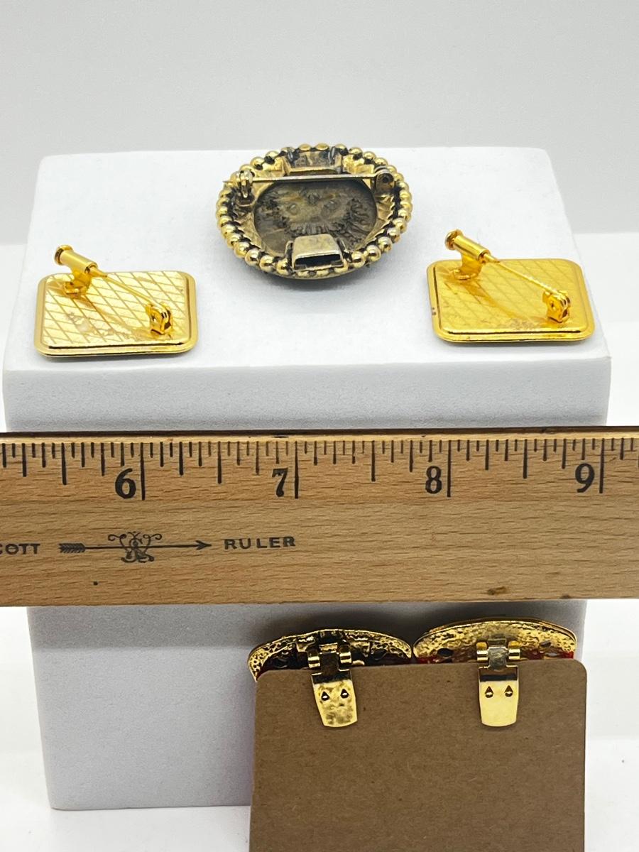 LOT 131: Two Damascene Square Brooches/Pins With Trombone Clasps, Cameo Brooch/Pin, and "Blue He" Shoe Clips