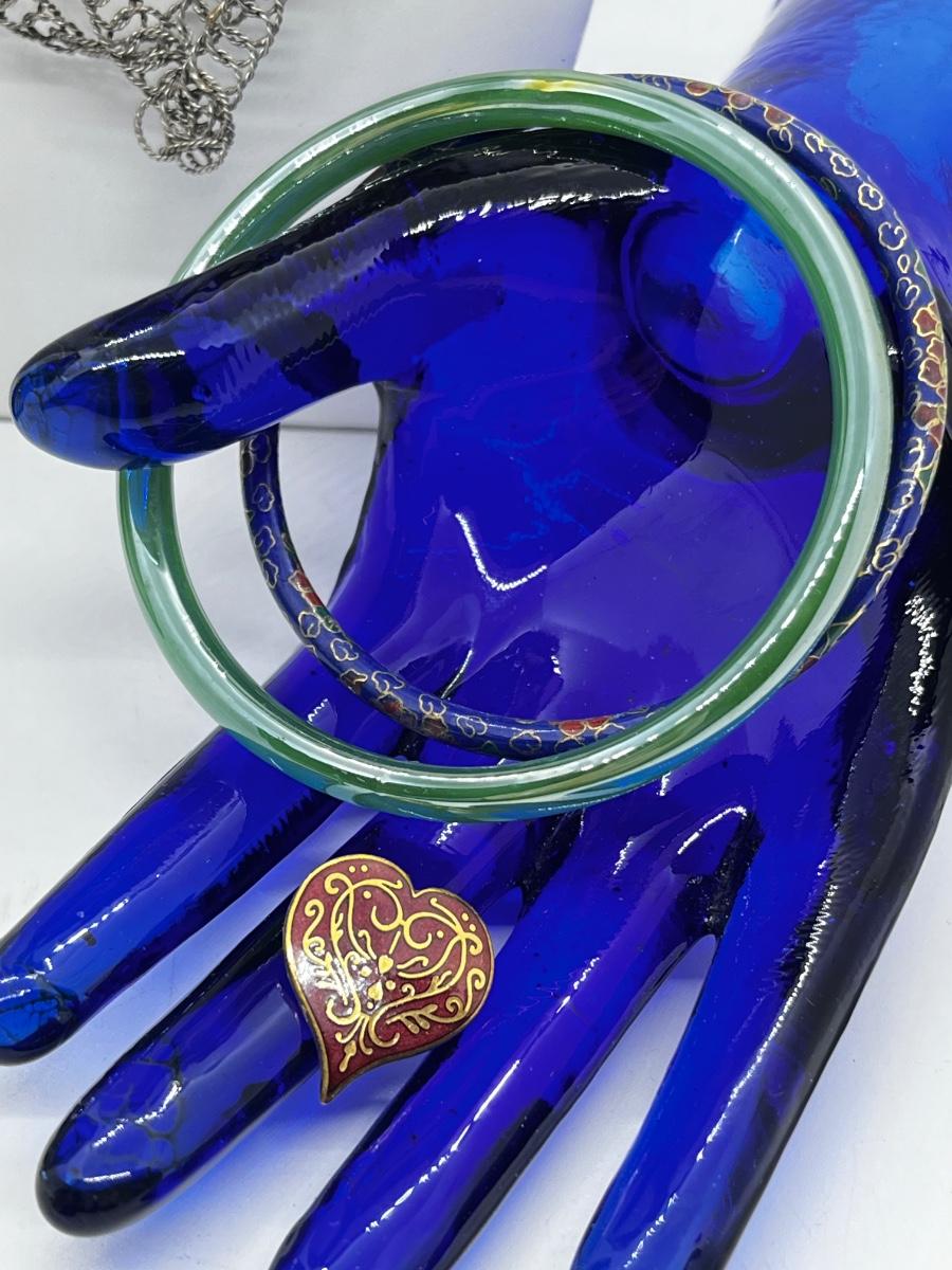 LOT 141: Vintage Yemini Tribal Necklace, Silvertone Twisted Necklace, Cloisonne and Glass Bangles and More!