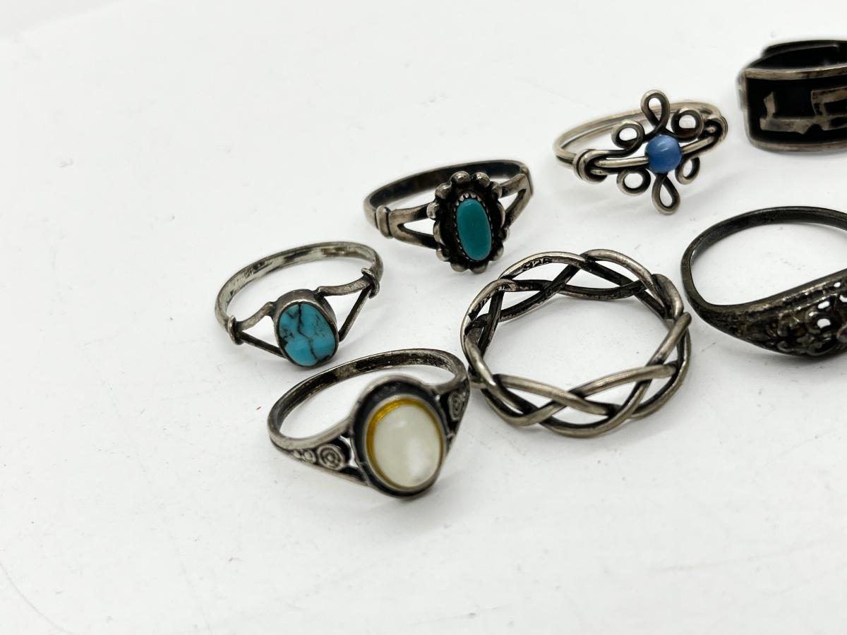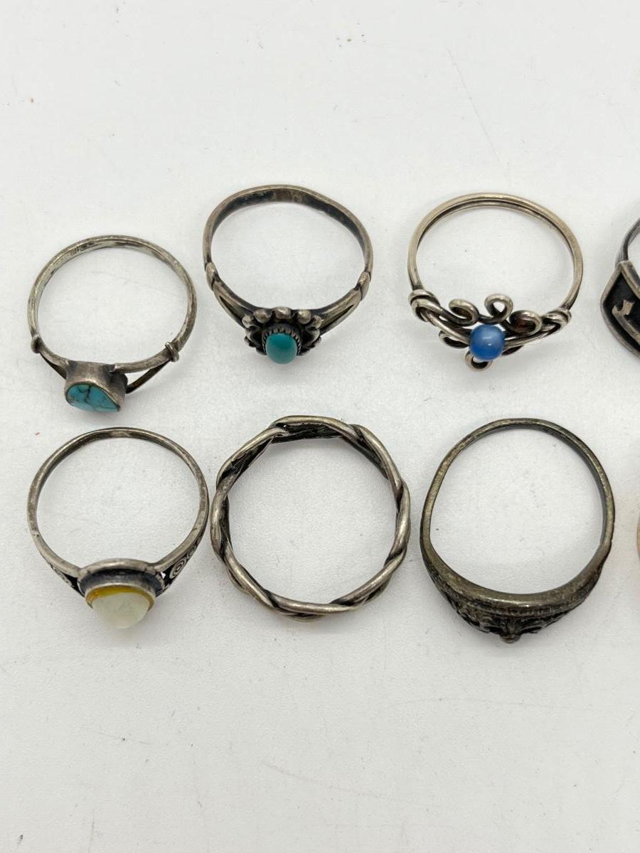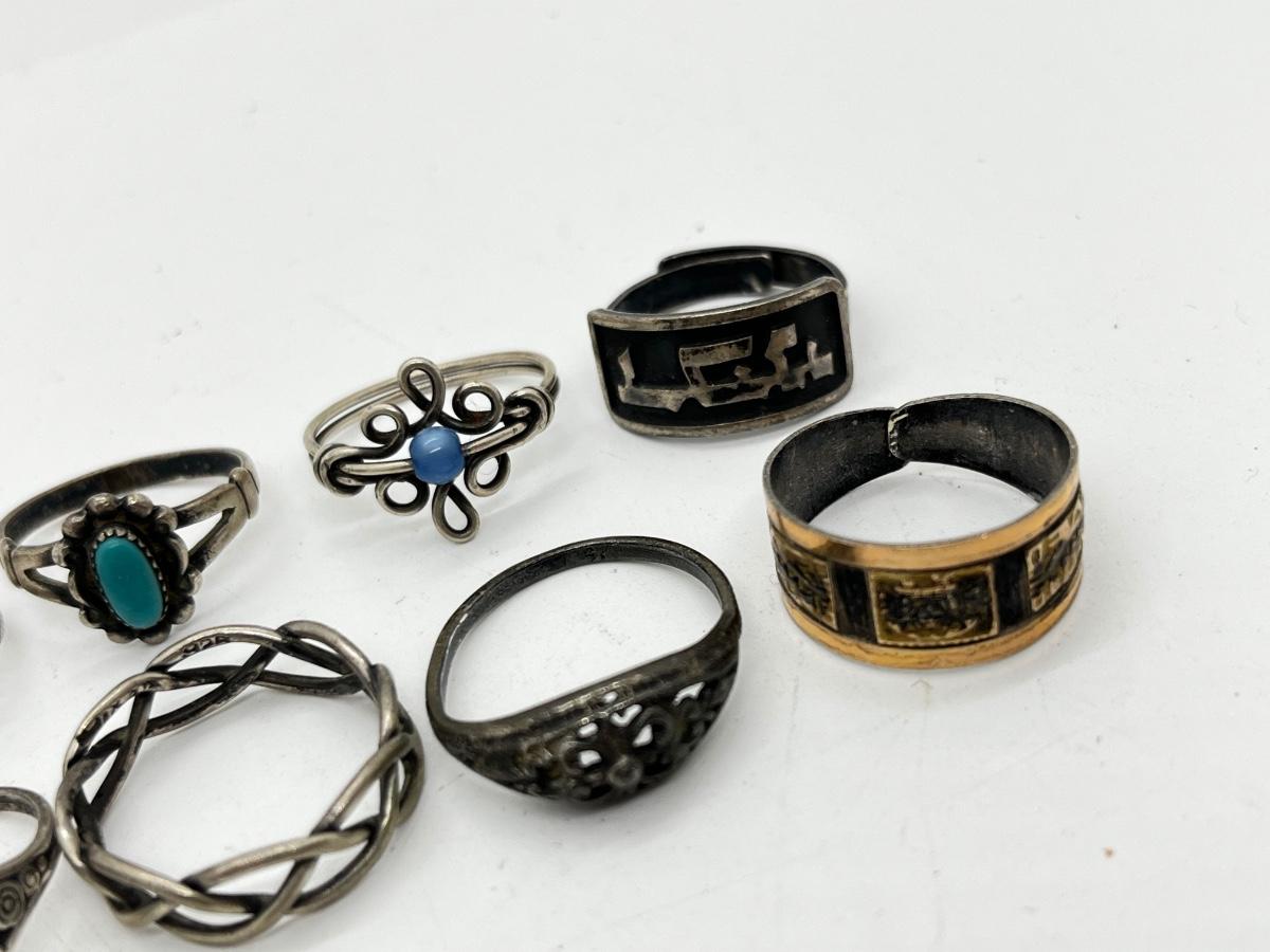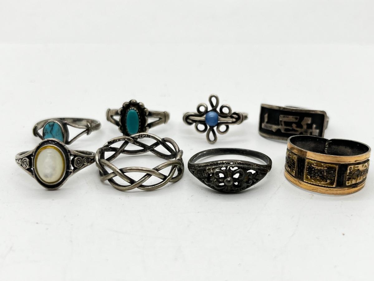 LOT 148: Vintage Delft Blue Ceramic Trinket Box With Assortment of 925 Rings - Sizes 5 and Up